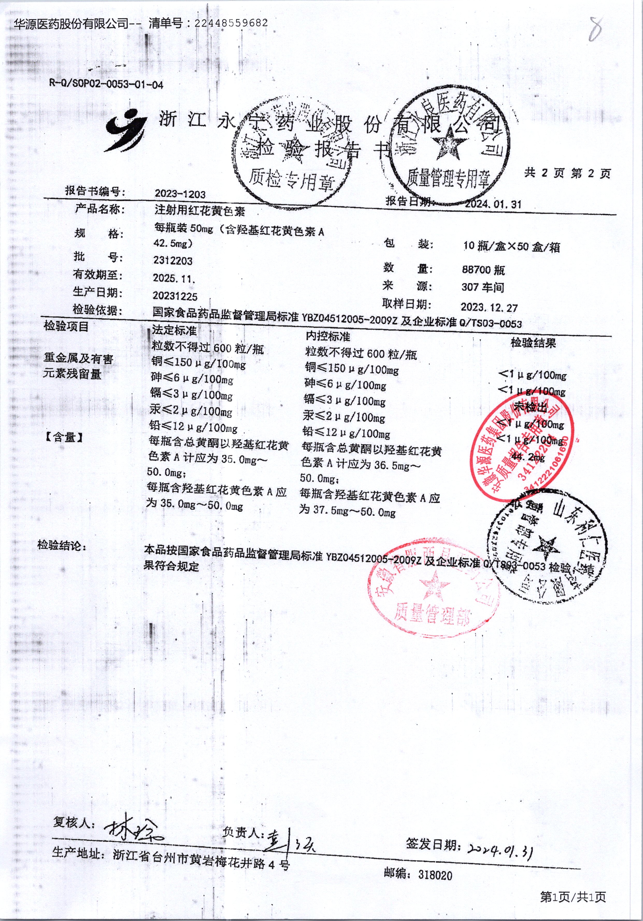 注射用紅花黃色素 50mg*10瓶 2312209/2 查看詳情
