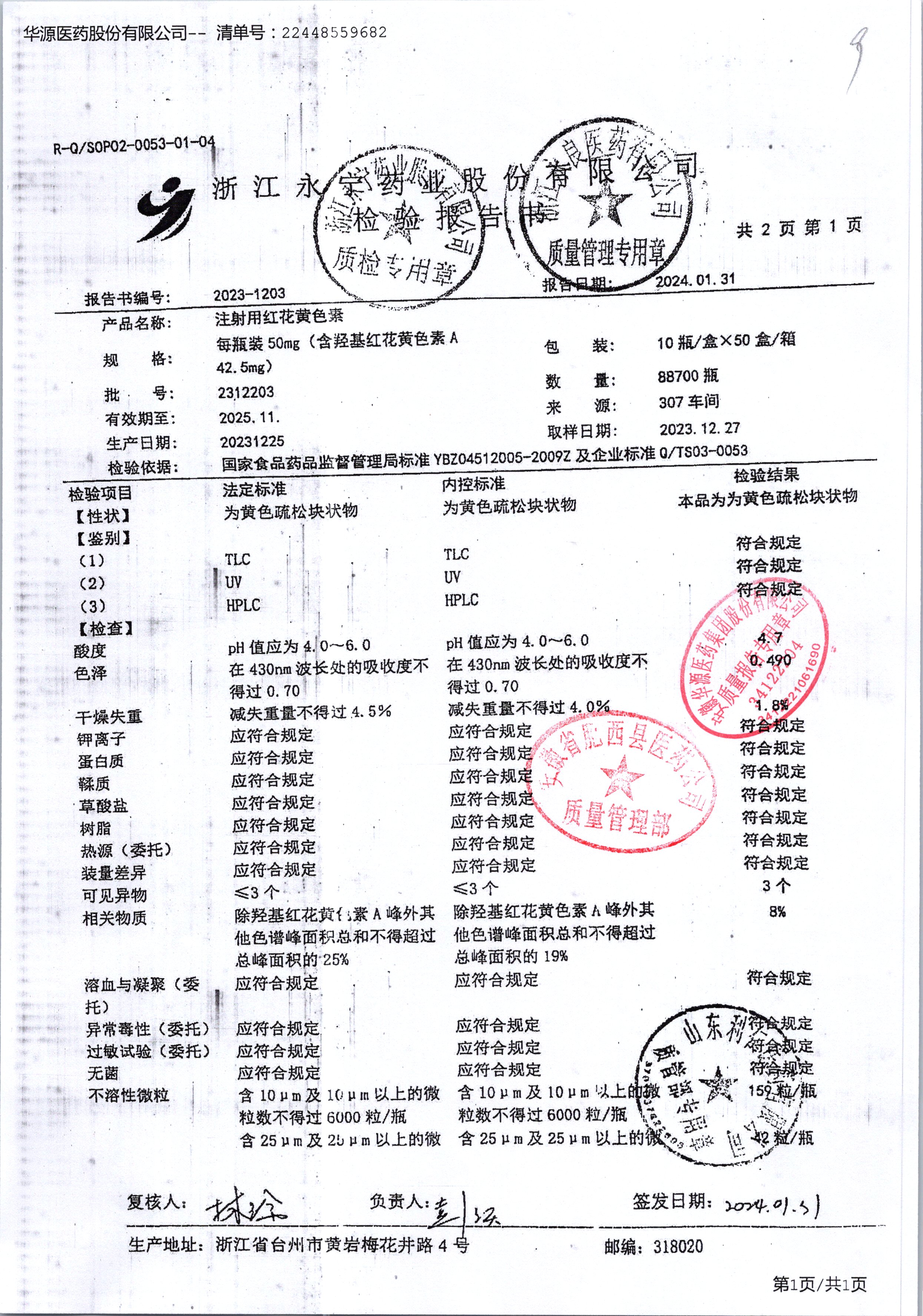 注射用紅花黃色素 50mg*10瓶 2312209/1 查看詳情