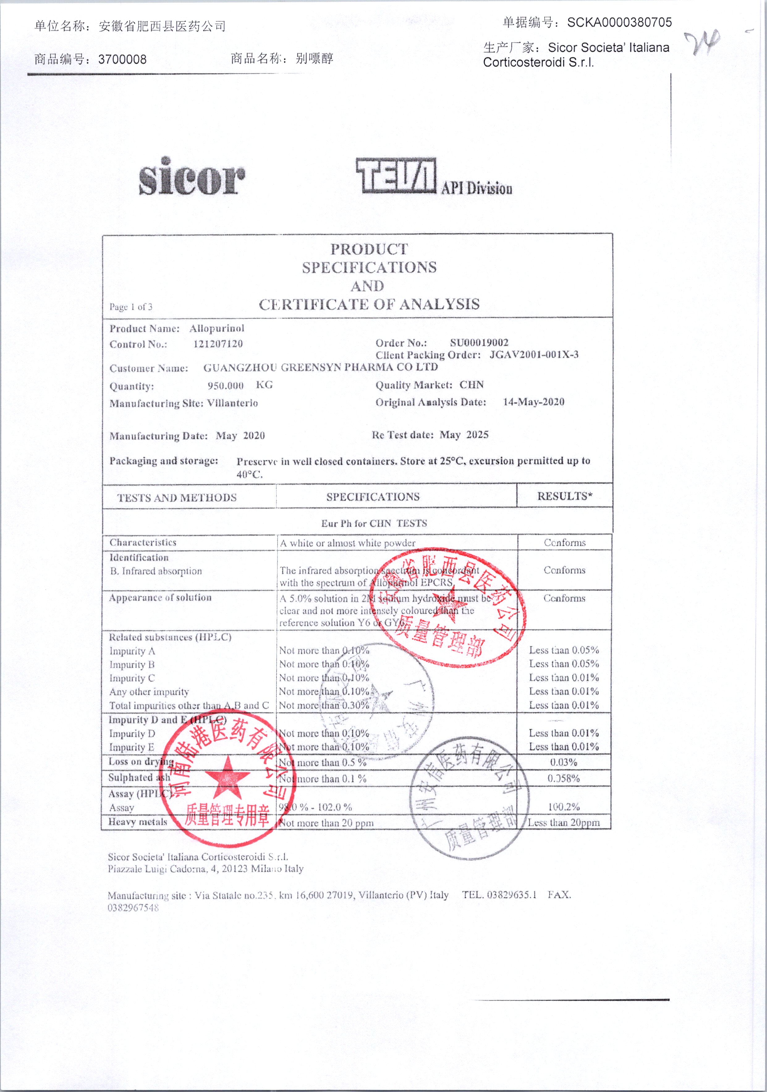 | 別嘌醇 | 25kg | 121207120/3 | 查看詳情 |