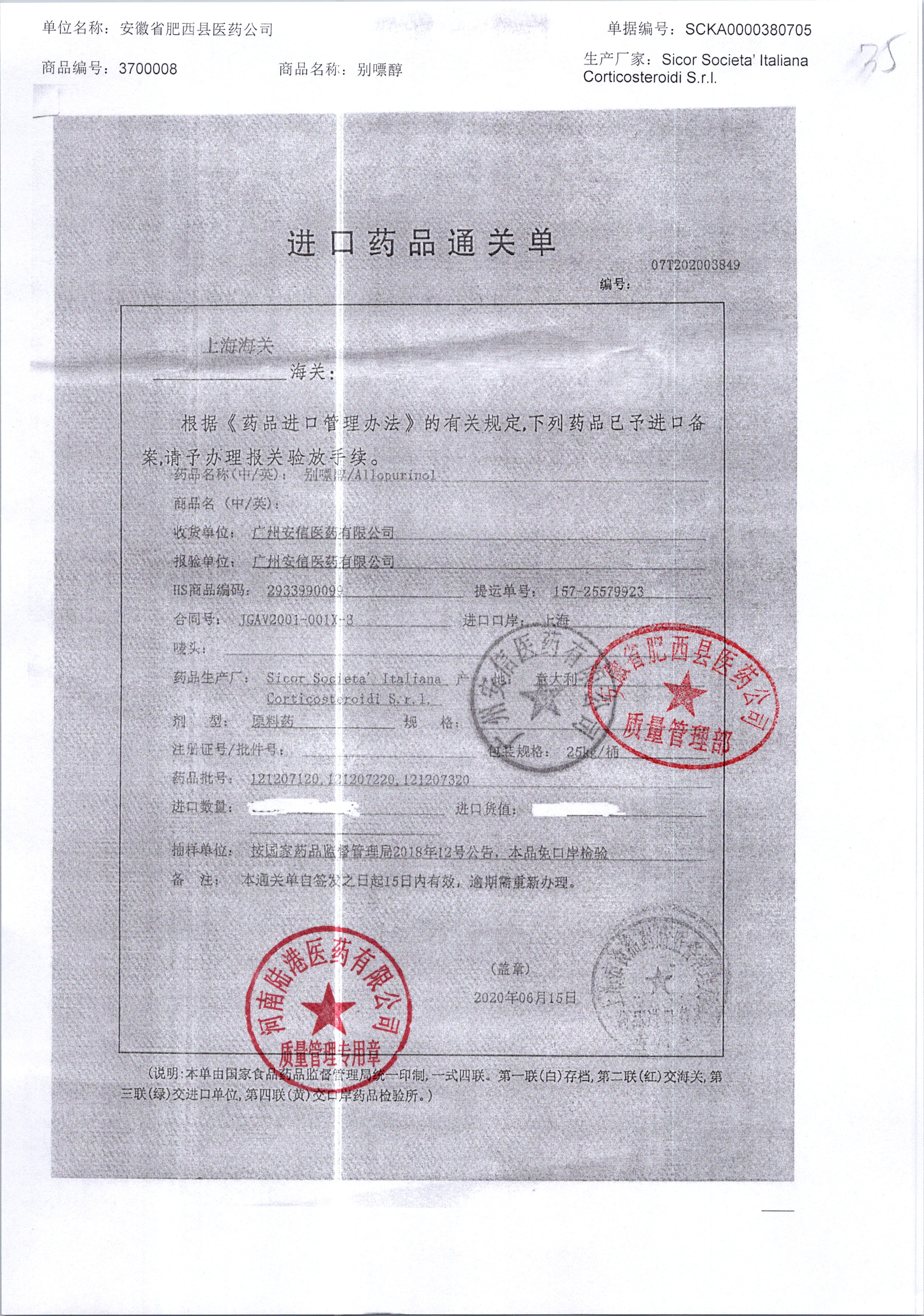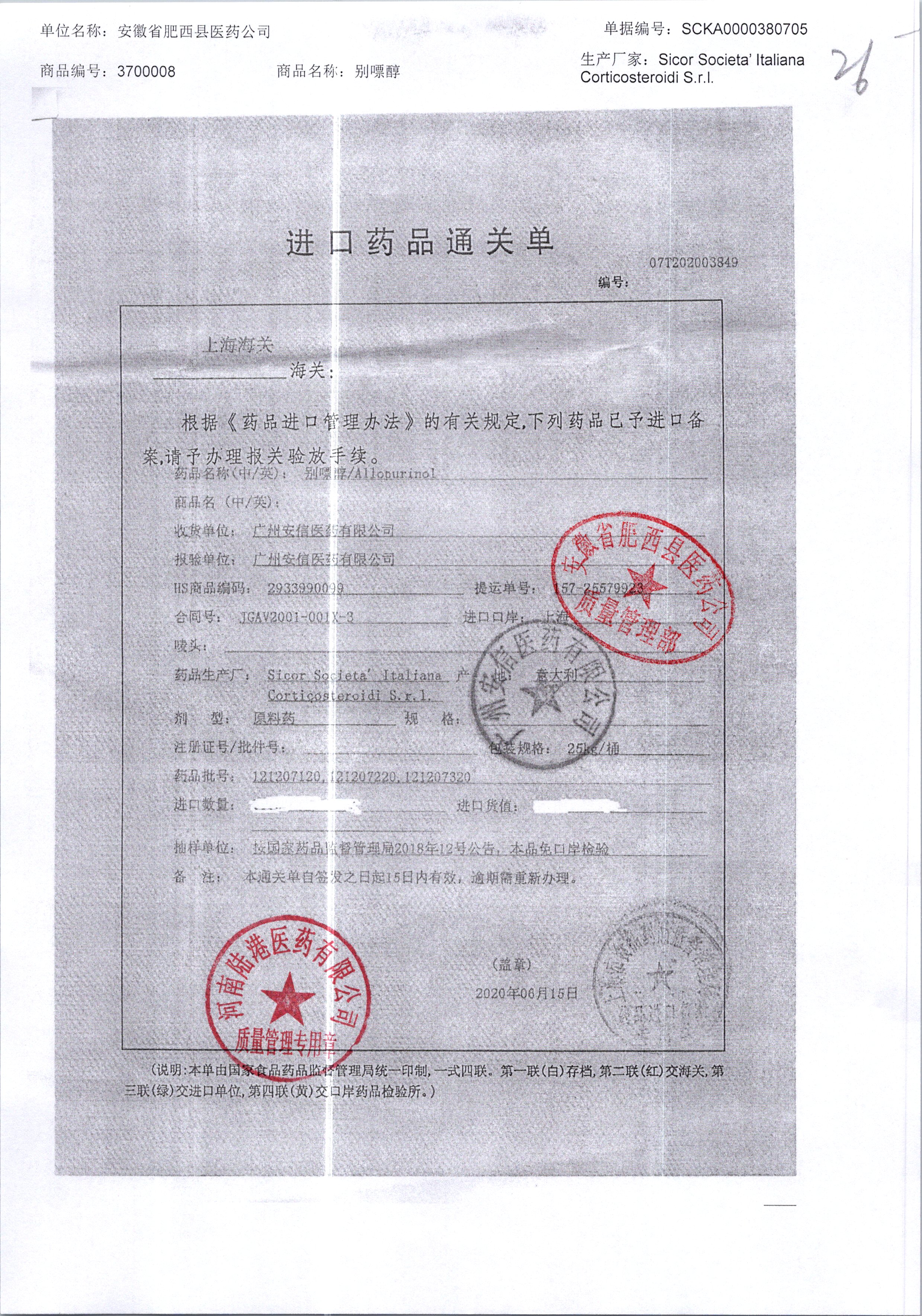 | 別嘌醇 | 25kg | 121207320/1 | 查看詳情 |