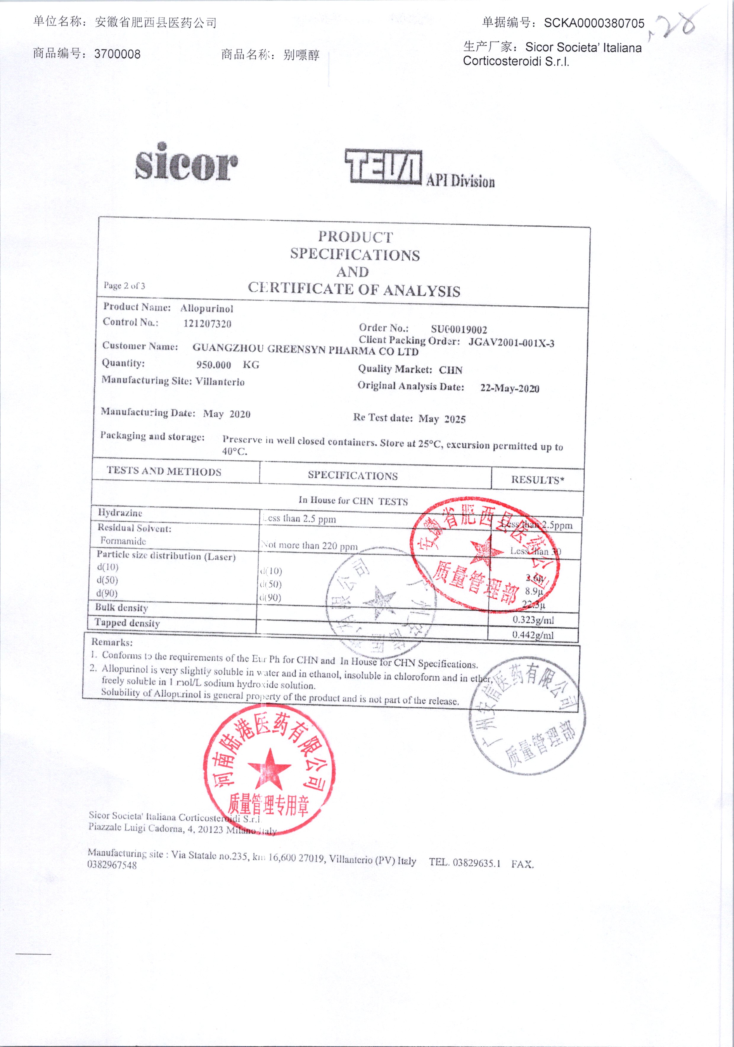 | 別嘌醇 | 25kg | 121207120/2 | 查看詳情 |