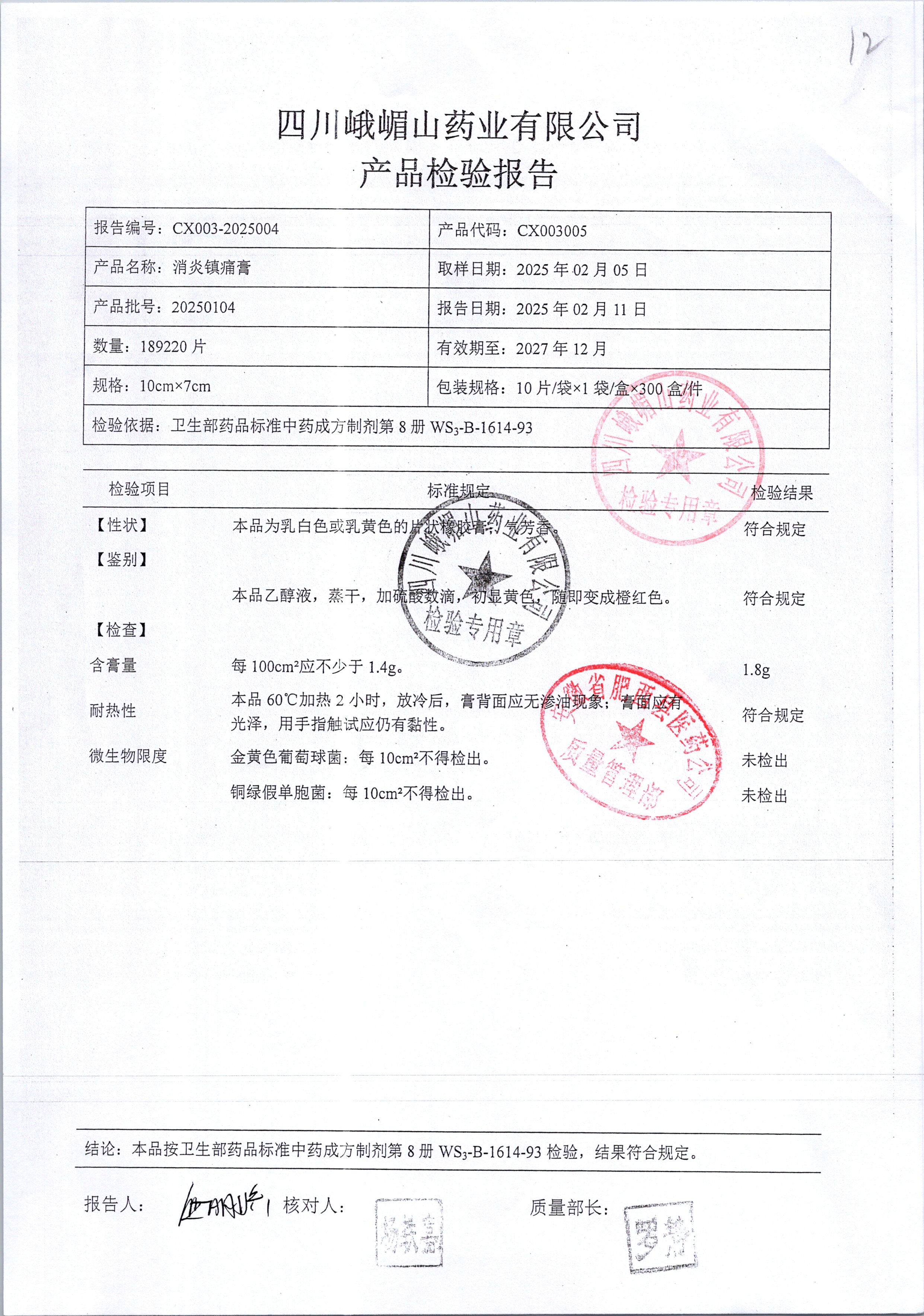名稱 規格 批號 藥檢報告