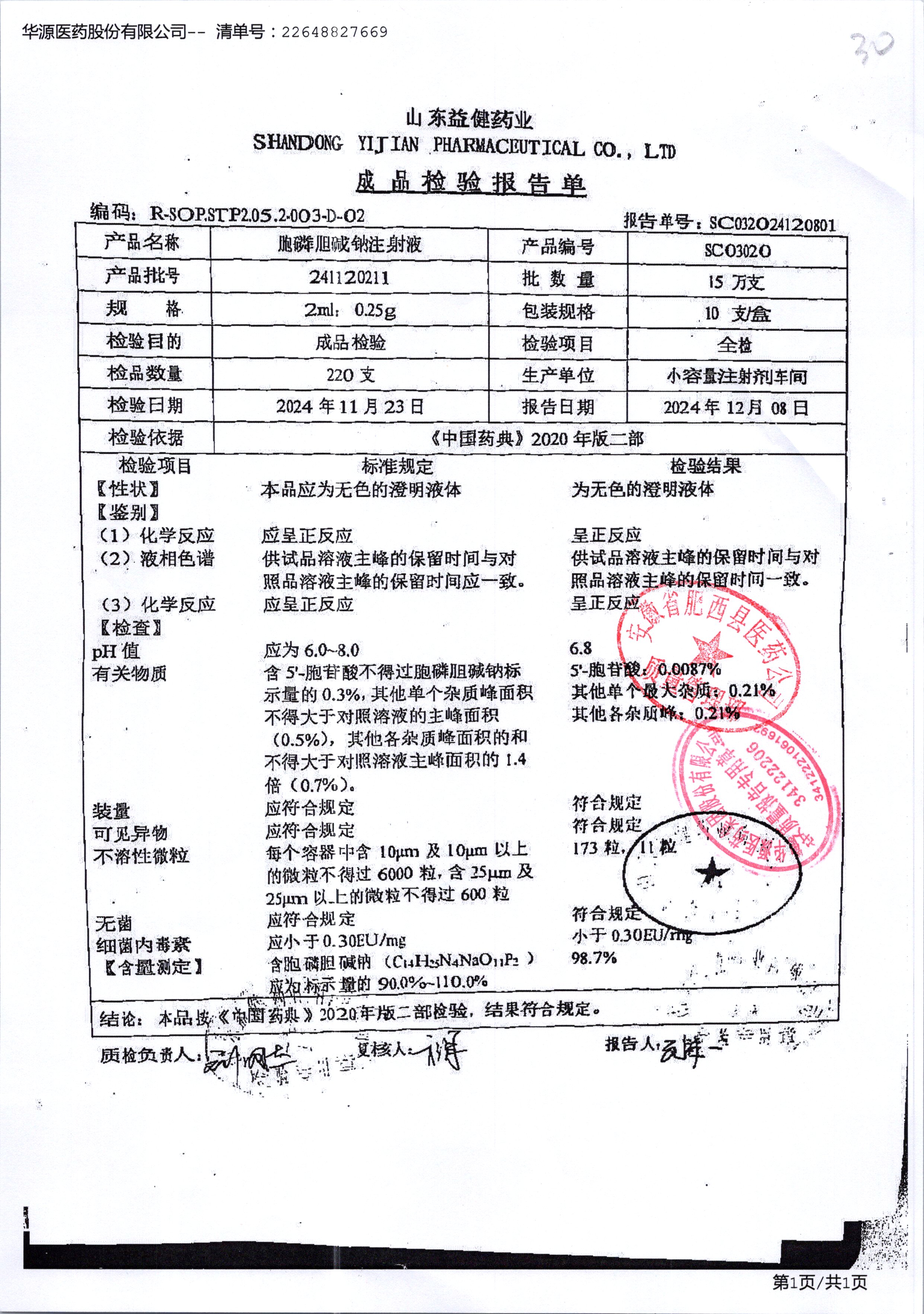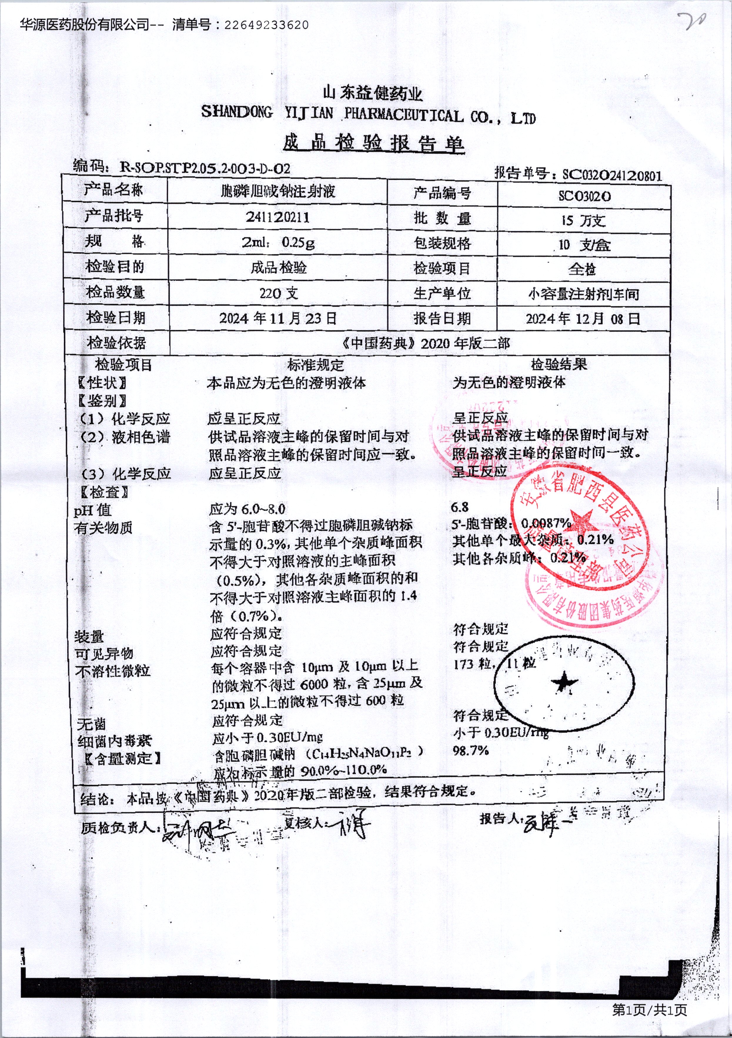 | 胞磷膽堿鈉注射液 | 2ml:0.25g | 241120211 | 查看詳情 |