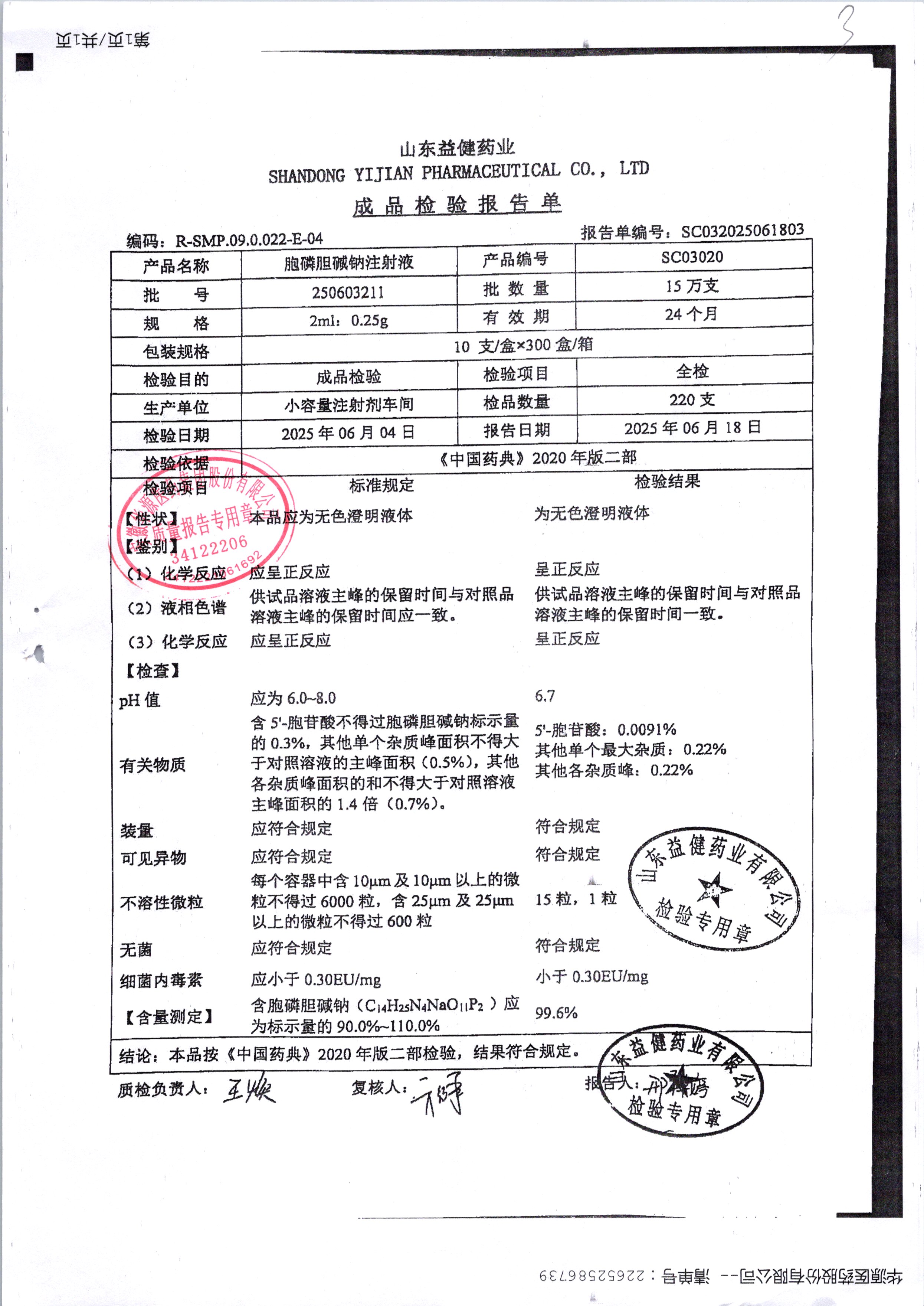 | 胞磷膽堿鈉注射液 | 2ml:0.25g | 250603211 | 查看詳情 |