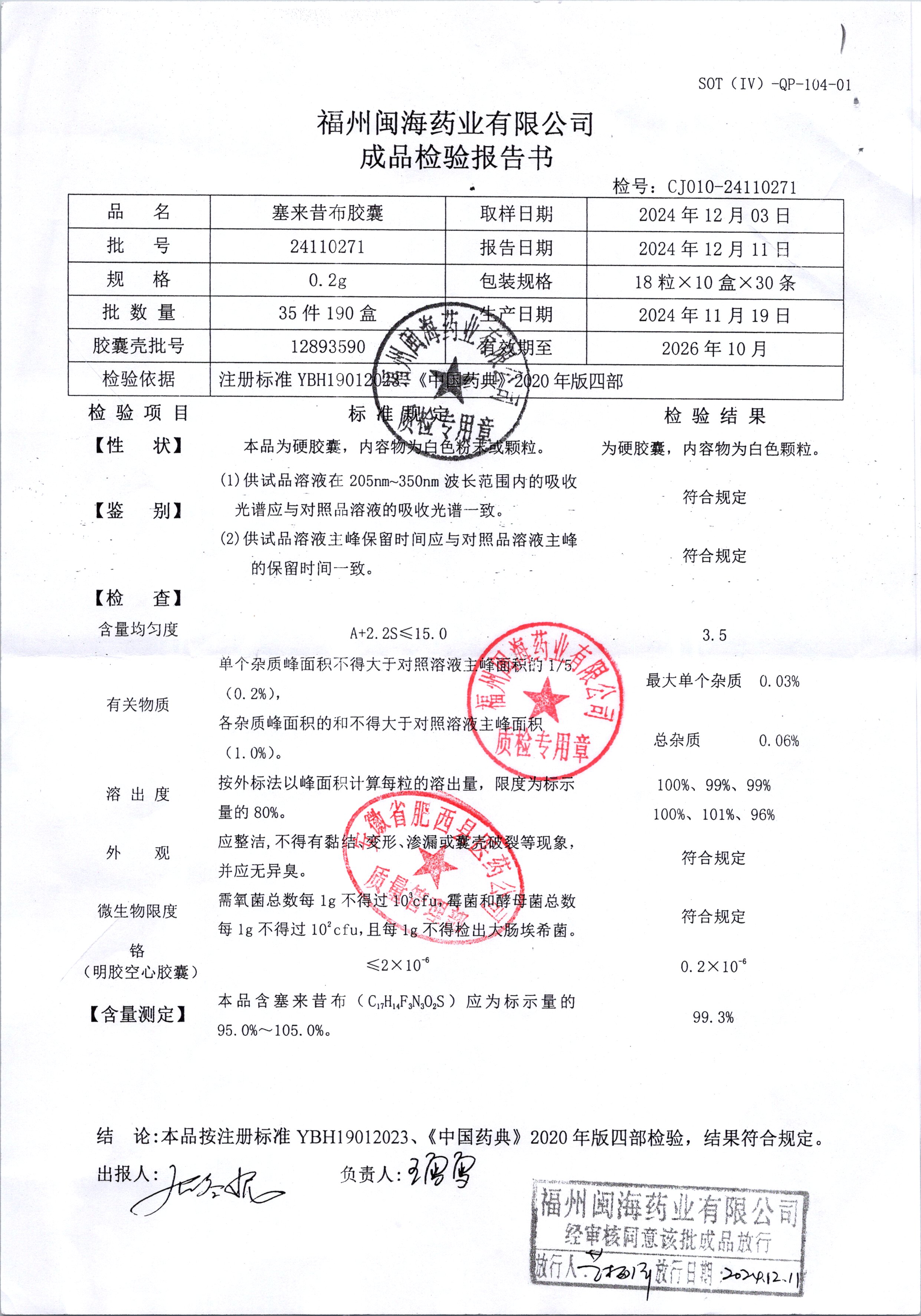 塞來昔布膠囊 0.2g*18粒 24110271 查看詳情