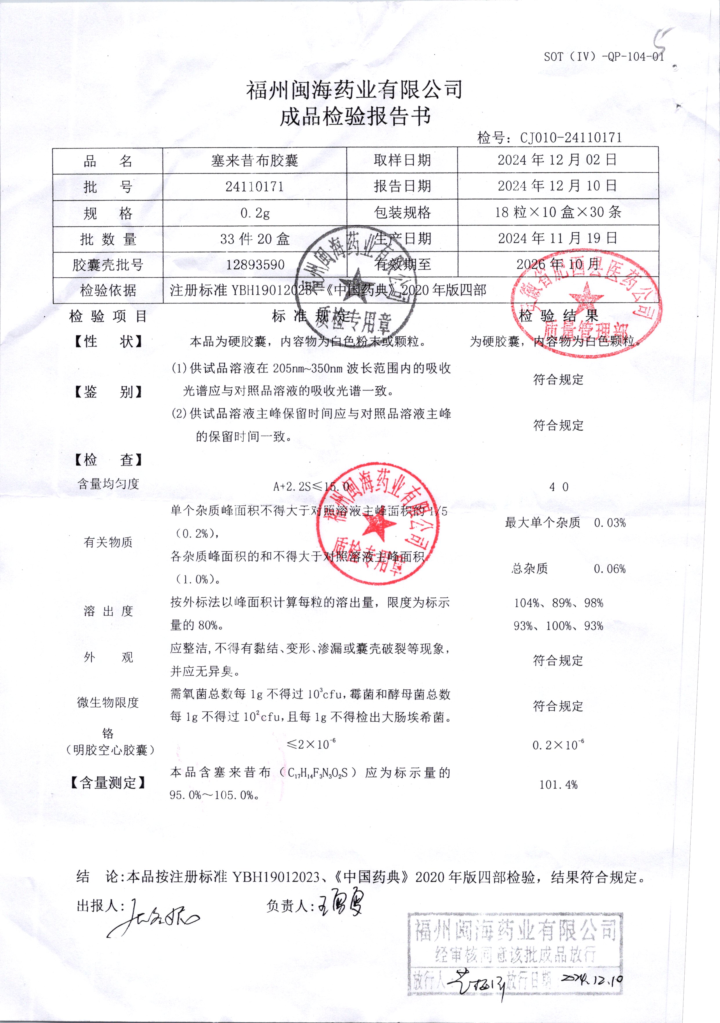 塞來昔布膠囊 0.2g*18粒 24110171 查看詳情