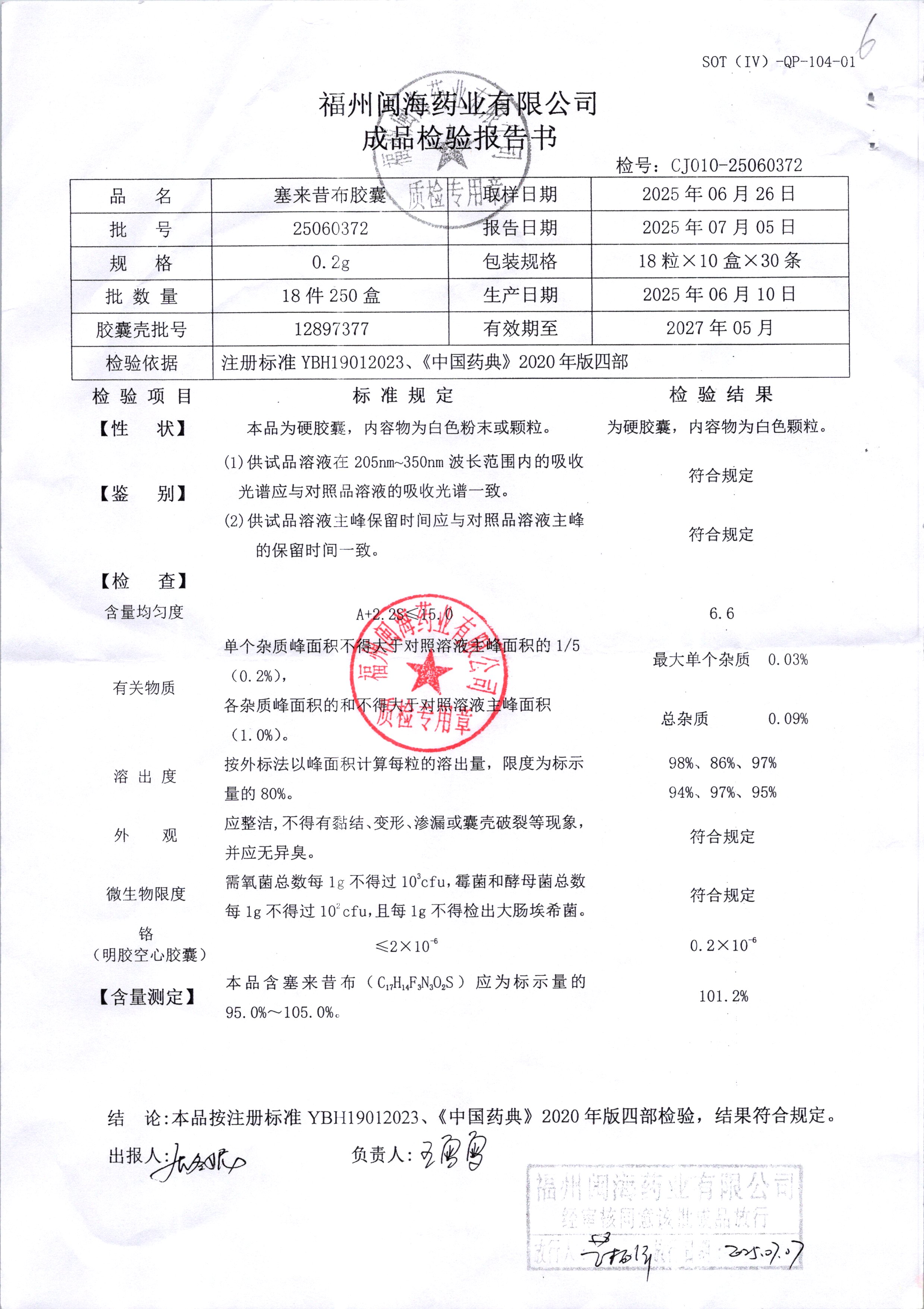塞來昔布膠囊 0.2g*18粒 25010271 查看詳情