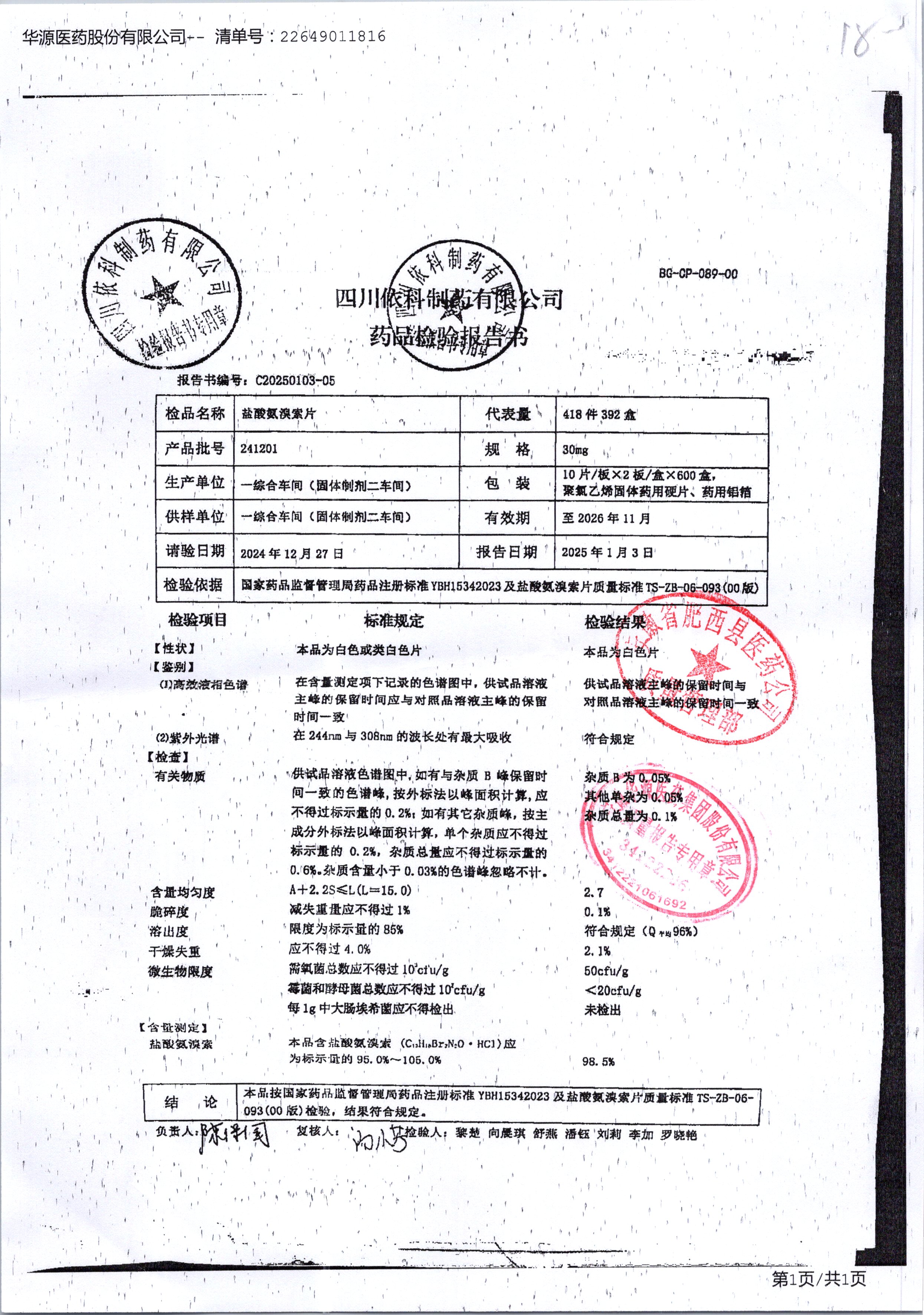 鹽酸氨溴索片 30mg 250401 查看詳情
