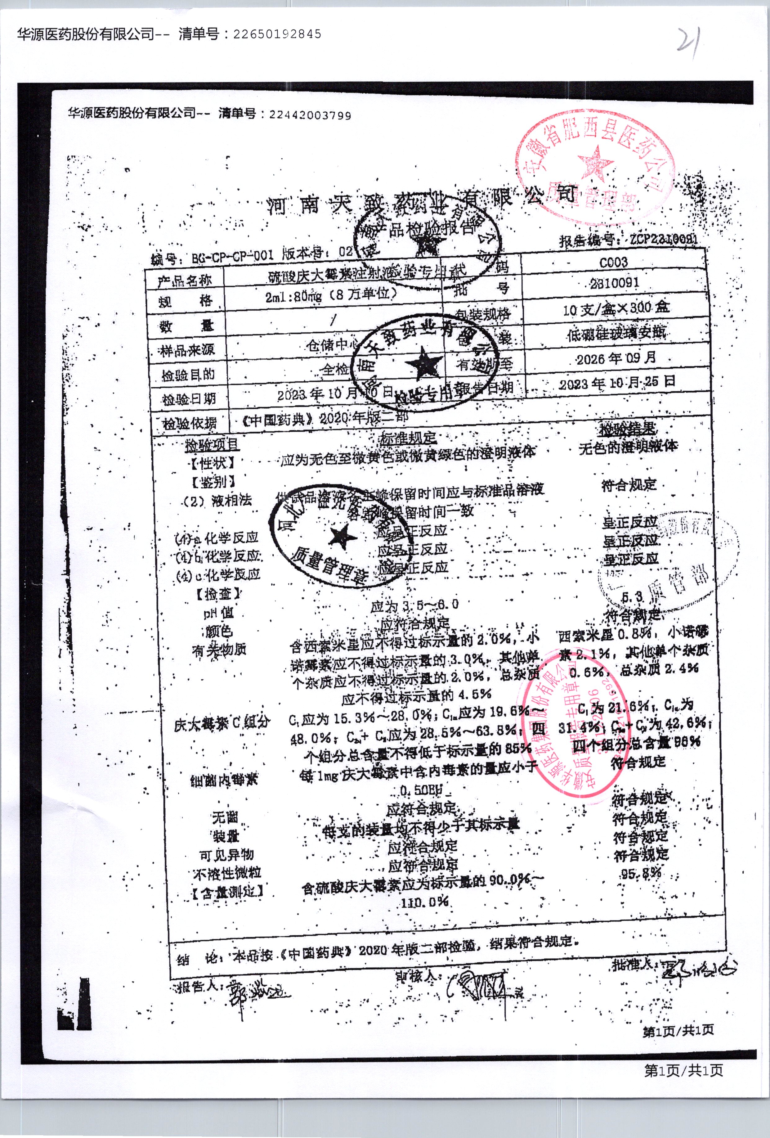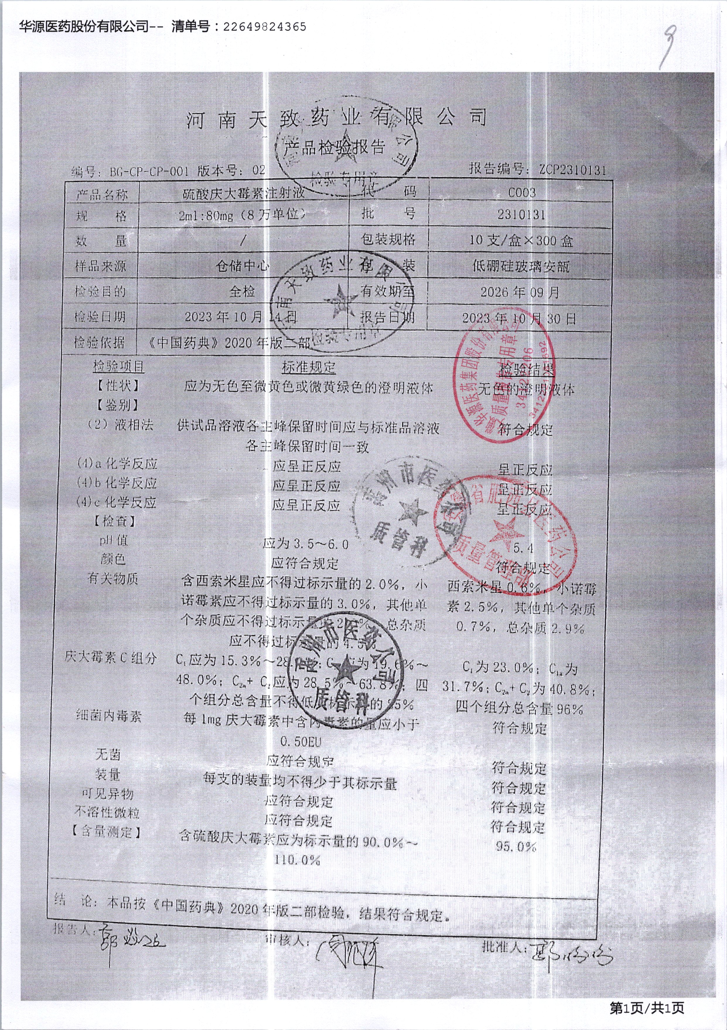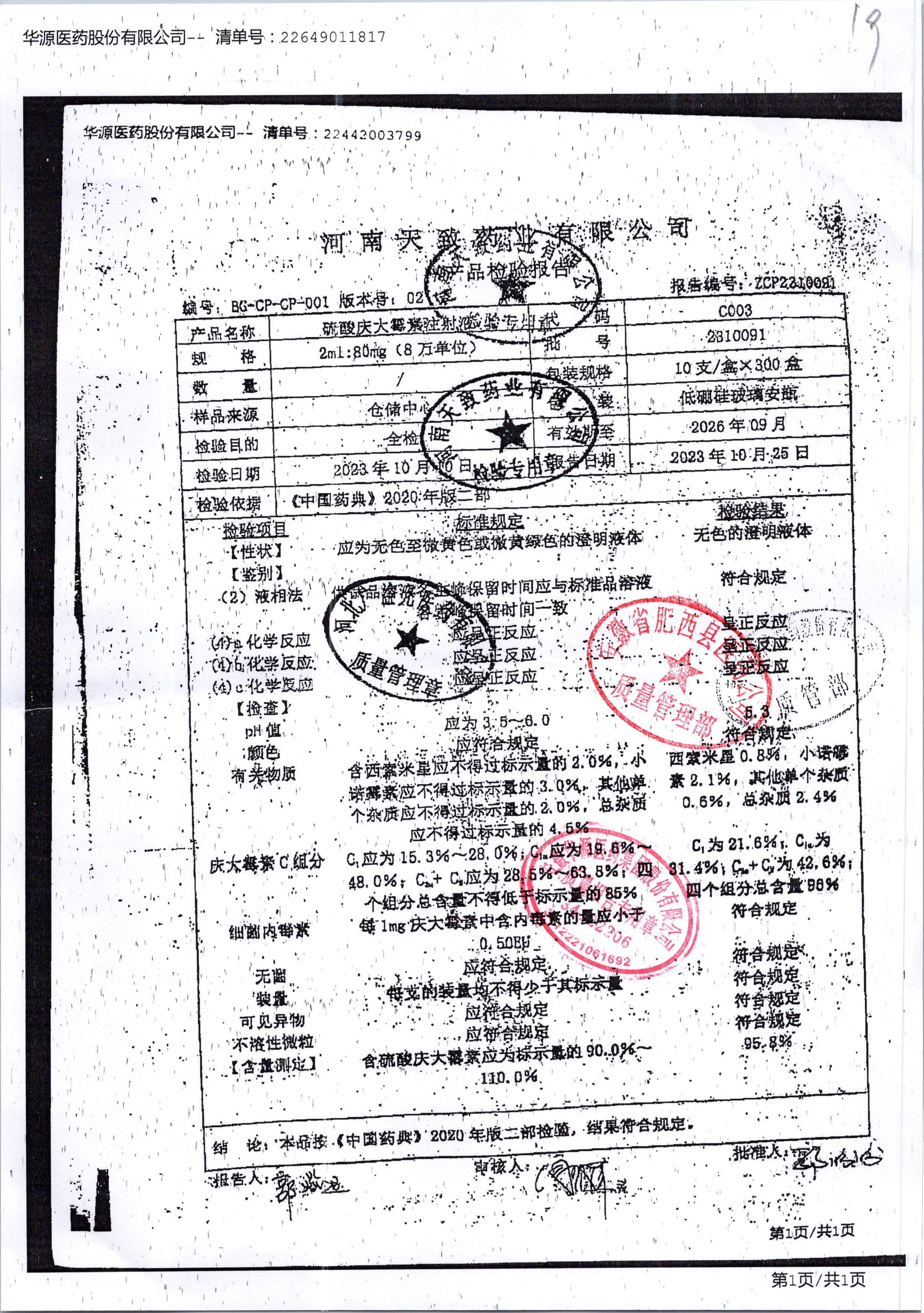 | 硫酸慶大霉素注射液 | 2ml:80mg10支 | 2310091 | 查看詳情 |