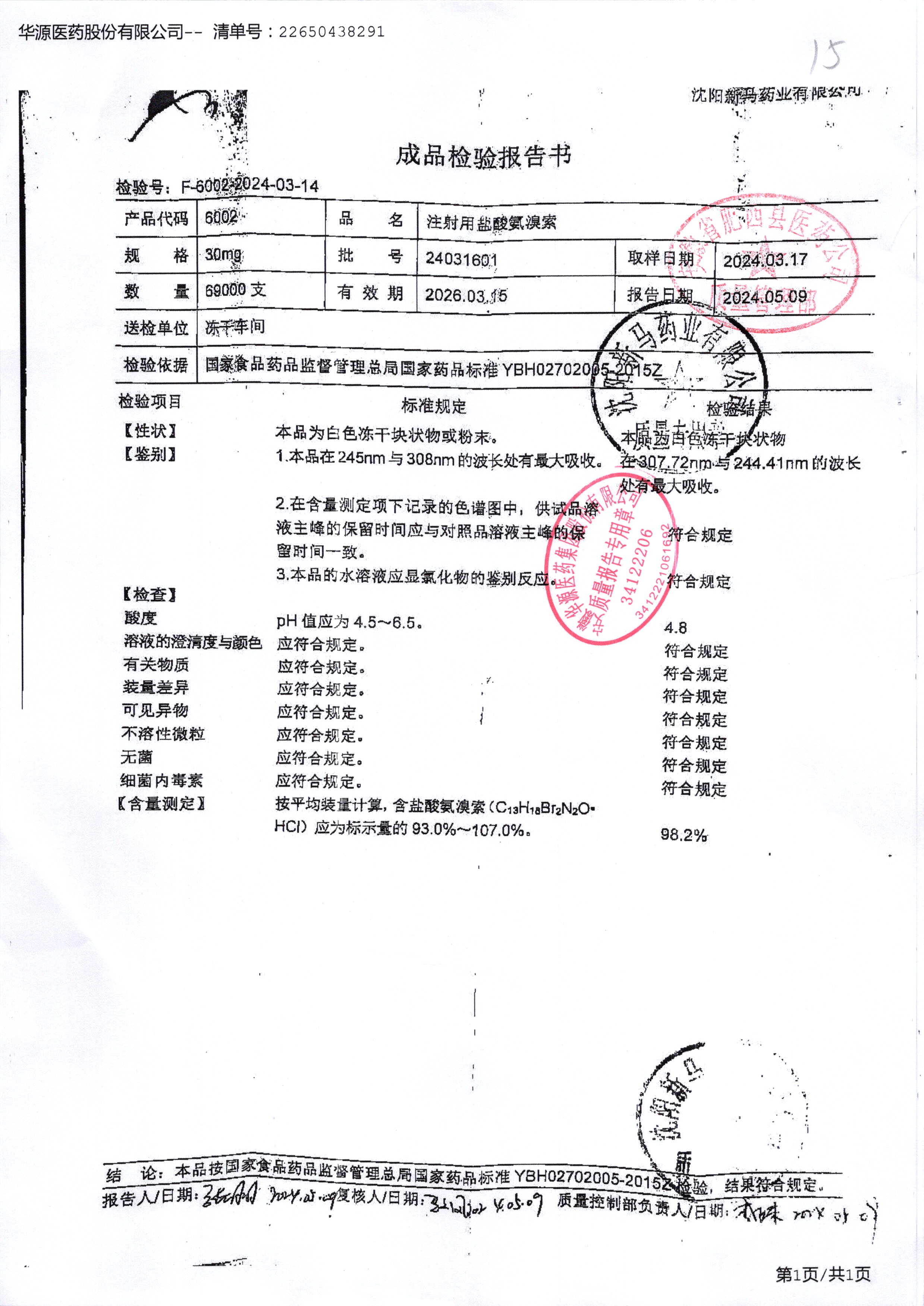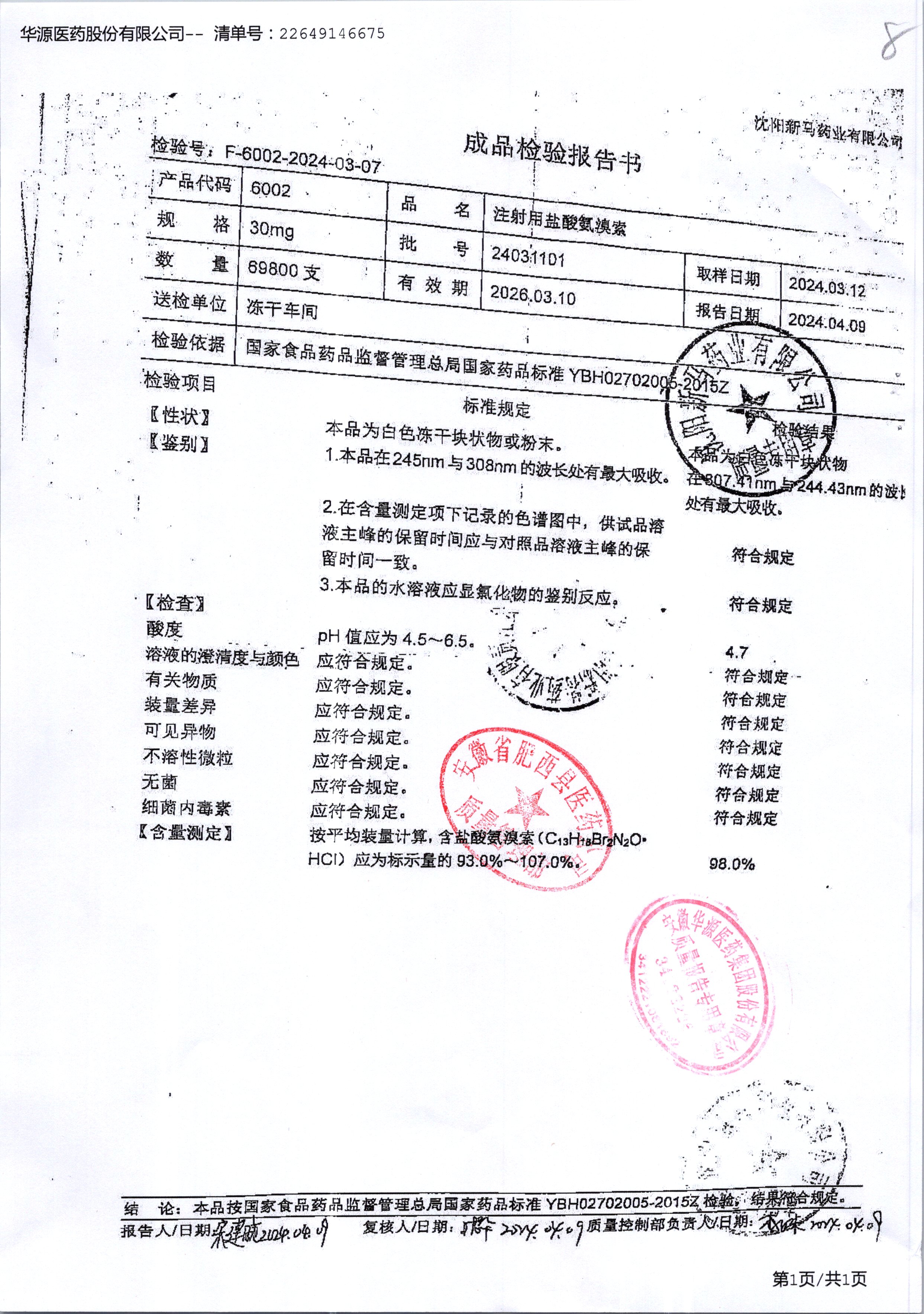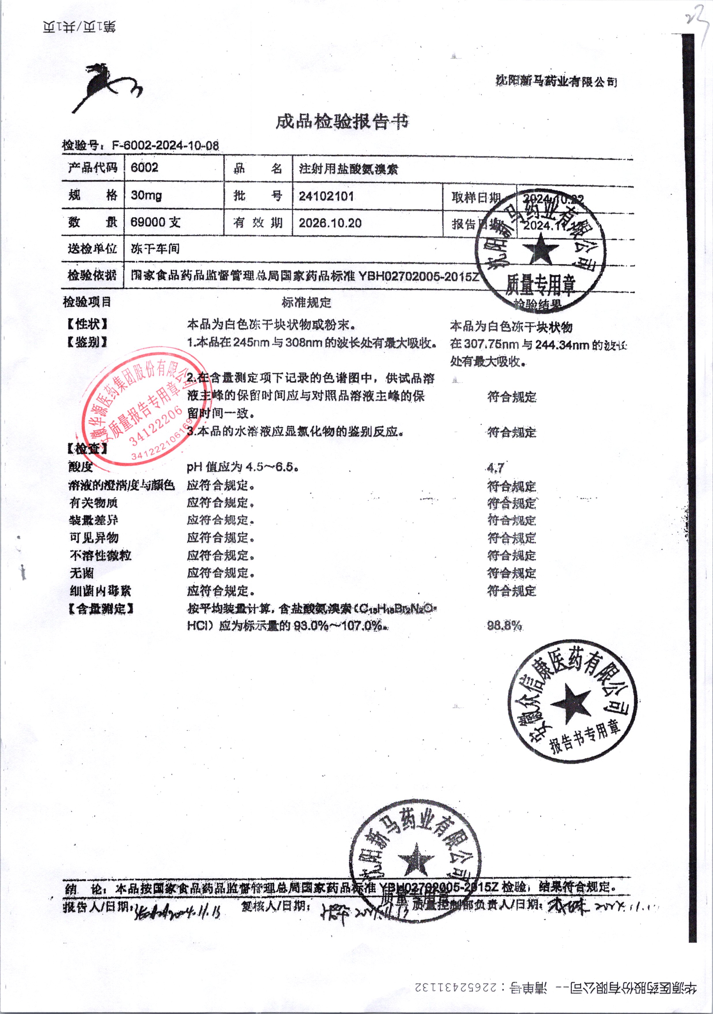 | 注射用鹽酸氨溴索 | 30mg | 24031601 | 查看詳情 |