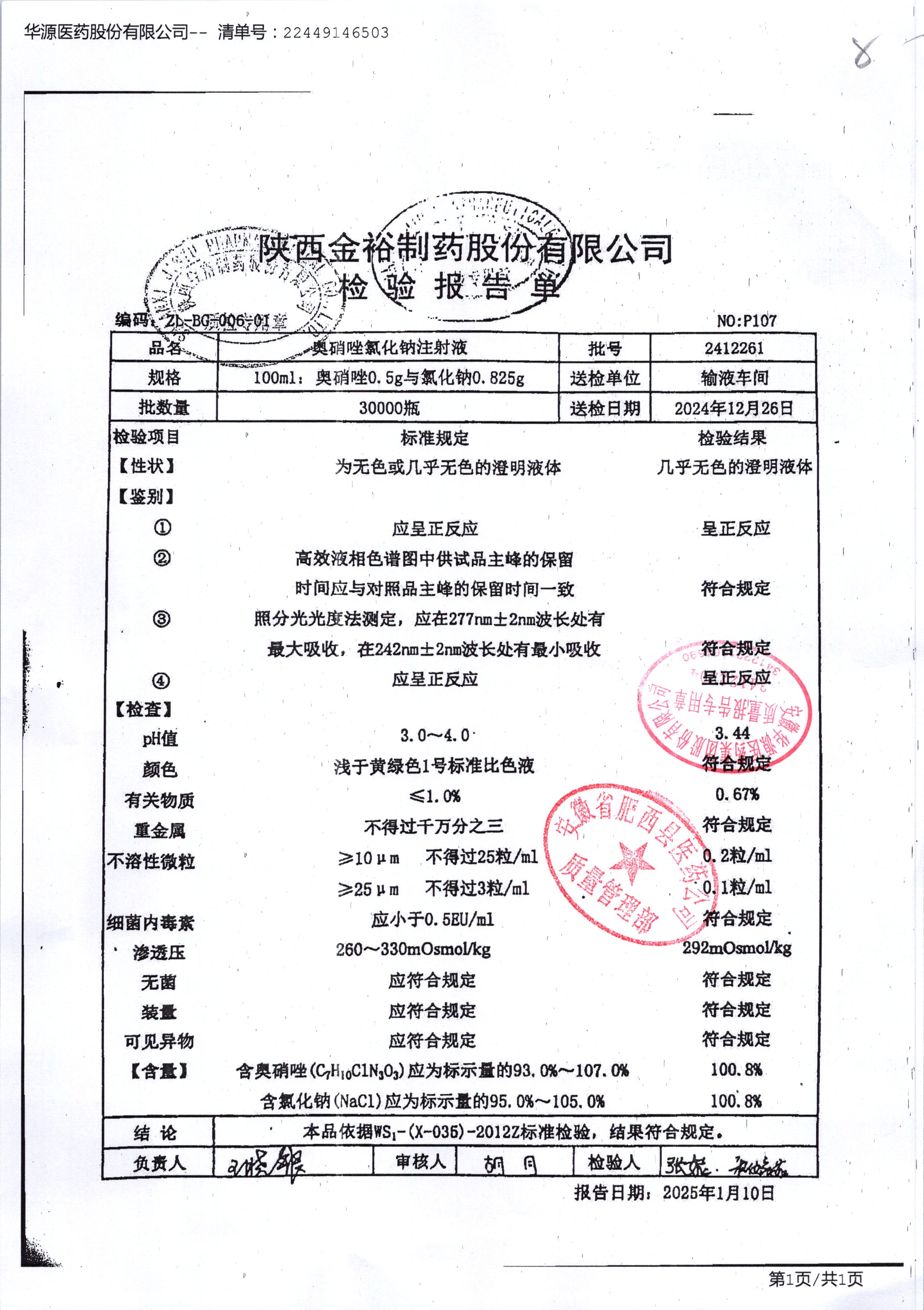奧硝唑氯化鈉注射液 100ml 2412261 查看詳情