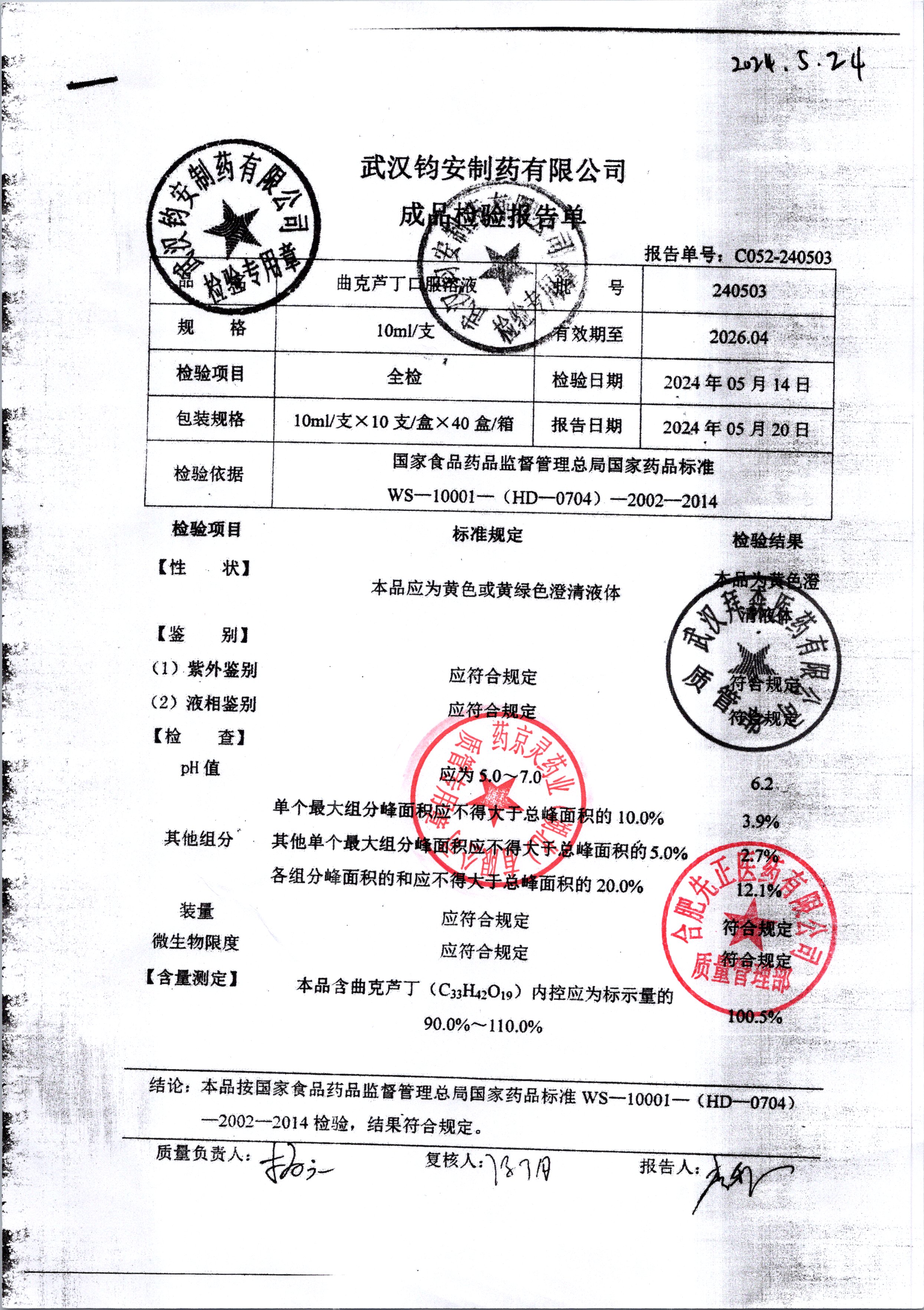 名稱 規格 批號 藥檢報告