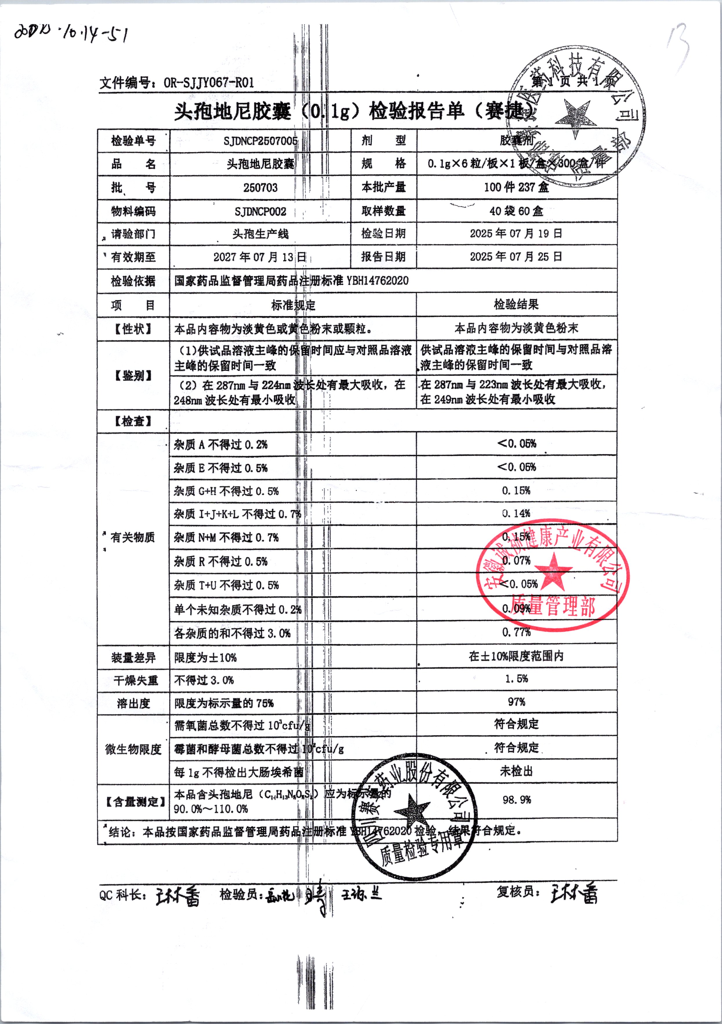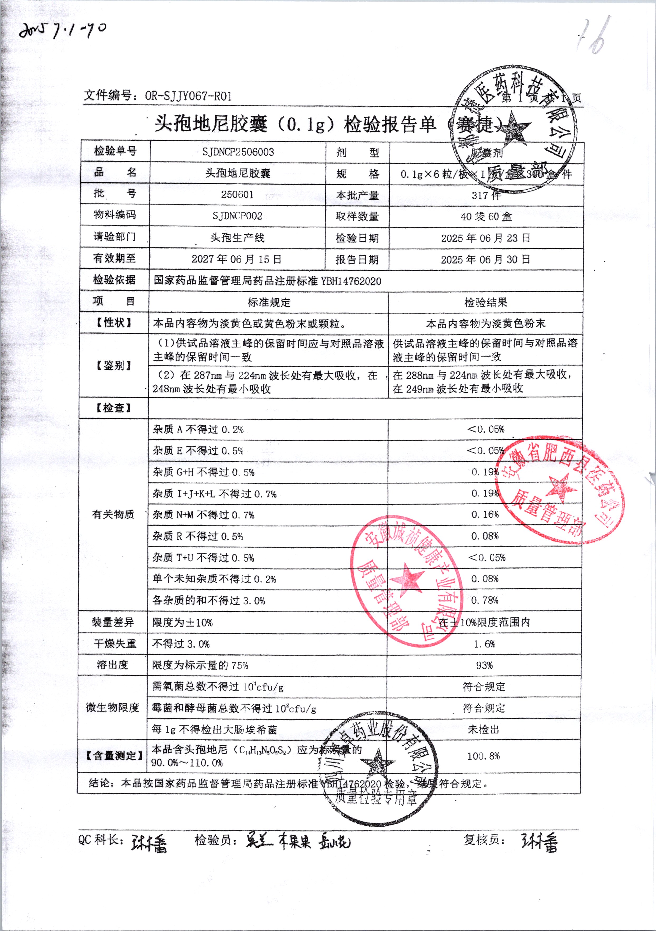 | 頭孢地尼膠囊 | 0.1g*6粒 | 250703 | 查看詳情 |