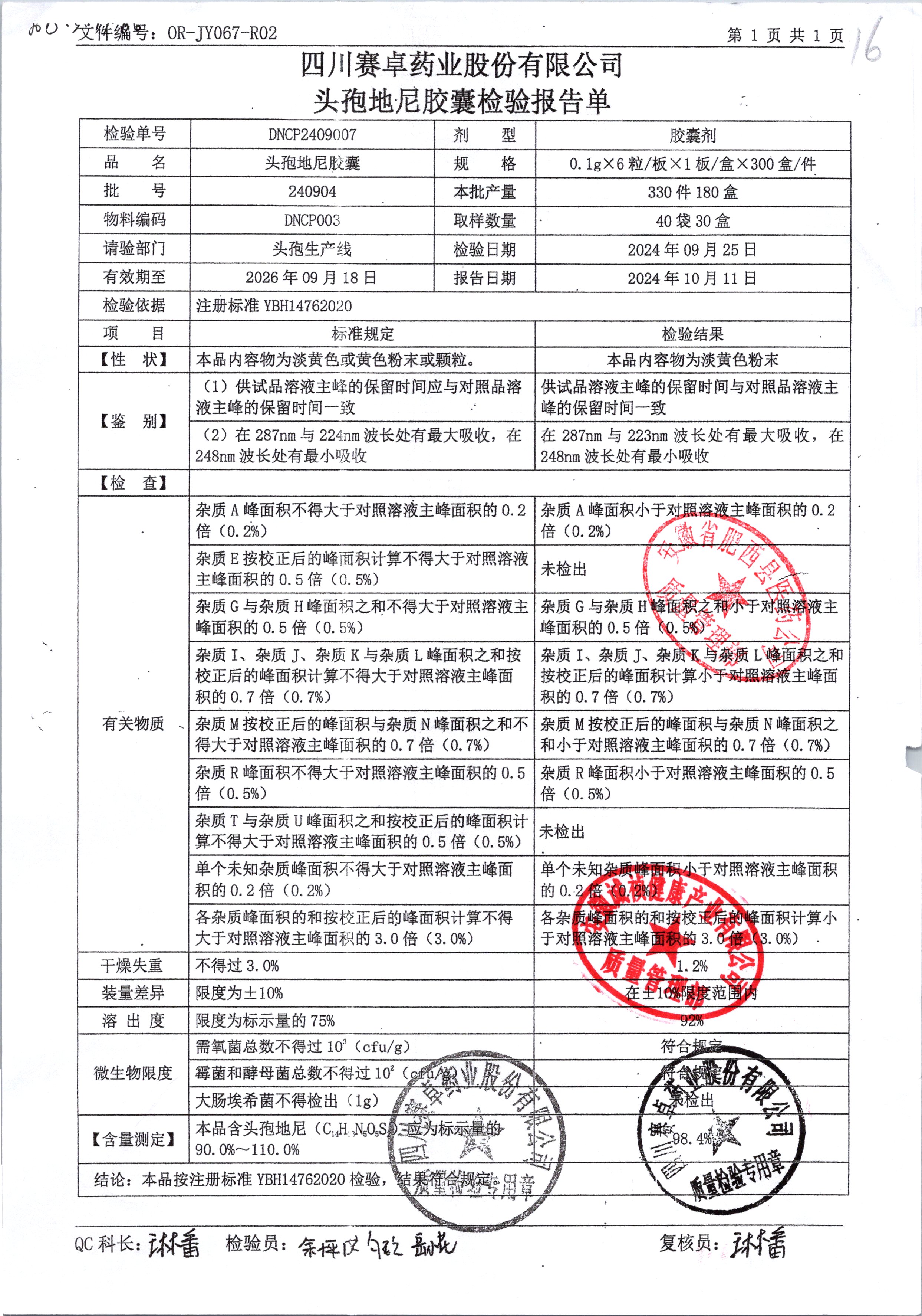 | 名稱 | 規(guī)格 | 批號 | 藥檢報告 |
