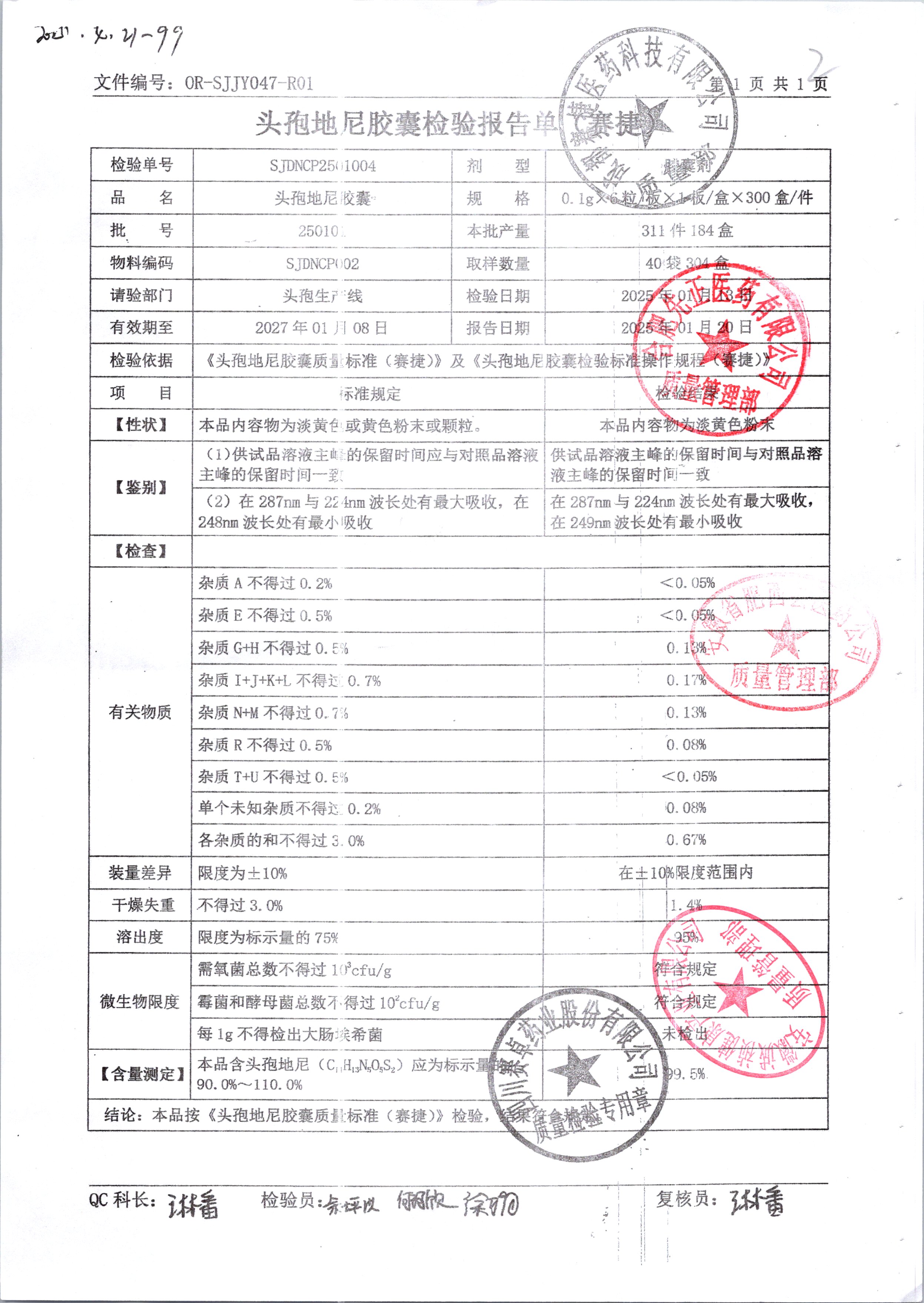 | 頭孢地尼膠囊 | 0.1g*6粒 | 250601/2 | 查看詳情 |