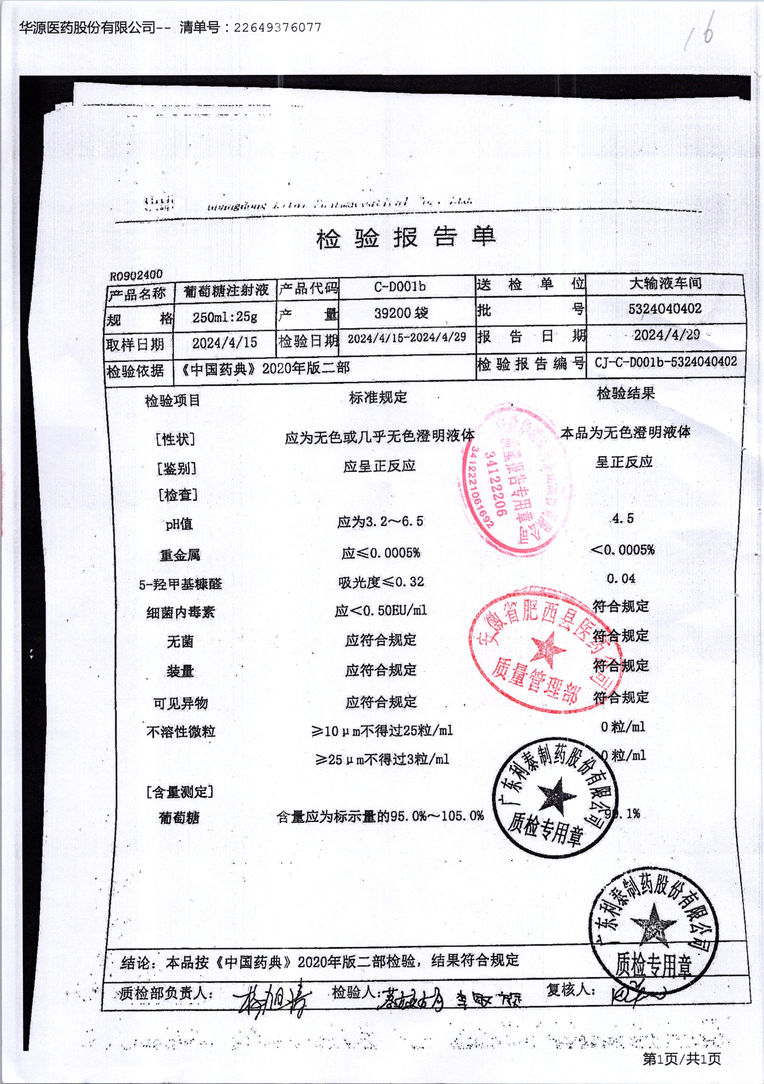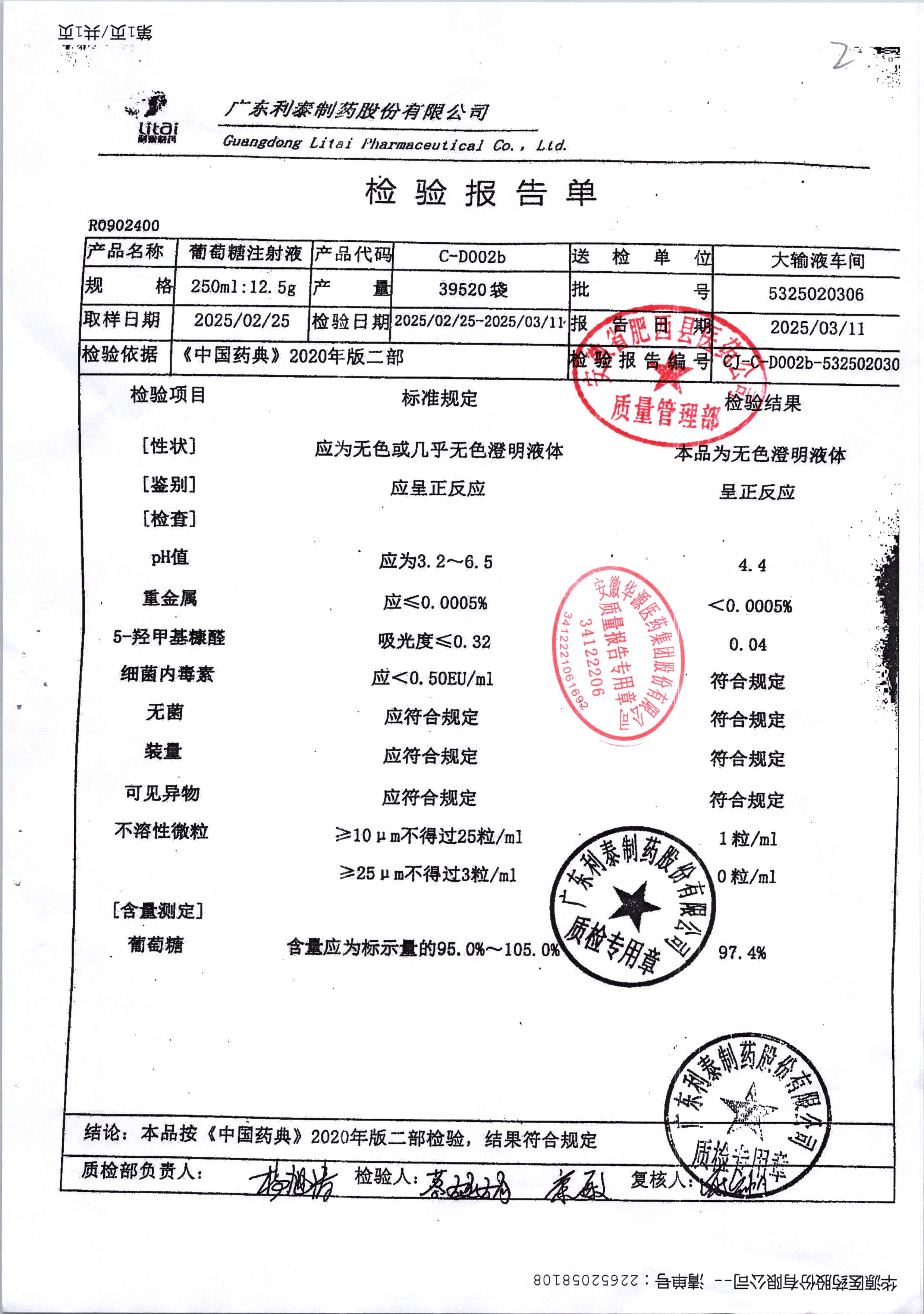 | 葡萄糖注射液 | 250ml | 5324040402 | 查看詳情 |