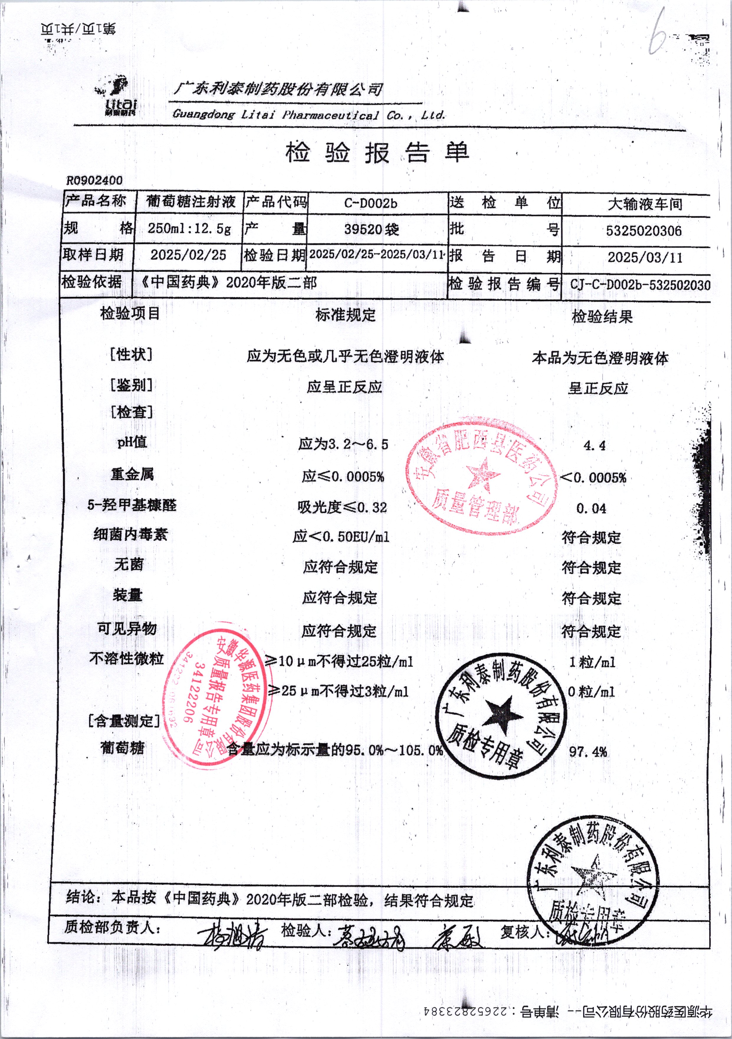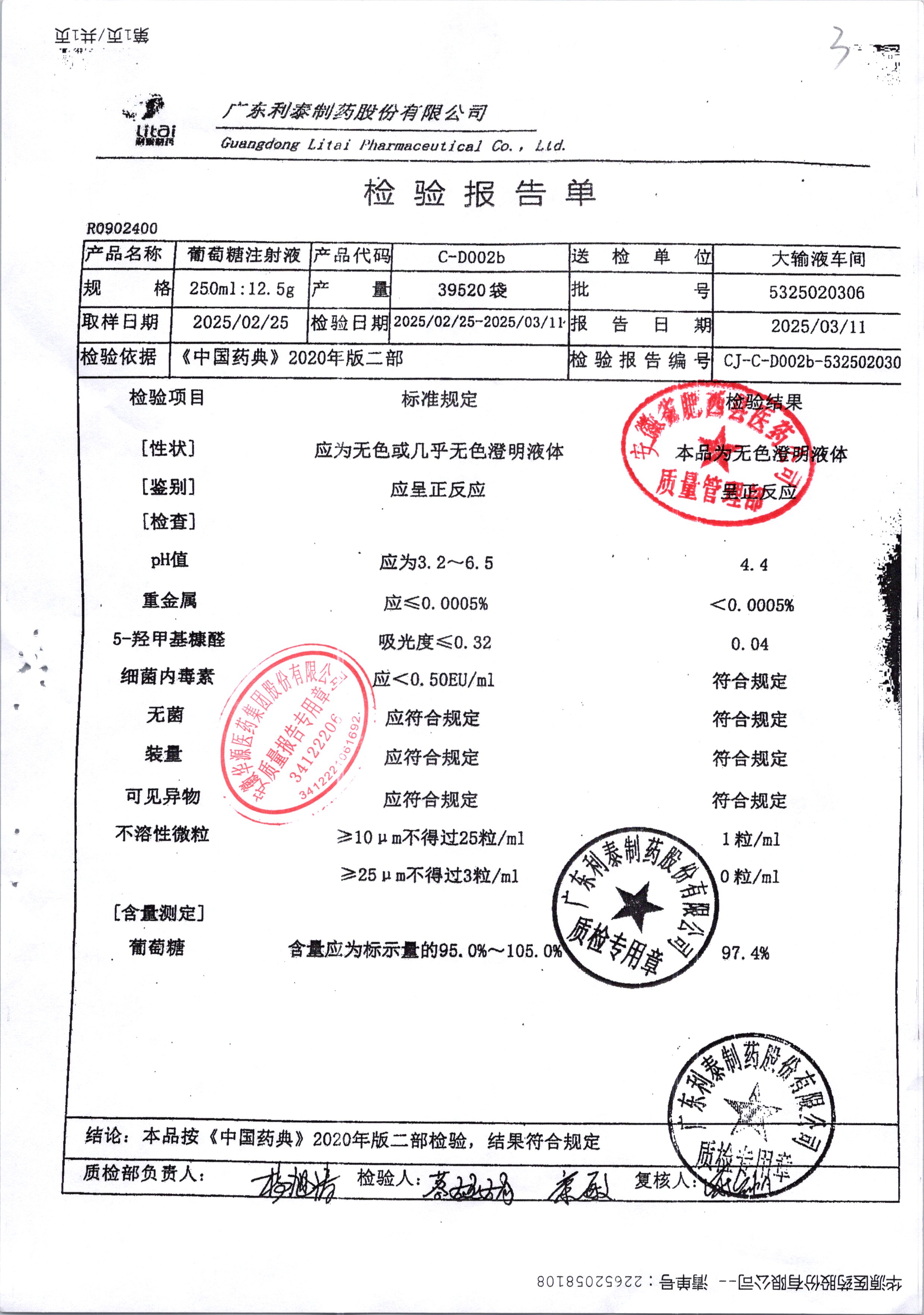 | 葡萄糖注射液 | 250ml | 5325020306 | 查看詳情 |