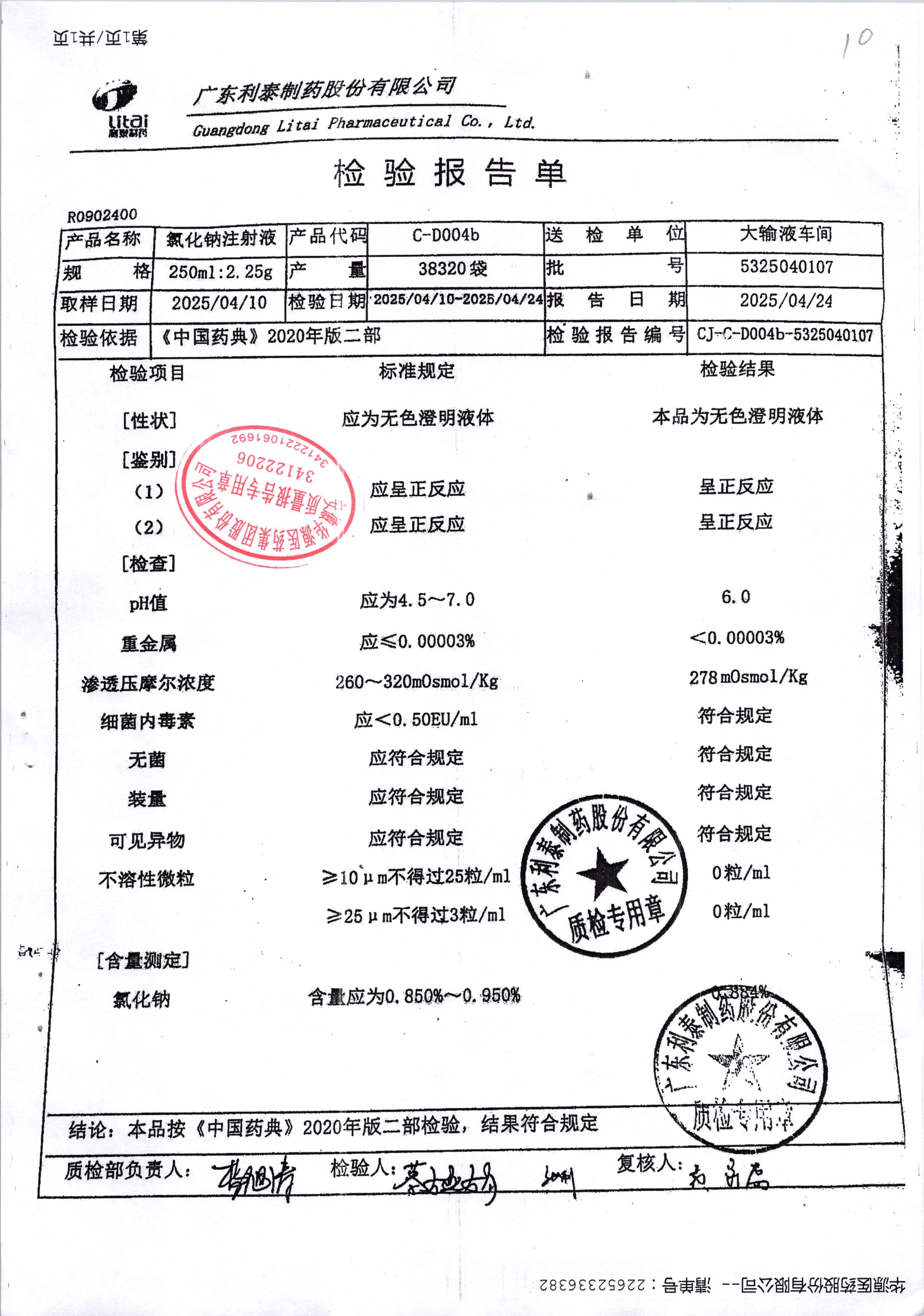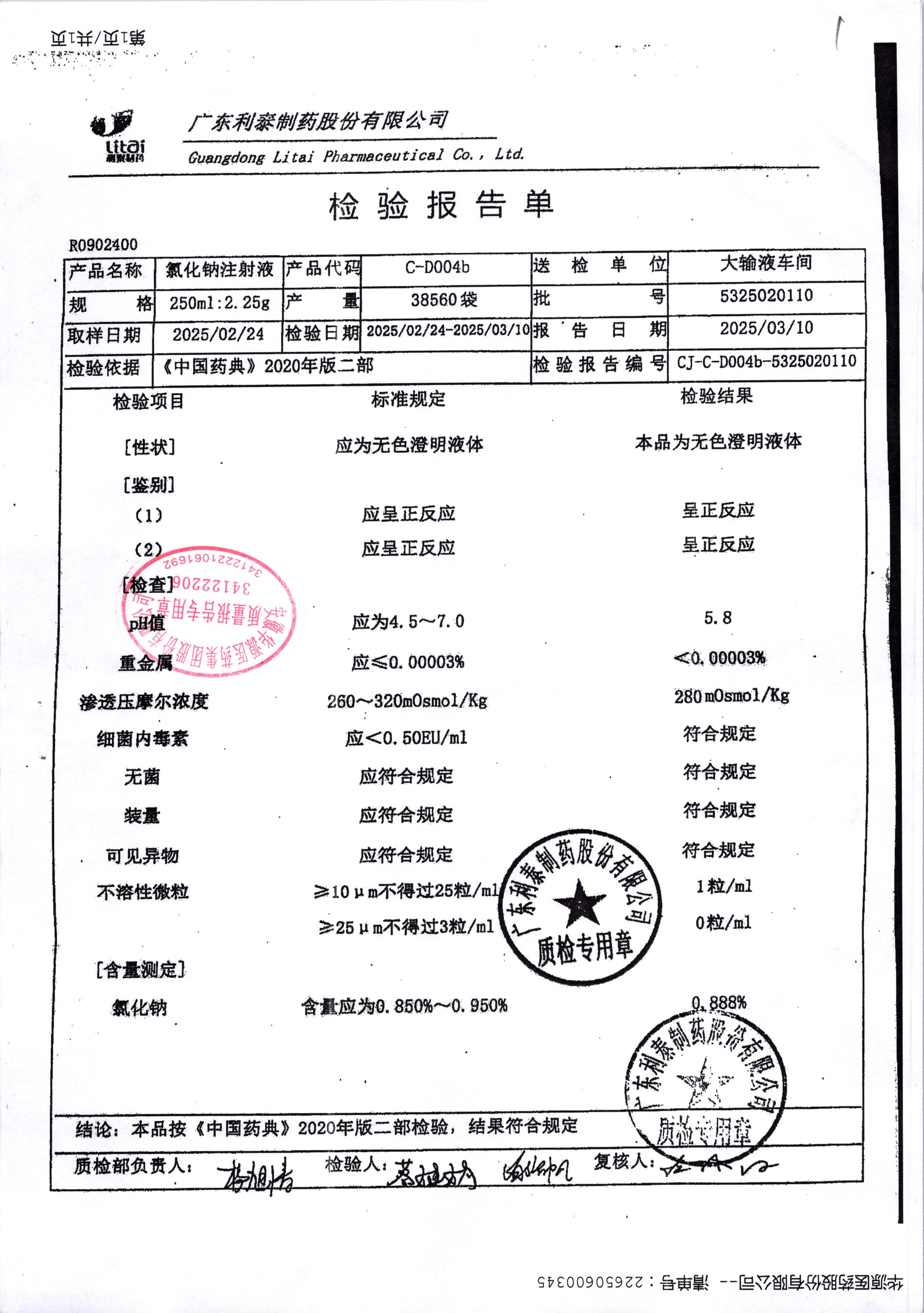 | 氯化鈉注射液 | 250ml | 5325020110 | 查看詳情 |