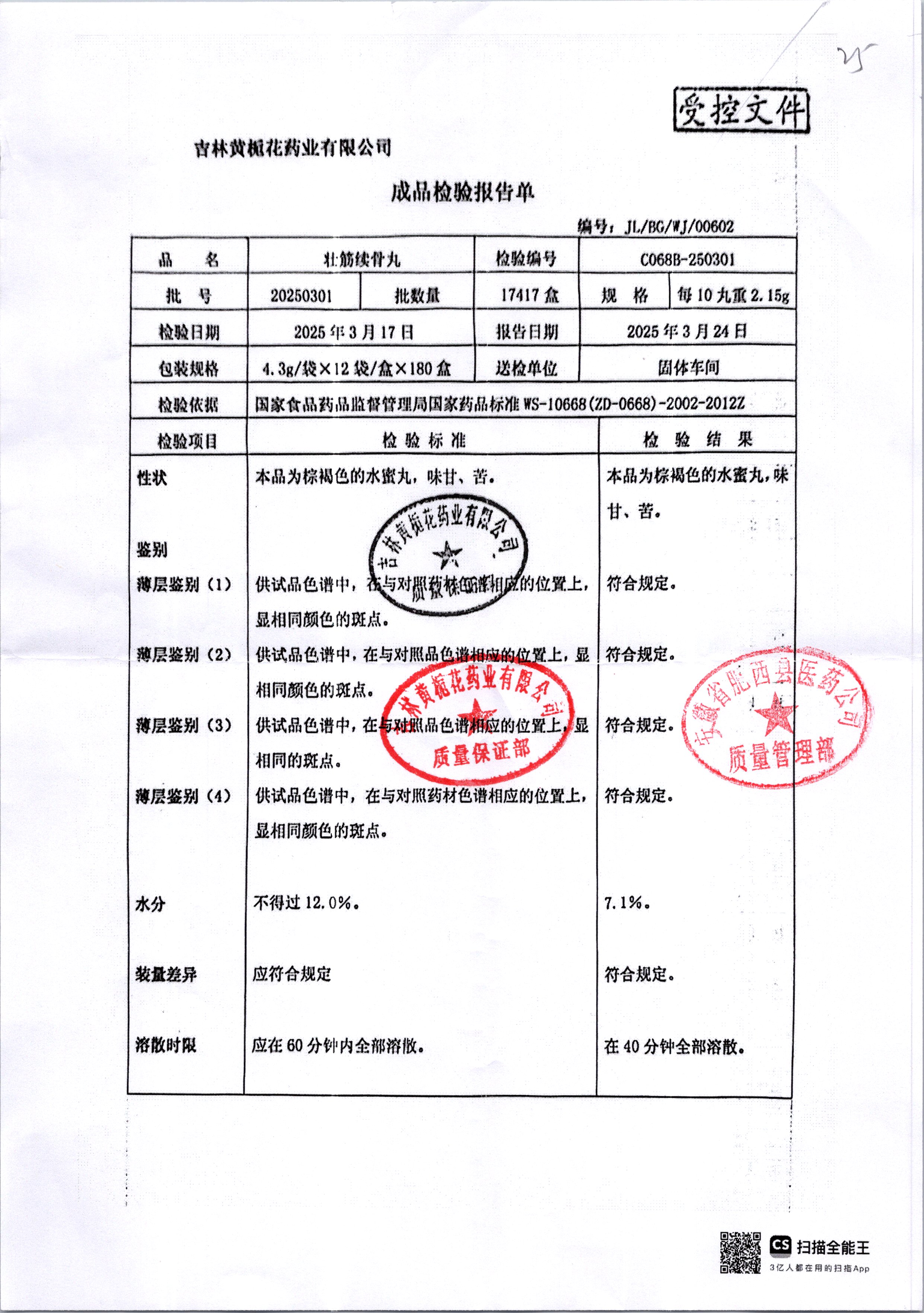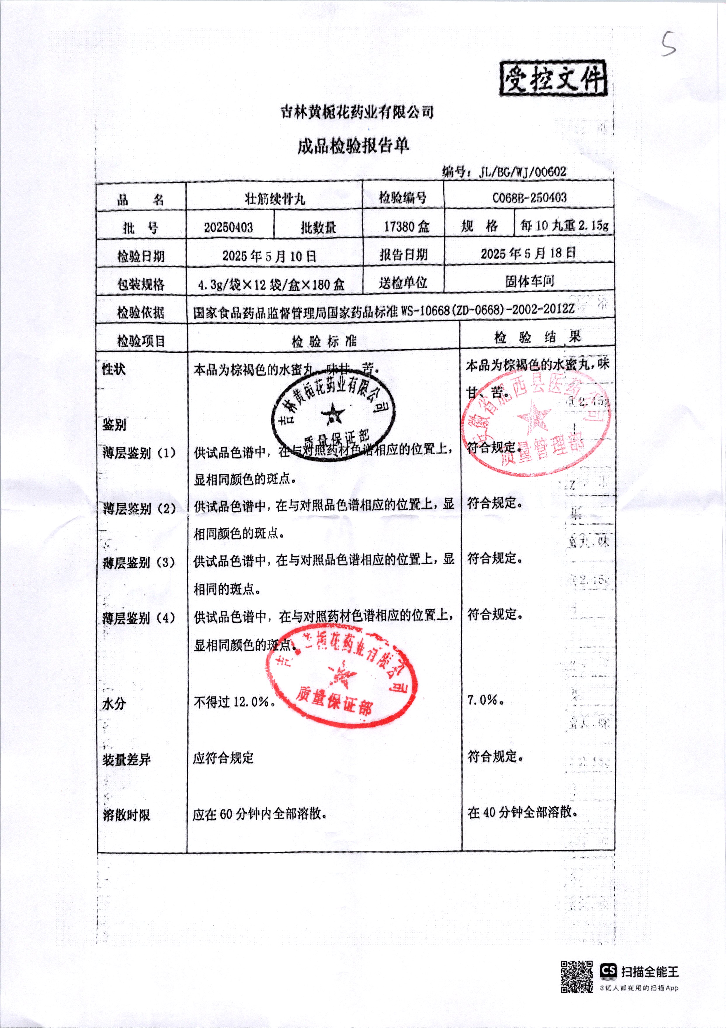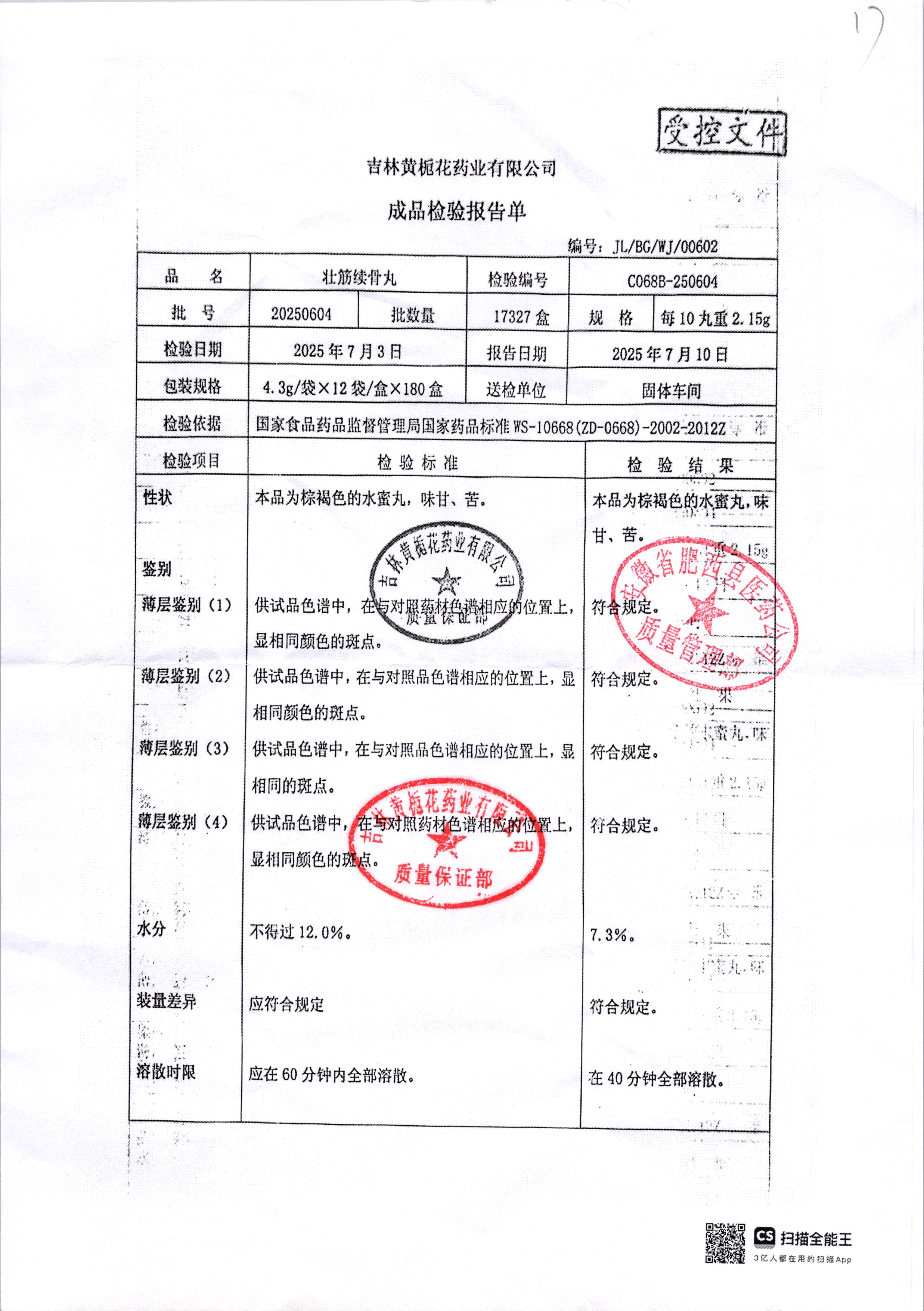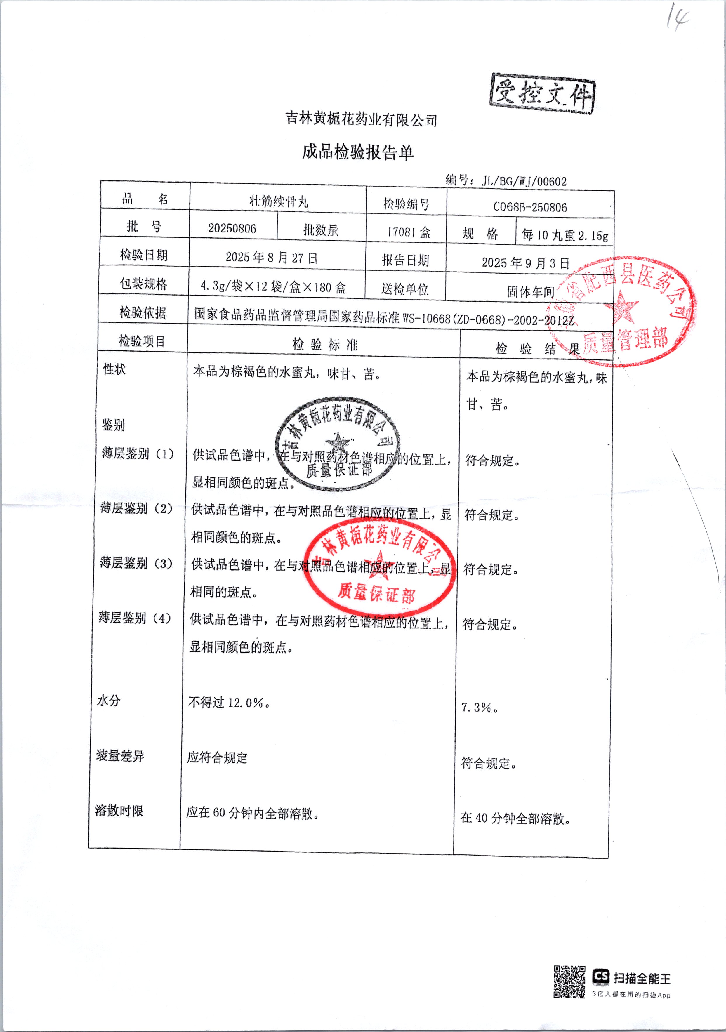 | 壯筋續(xù)骨丸 | 10丸2.15g | 20250601/2 | 查看詳情 |
