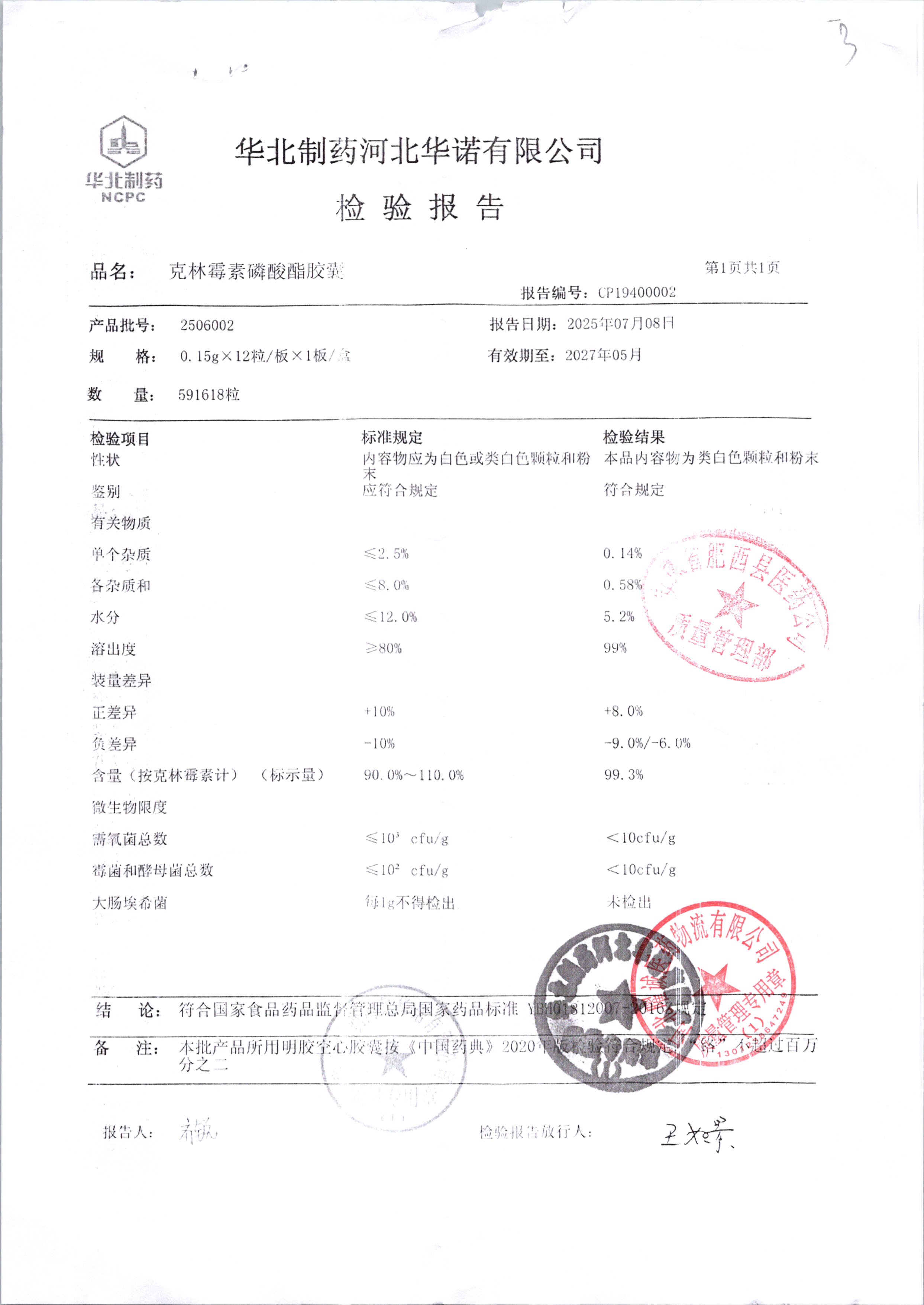 | 克林霉素磷酸酯膠囊 | 0.15G12粒 | 2506002 | 查看詳情 |
