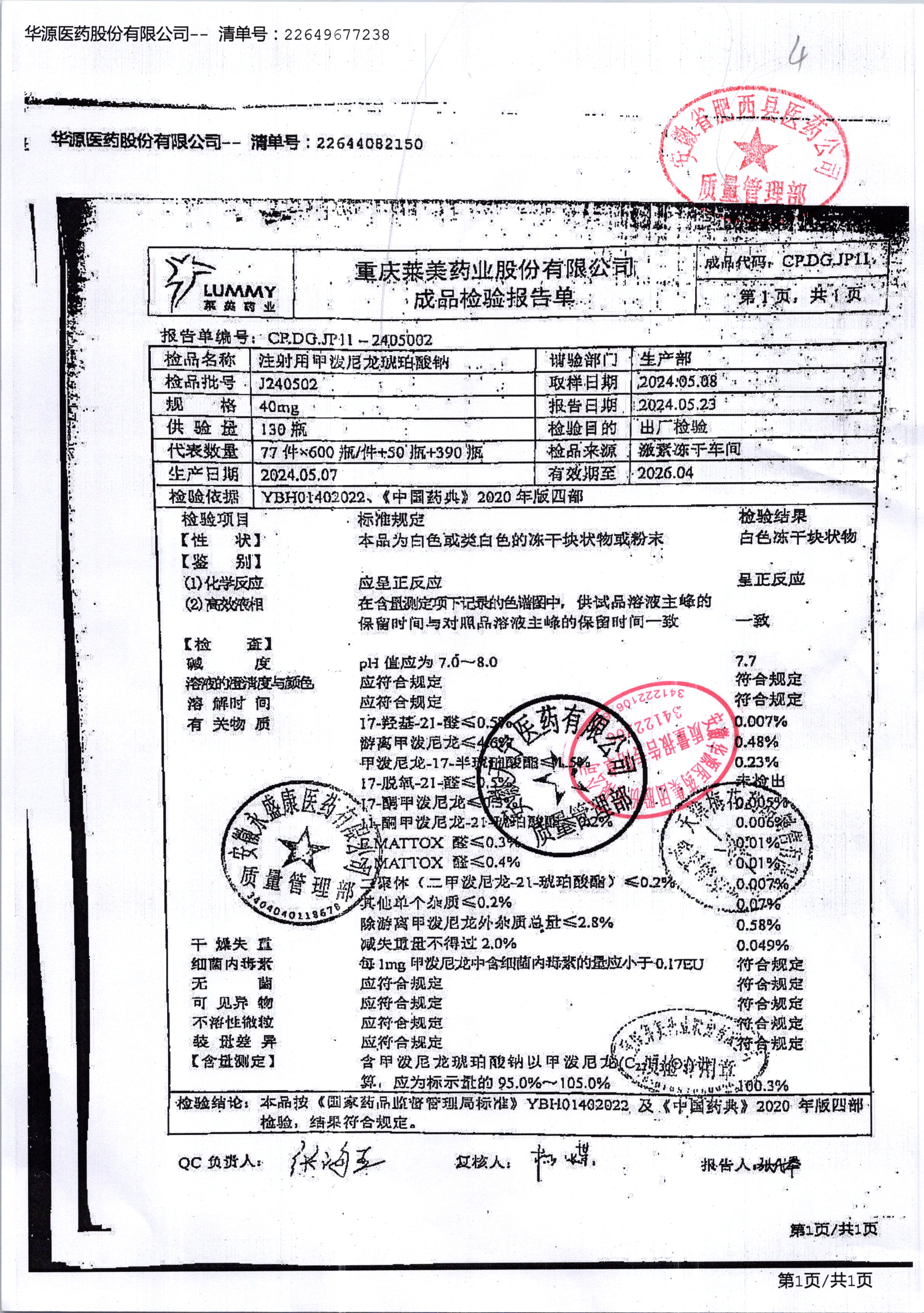 注射用甲潑尼龍琥珀酸鈉 40mg J240502 查看詳情