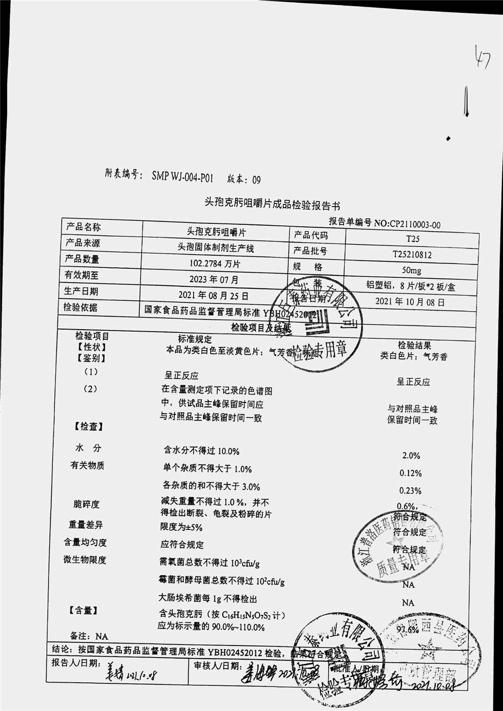 | 頭孢克肟咀嚼片 | 50mg*16s | T25210105 | 查看詳情 |