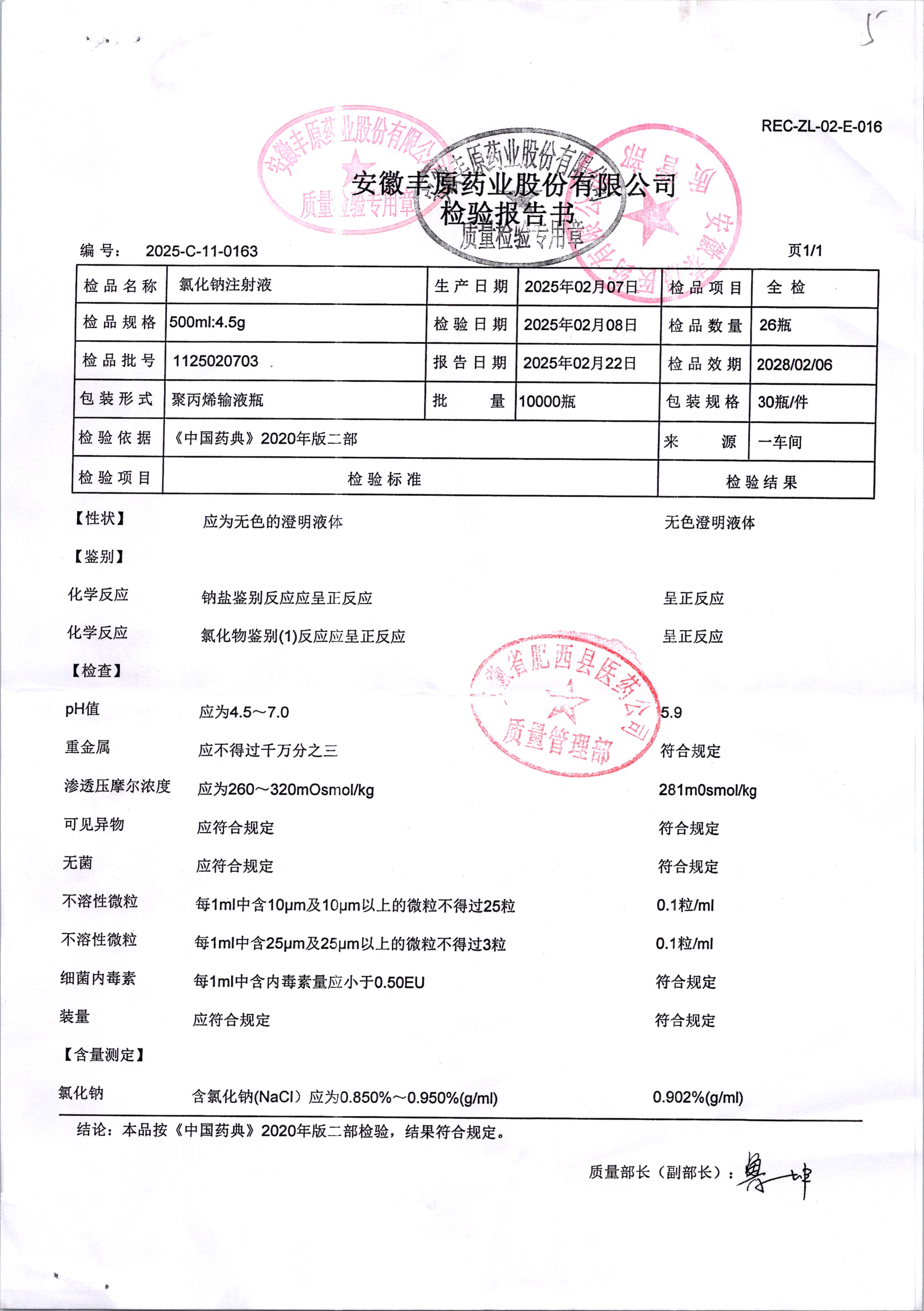 氯化鈉注射液 500ml:4.5g 1125020703 查看詳情
