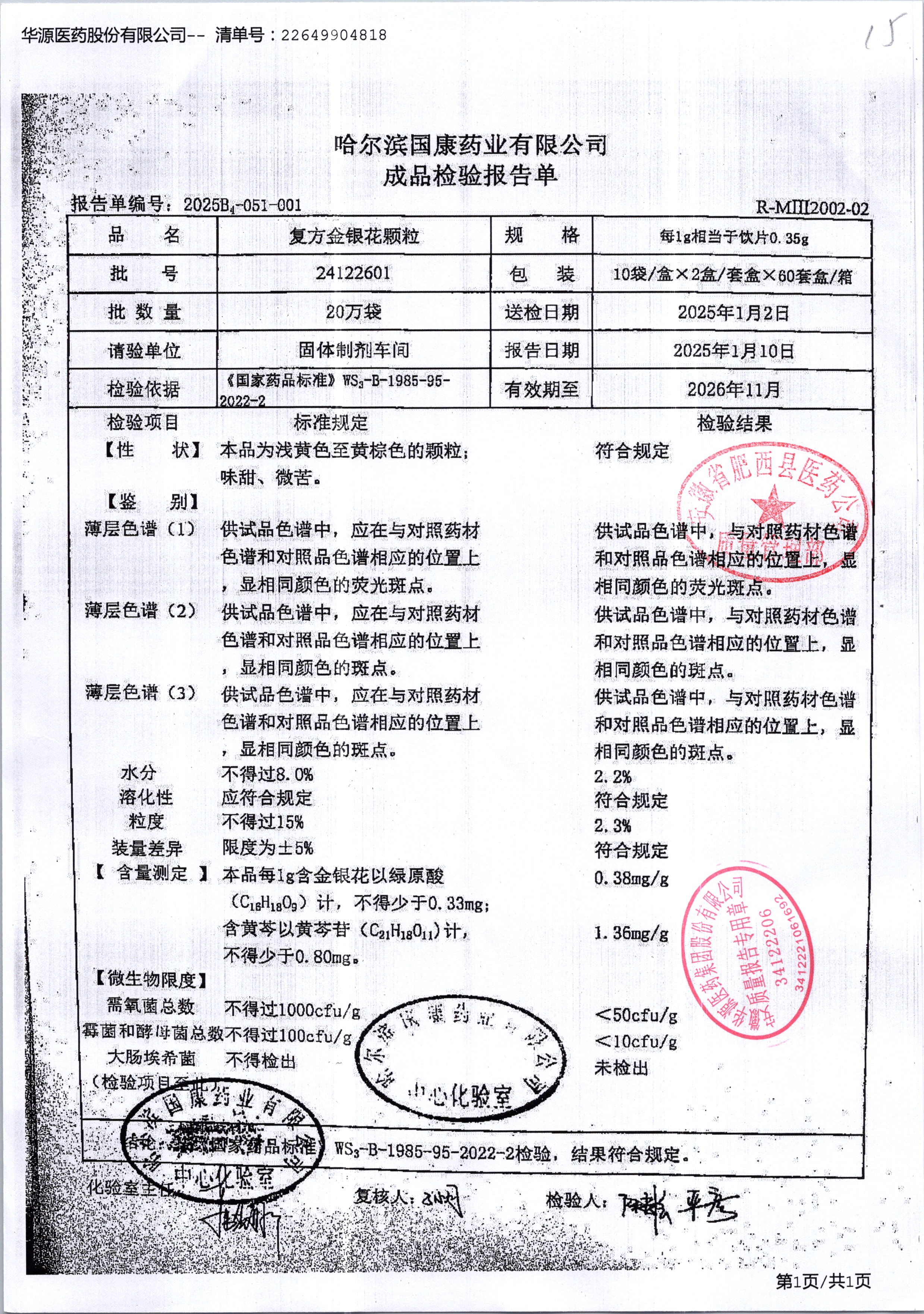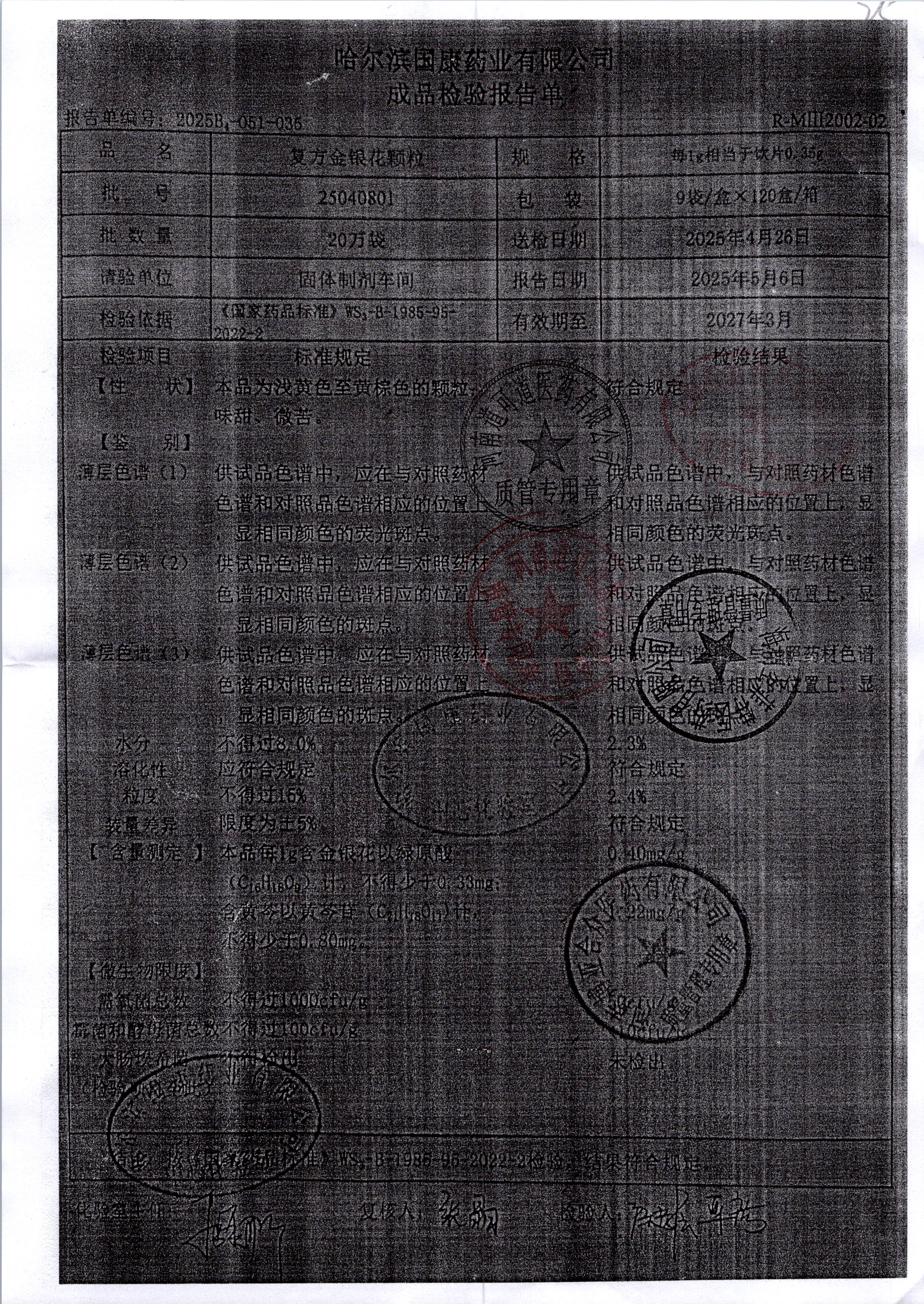 | 復(fù)方金銀花顆粒 | 0.35g*20粒 | 25040801 | 查看詳情 |
