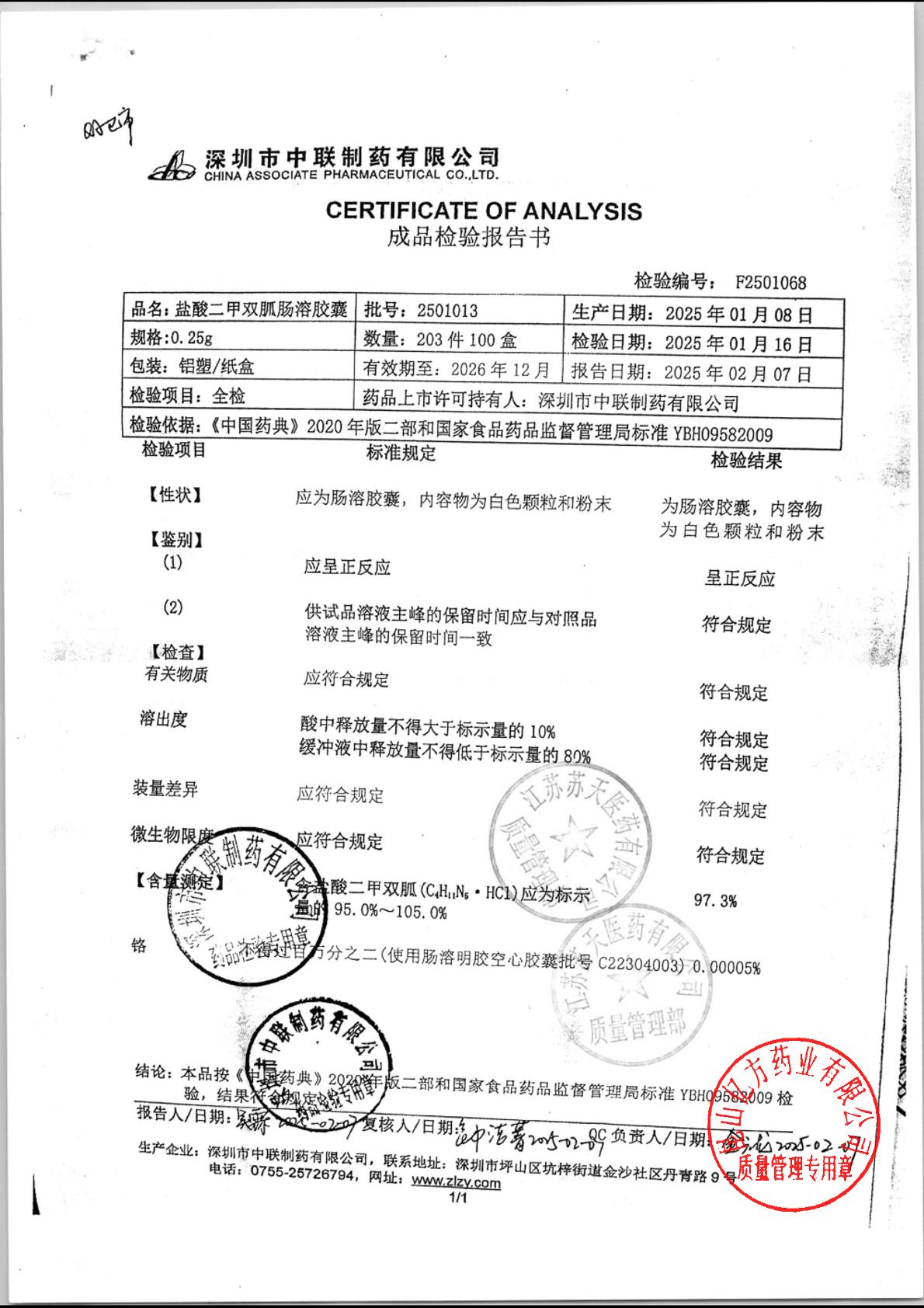鹽酸二甲雙胍腸溶膠囊 0.25g 2501013 查看詳情