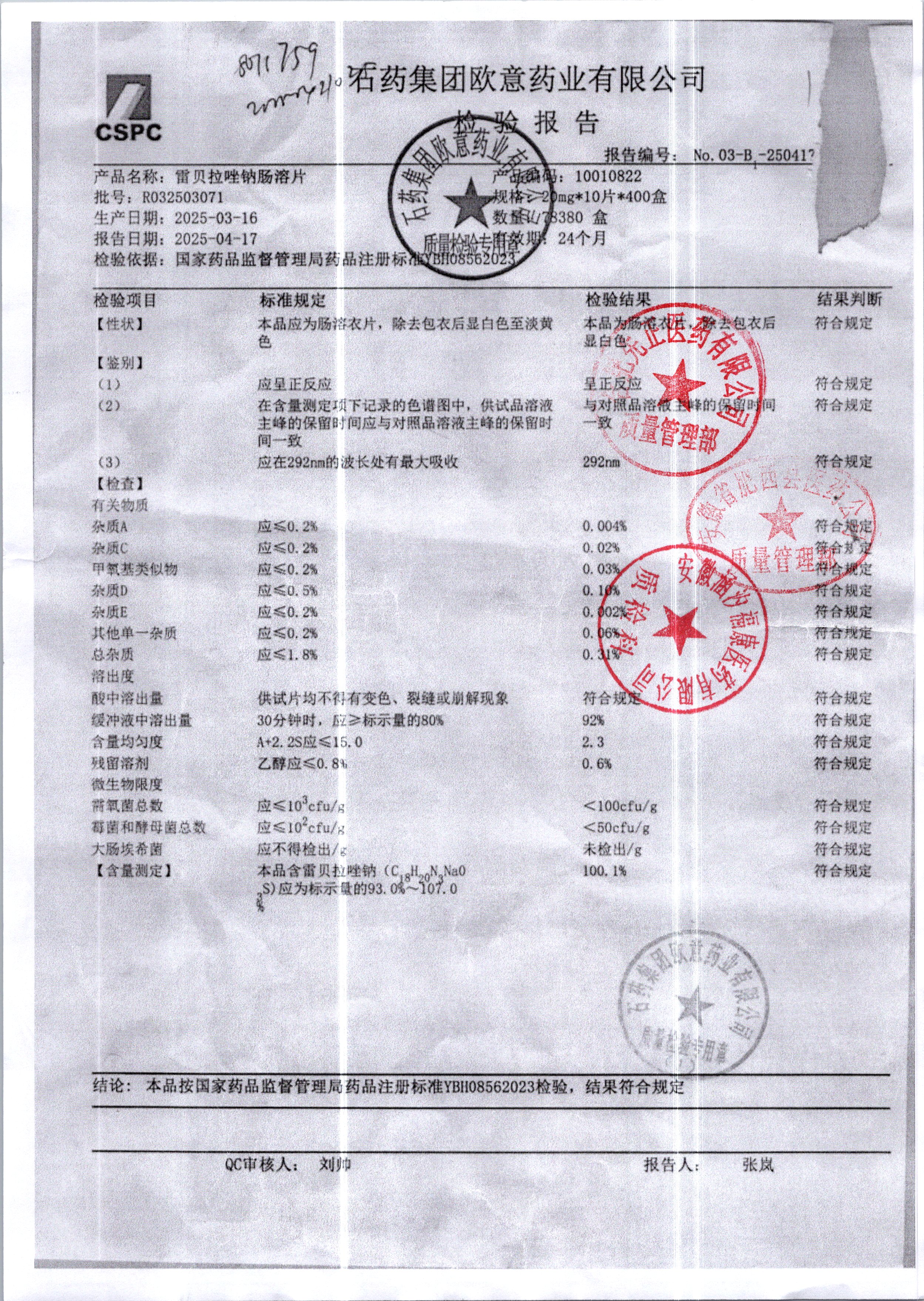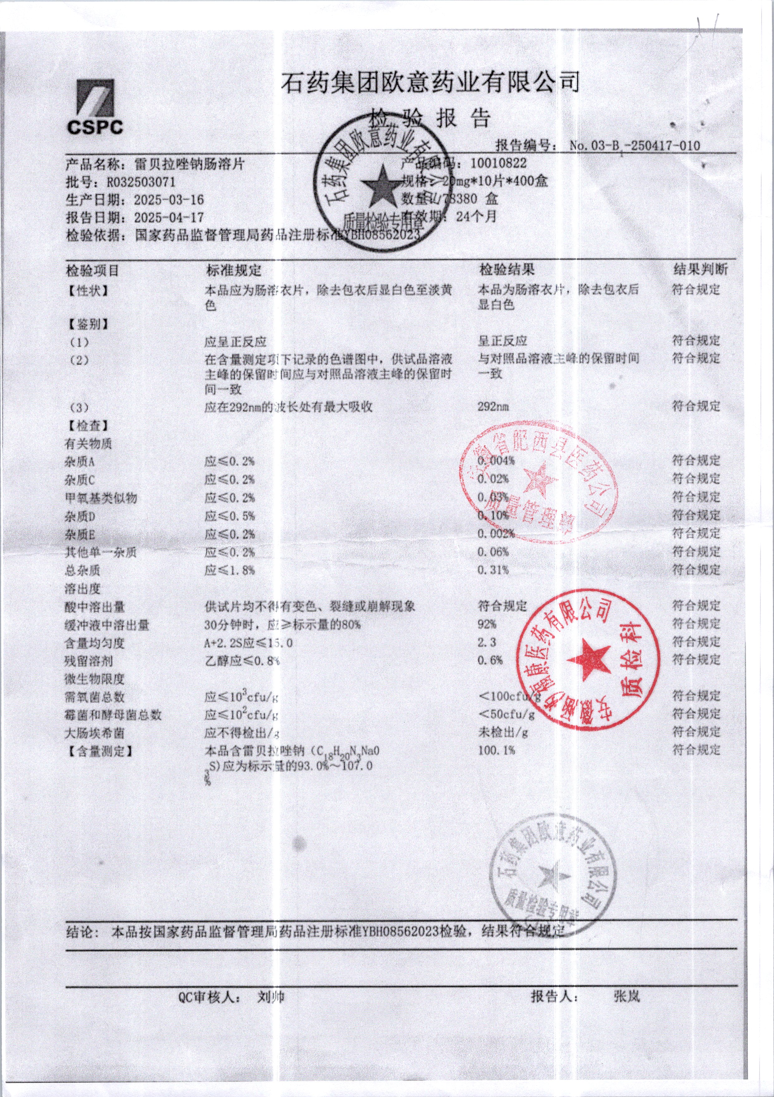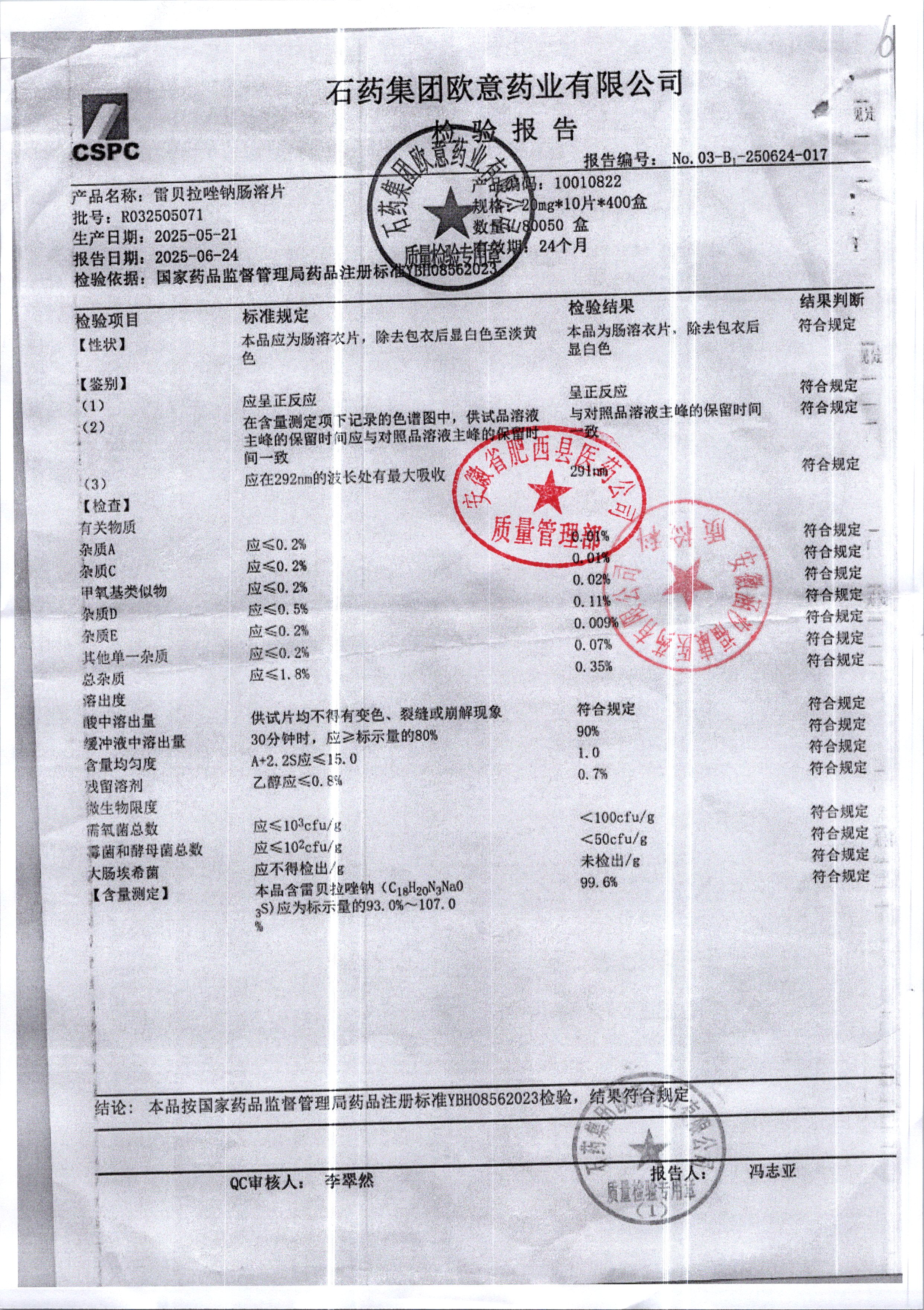 雷貝拉唑鈉腸溶片 20*10s R032503071 查看詳情