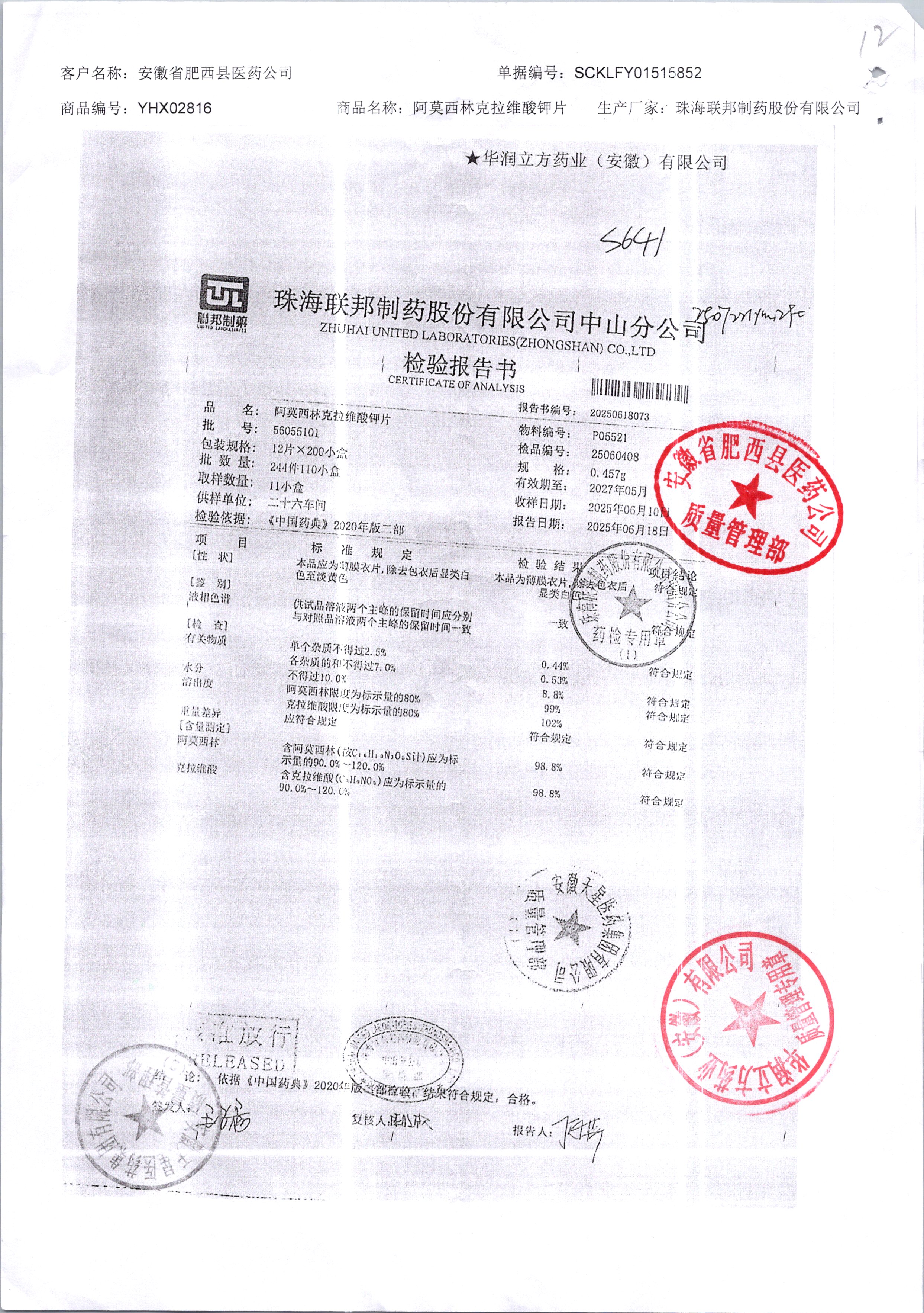 阿莫西林克拉維酸鉀分散片 0.457g*12片 56055101 查看詳情