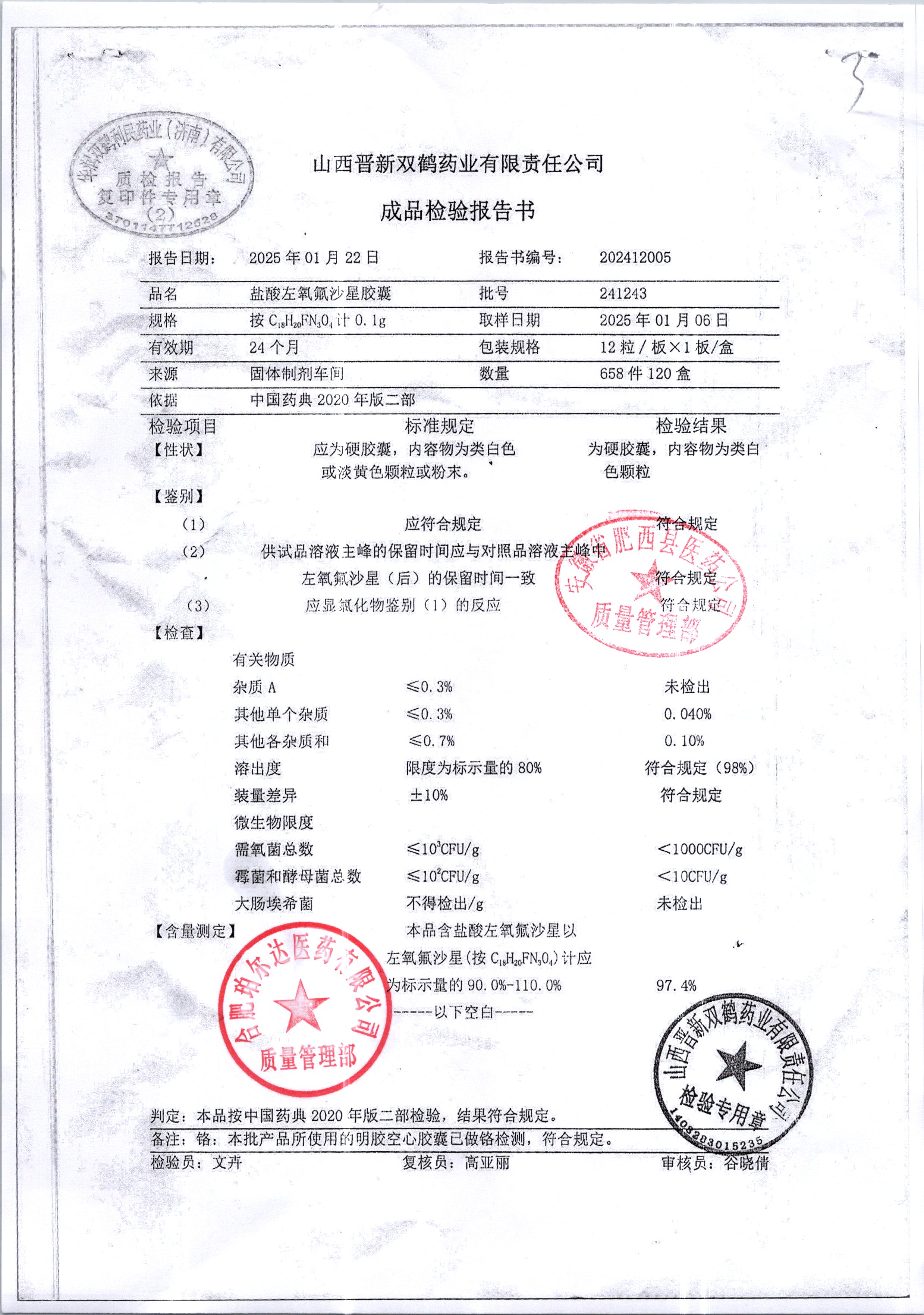 鹽酸左氧氟沙星膠囊 0.1g*12粒 241243 查看詳情