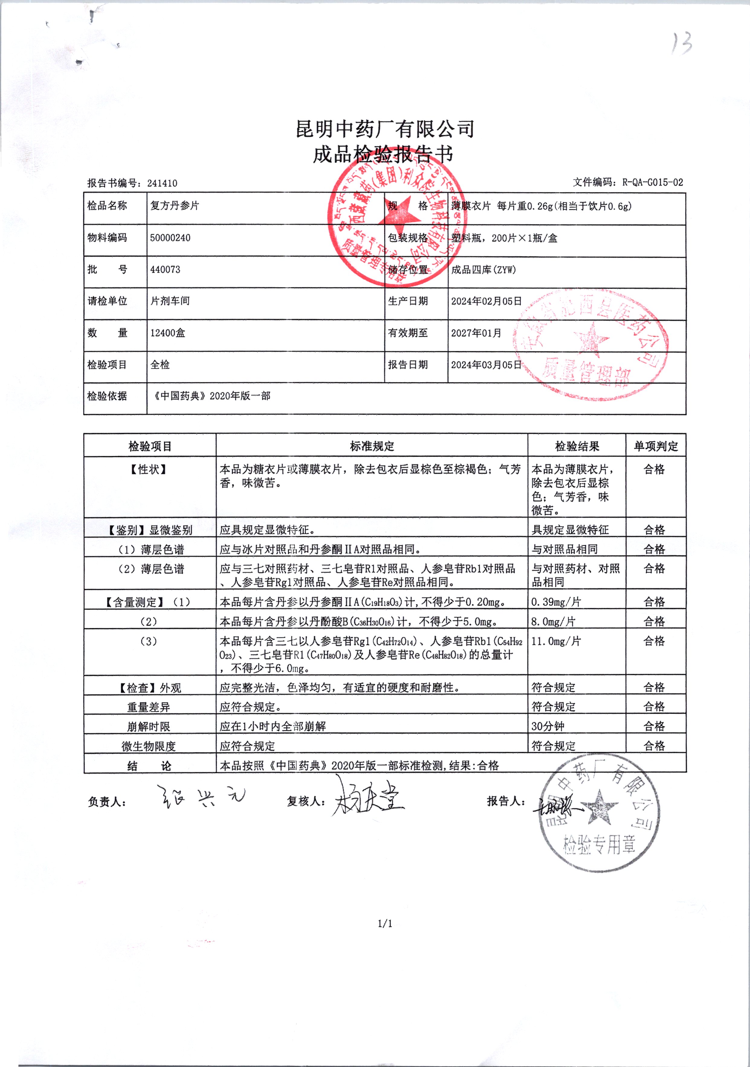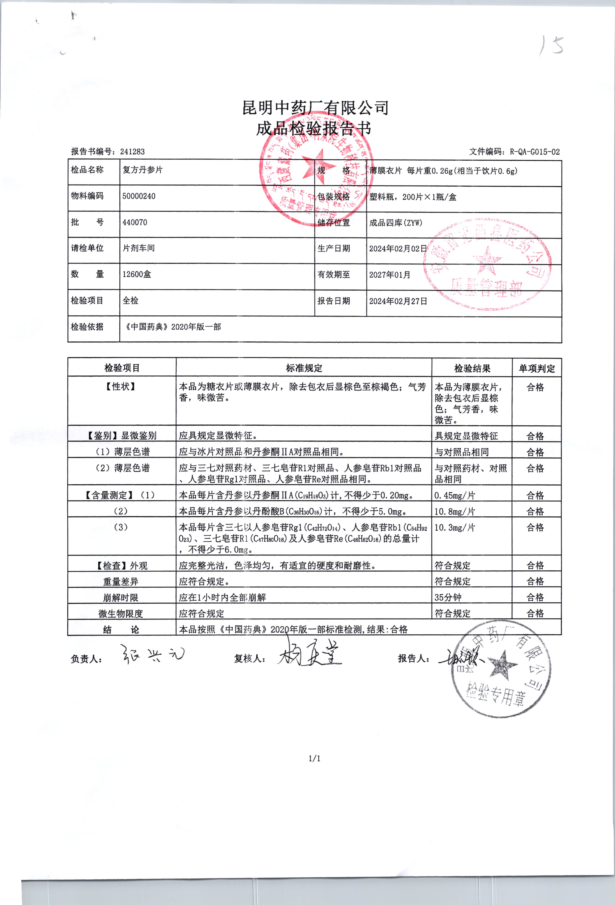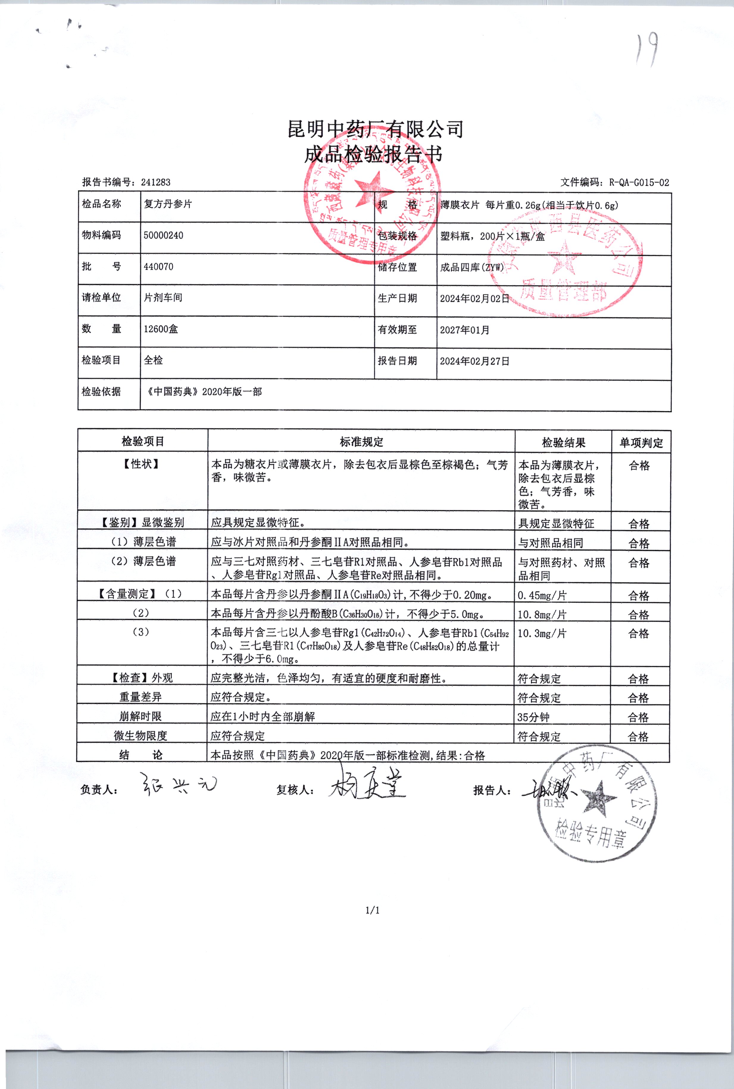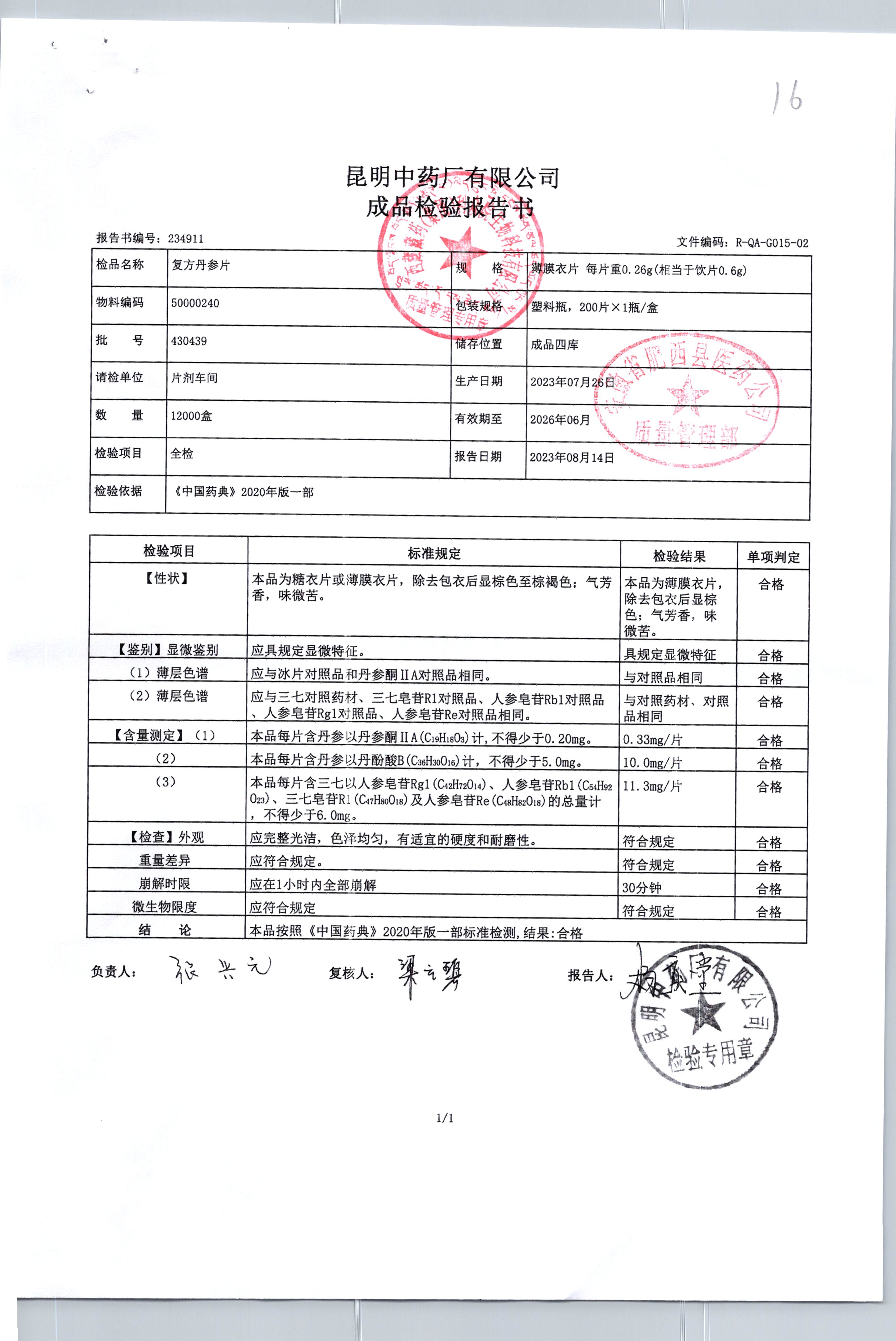 | 復方丹參片 | 0.26g | 440073 | 查看詳情 |