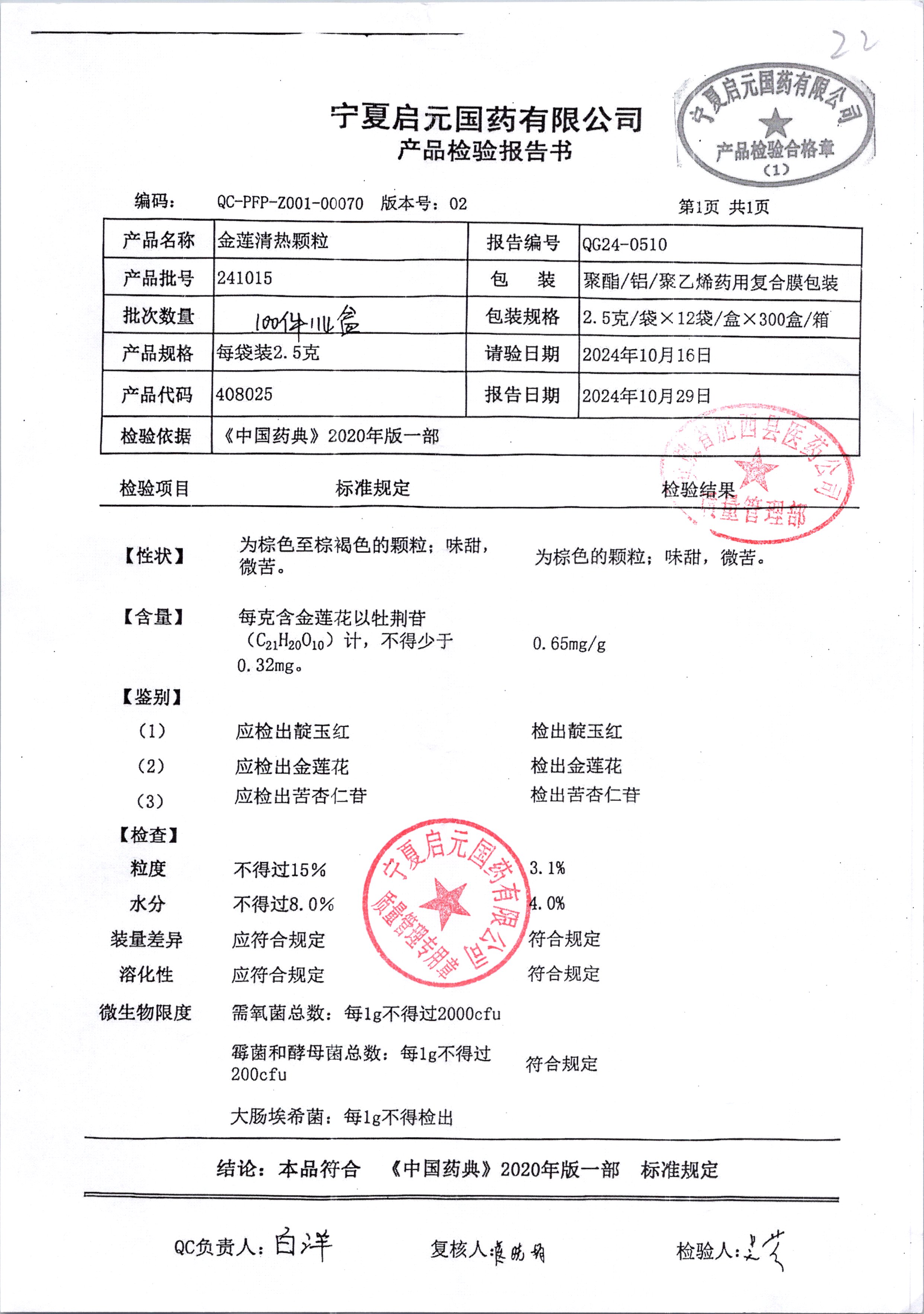金蓮清熱顆粒 2.5g*12袋 241016 查看詳情