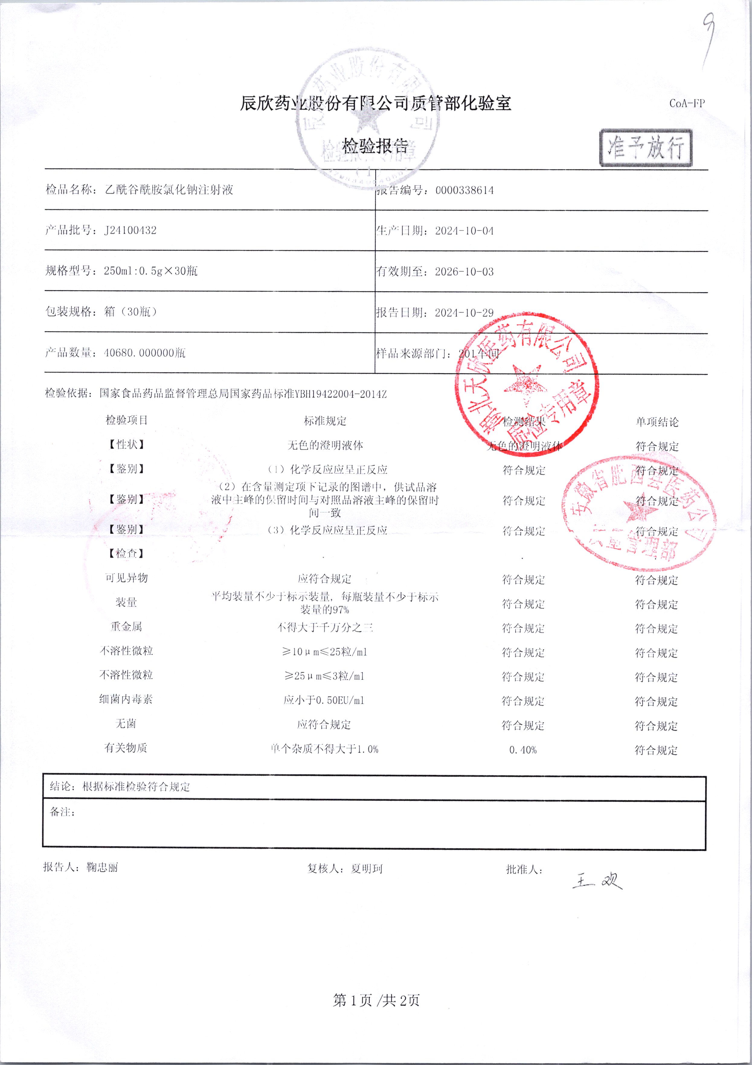 | 乙酰谷酰胺氯化鈉注射液 | 250ml | J24100432/2 | 查看詳情 |