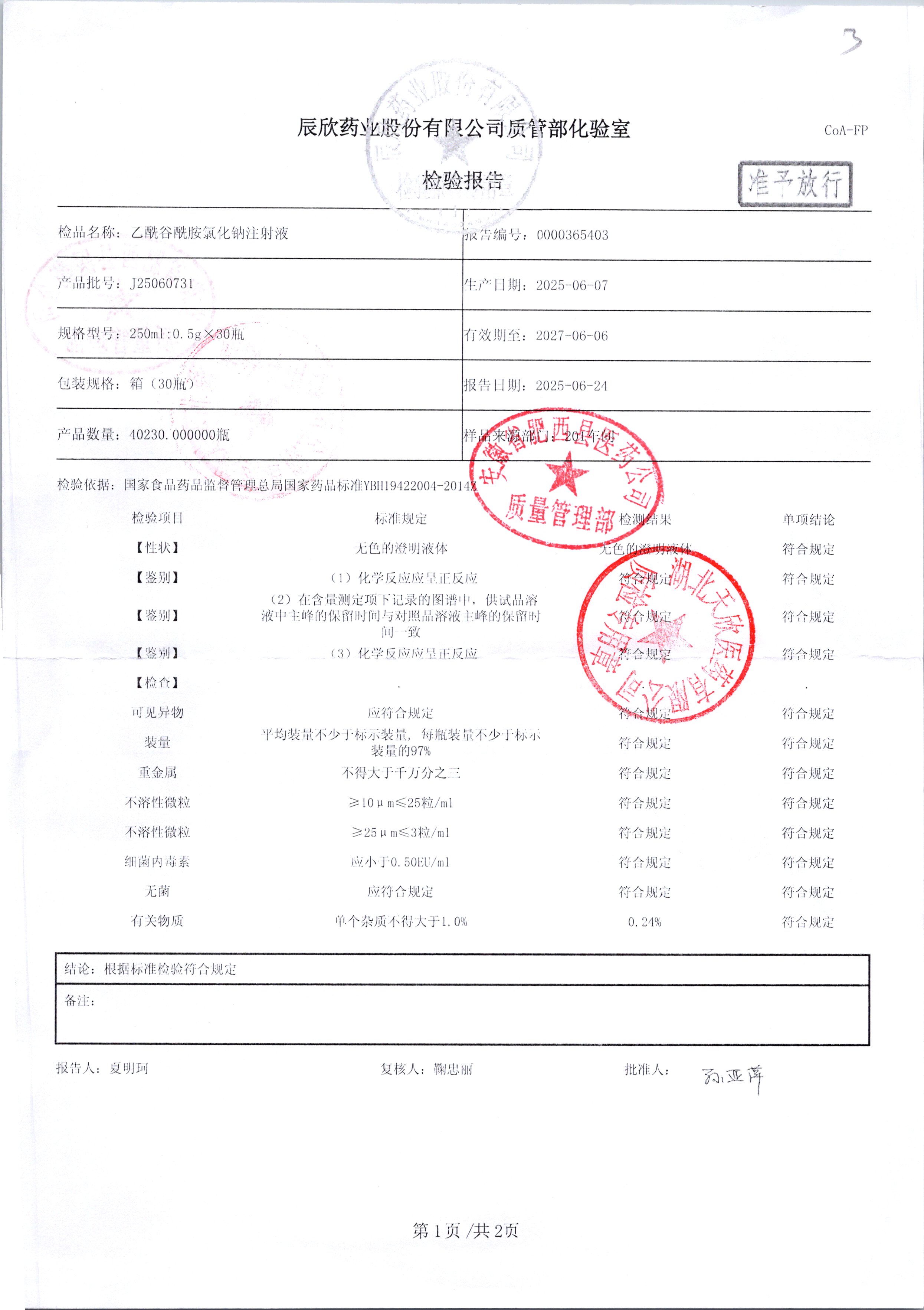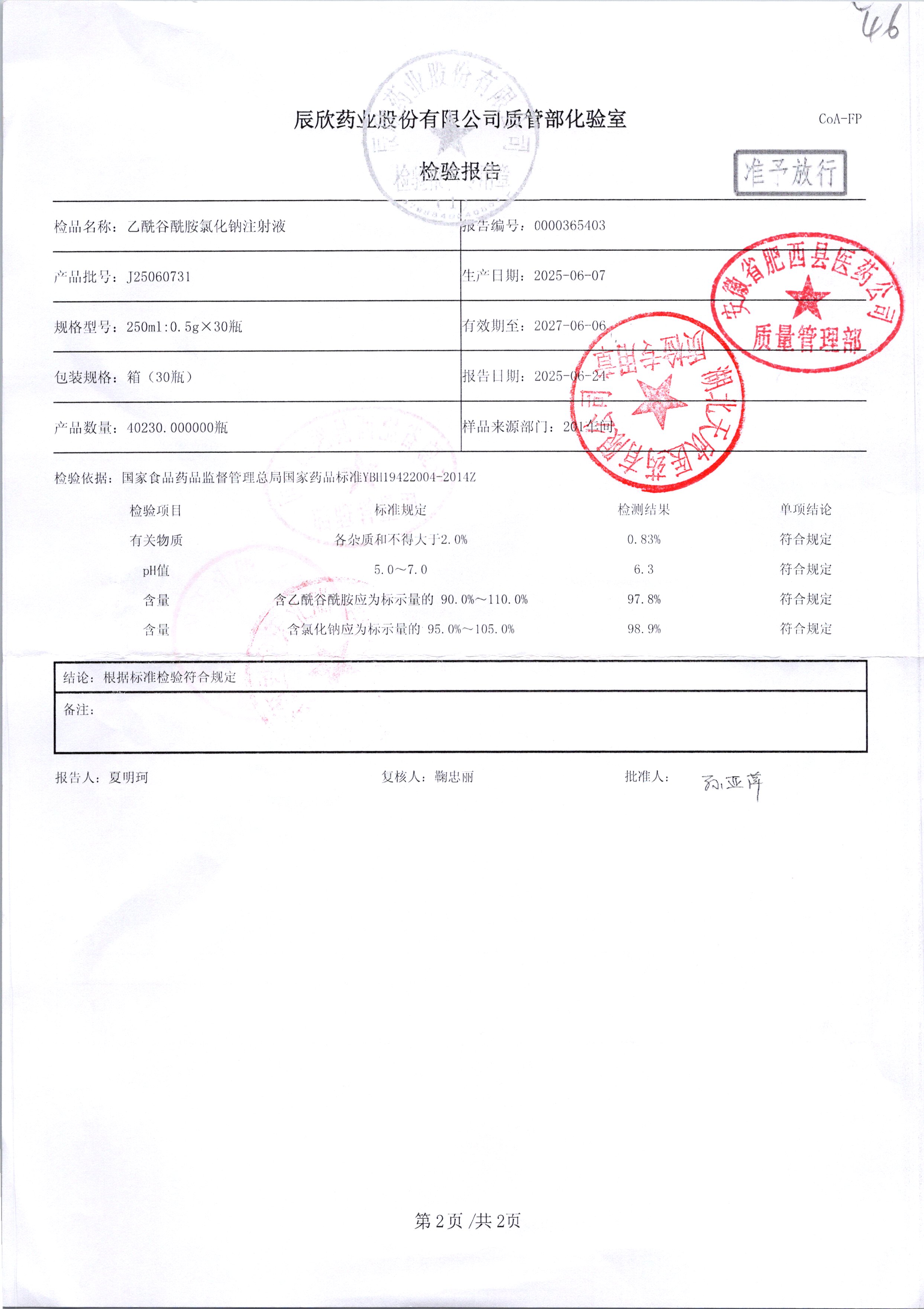 | 乙酰谷酰胺氯化鈉注射液 | 250ml | J25060731/1 | 查看詳情 |
