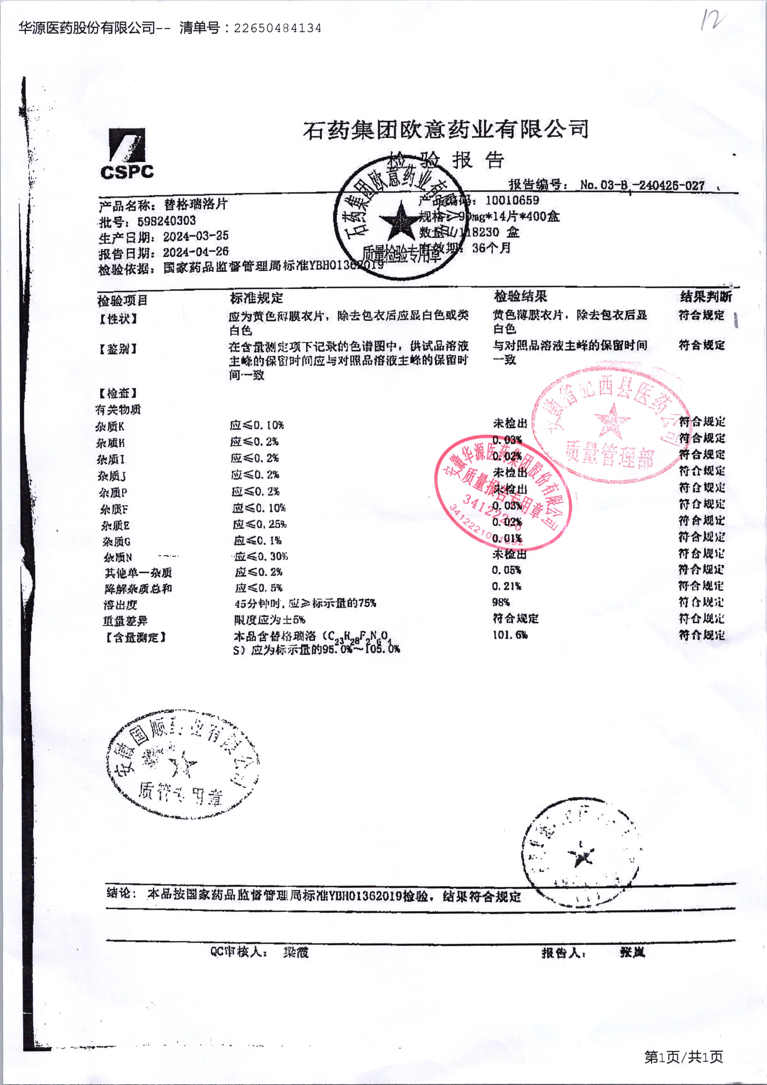 名稱 規(guī)格 批號(hào) 藥檢報(bào)告