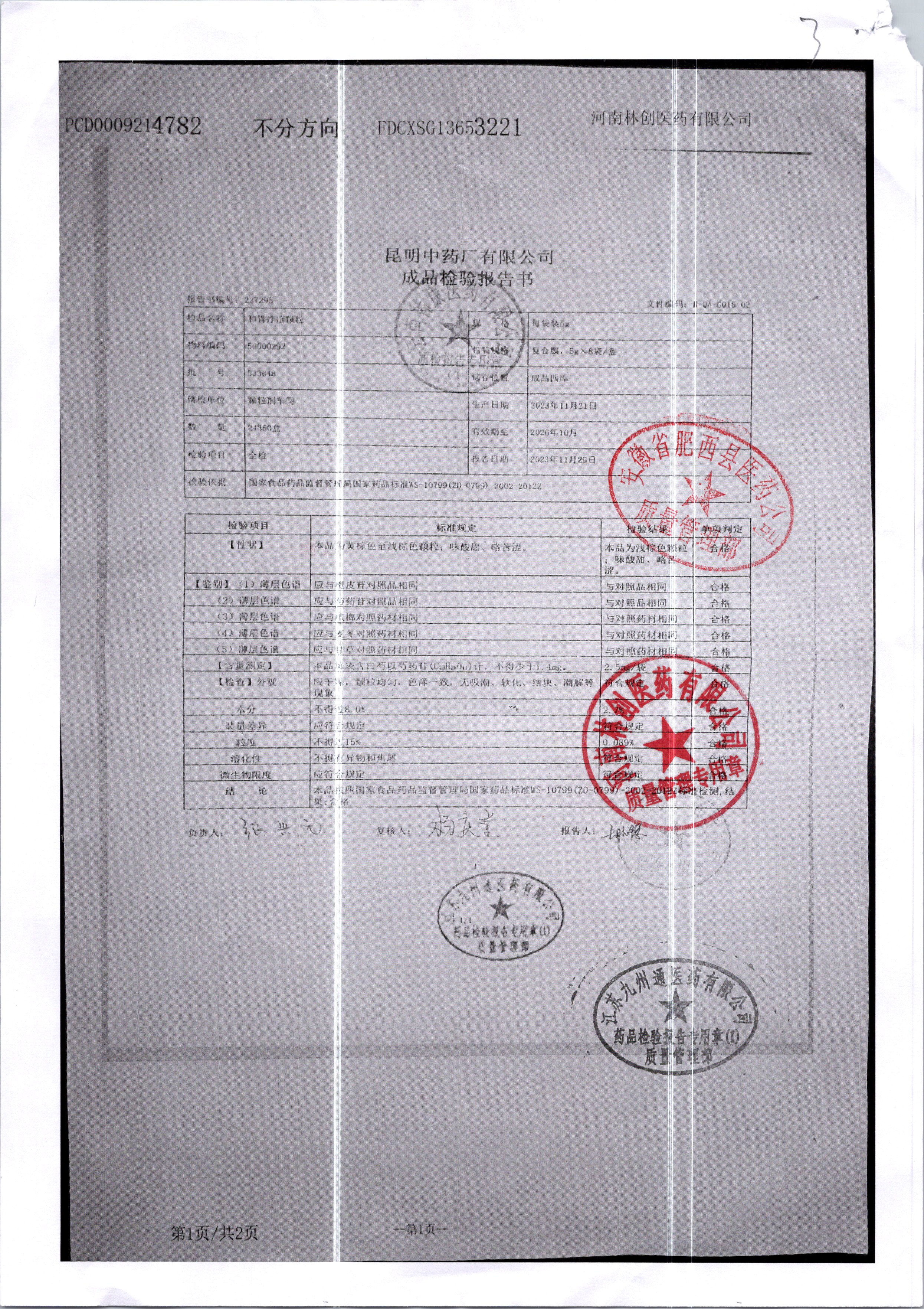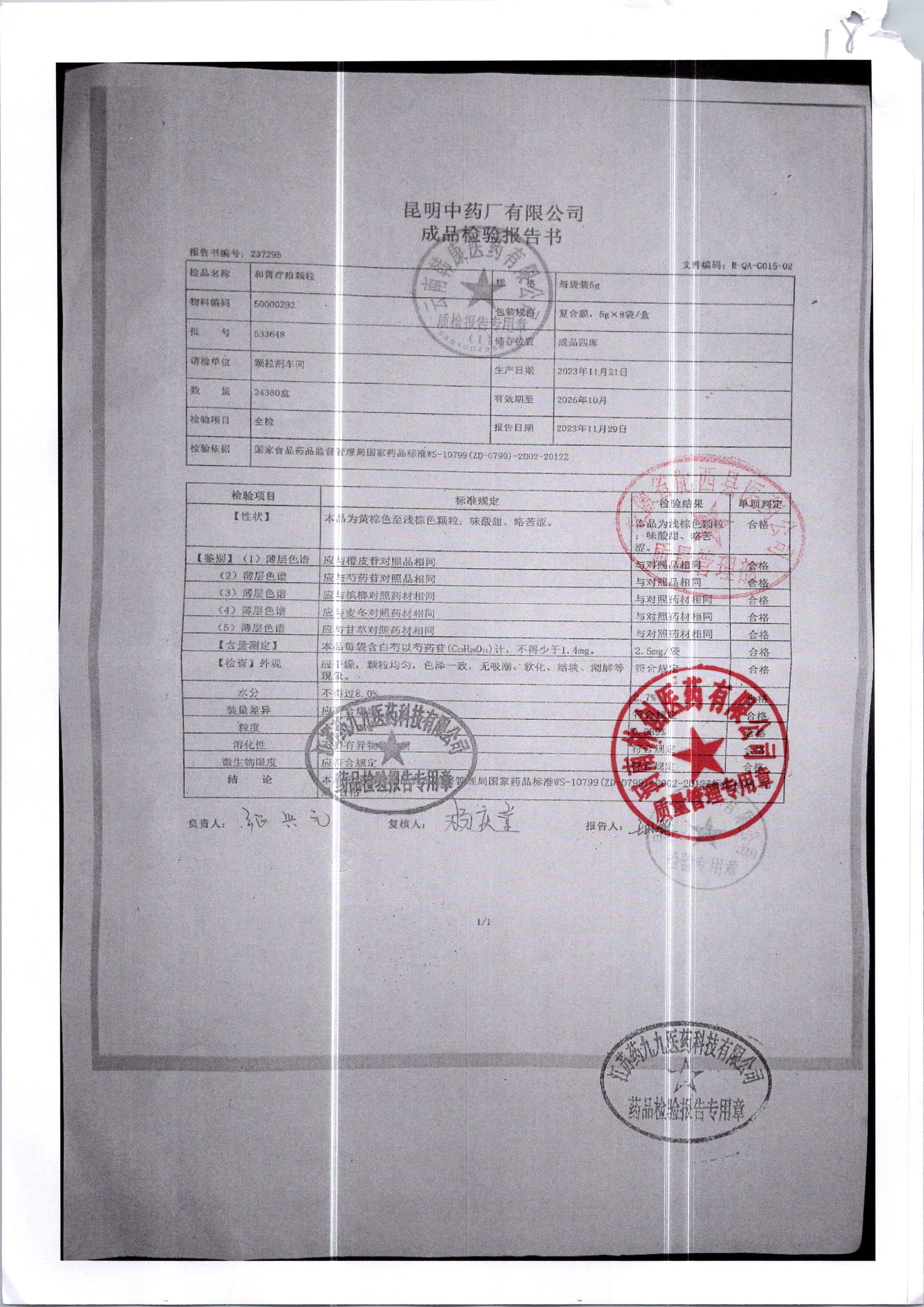 名稱 規格 批號 藥檢報告