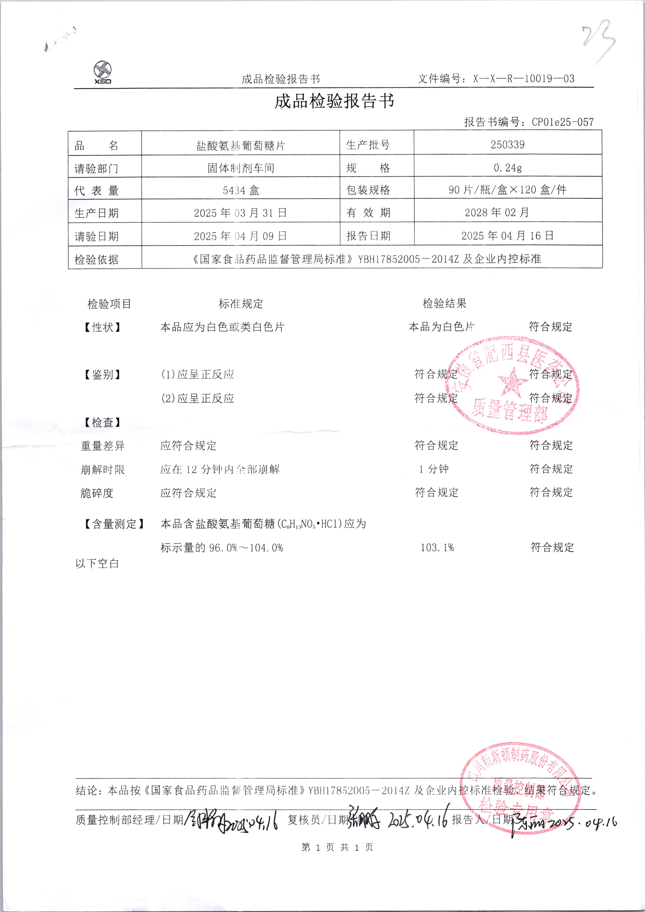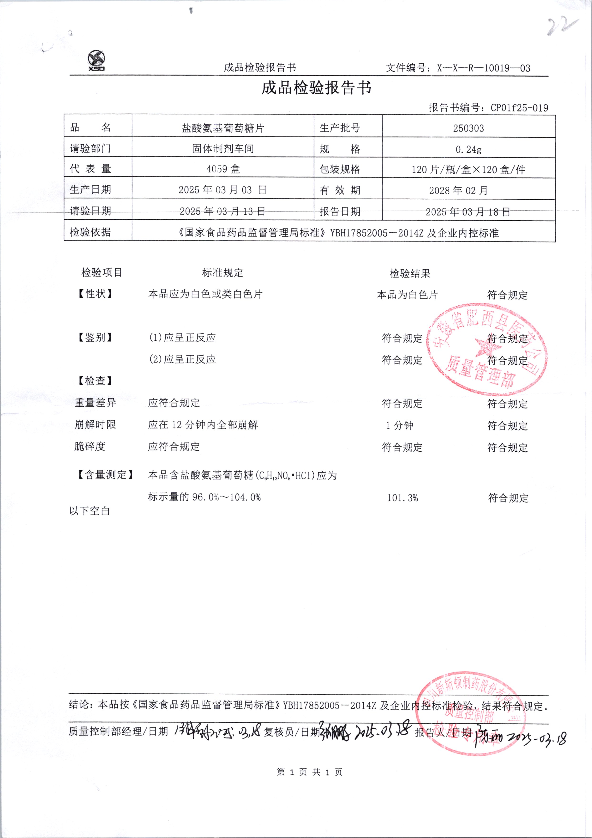 鹽酸氨基葡萄糖片 120片 250339 查看詳情