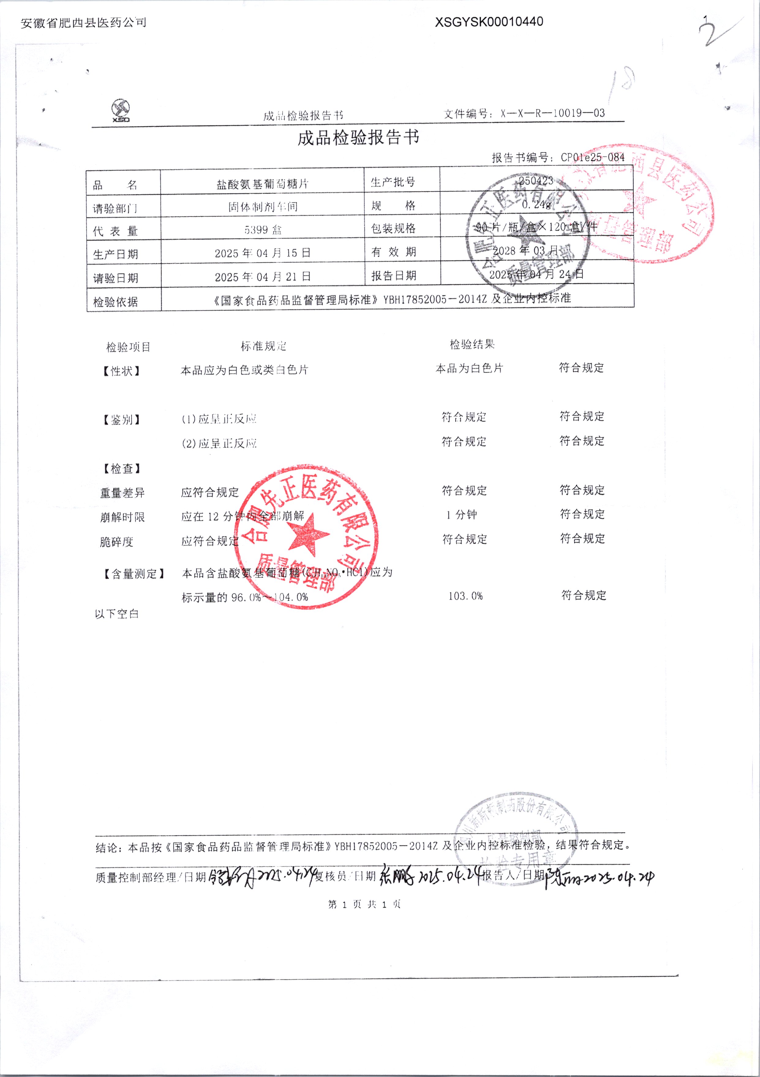 鹽酸氨基葡萄糖片 120片 250423 查看詳情