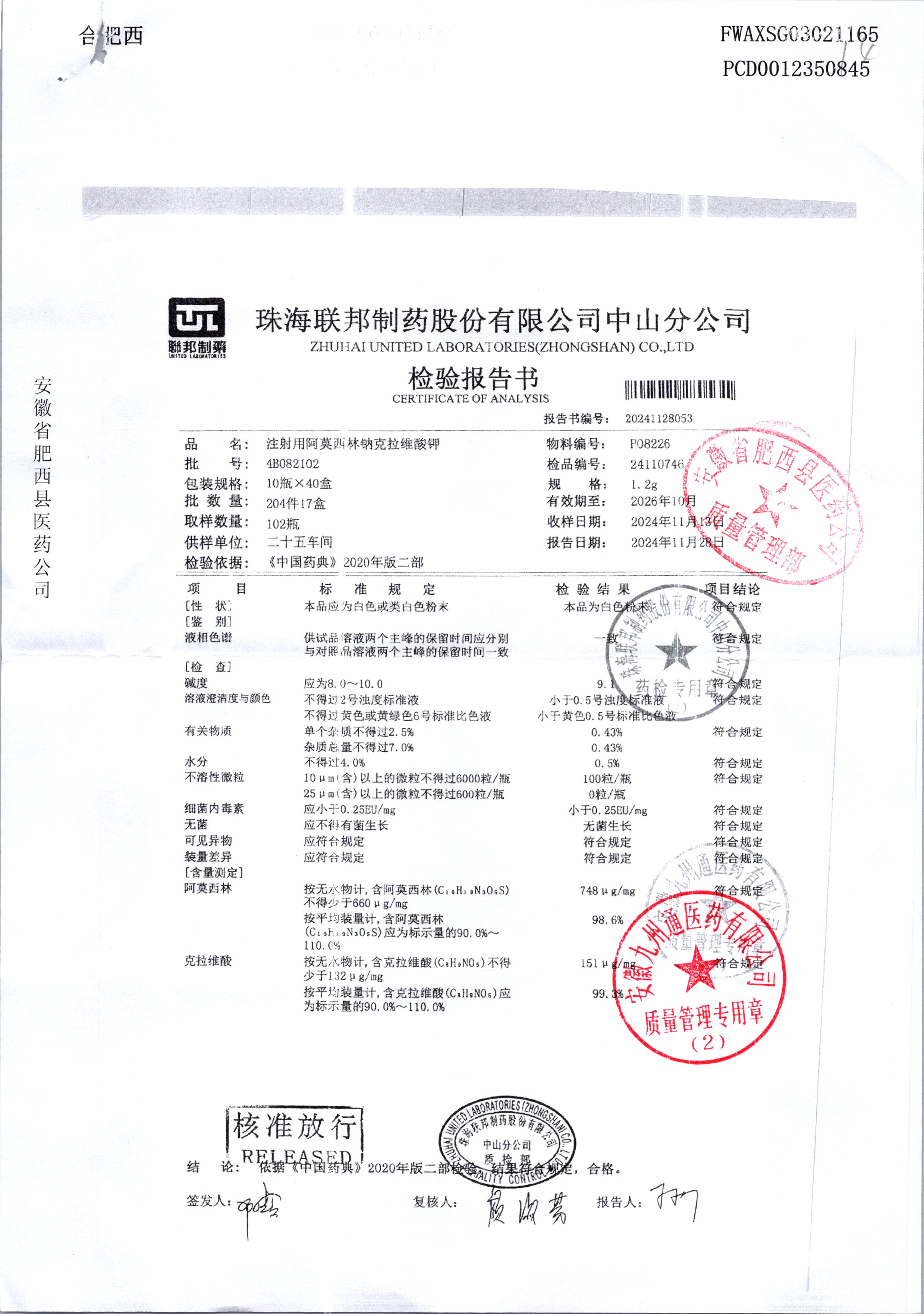 注射用阿莫西林克拉維酸鉀 1.2g 4B082102 查看詳情