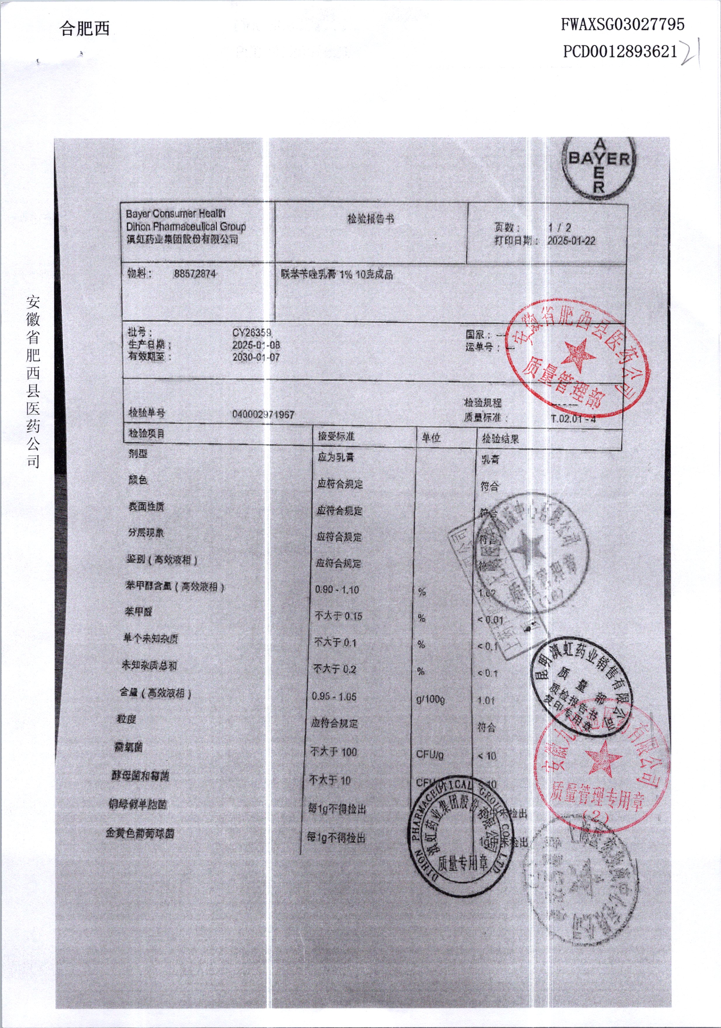 | 聯(lián)苯芐唑乳膏 | 1% | CY26359/2 | 查看詳情 |