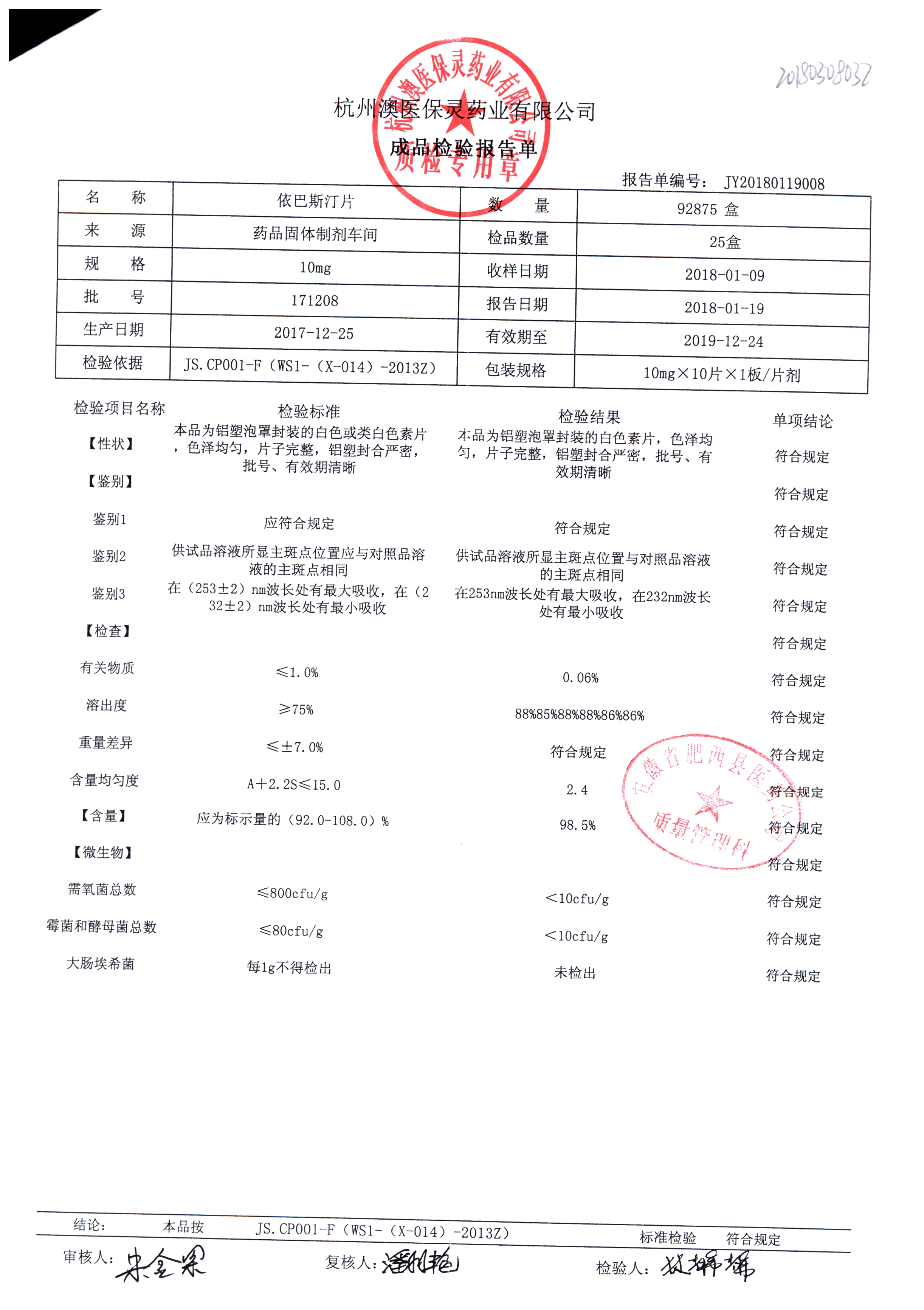 依巴斯汀片 10mg*10s 180202 查看詳情