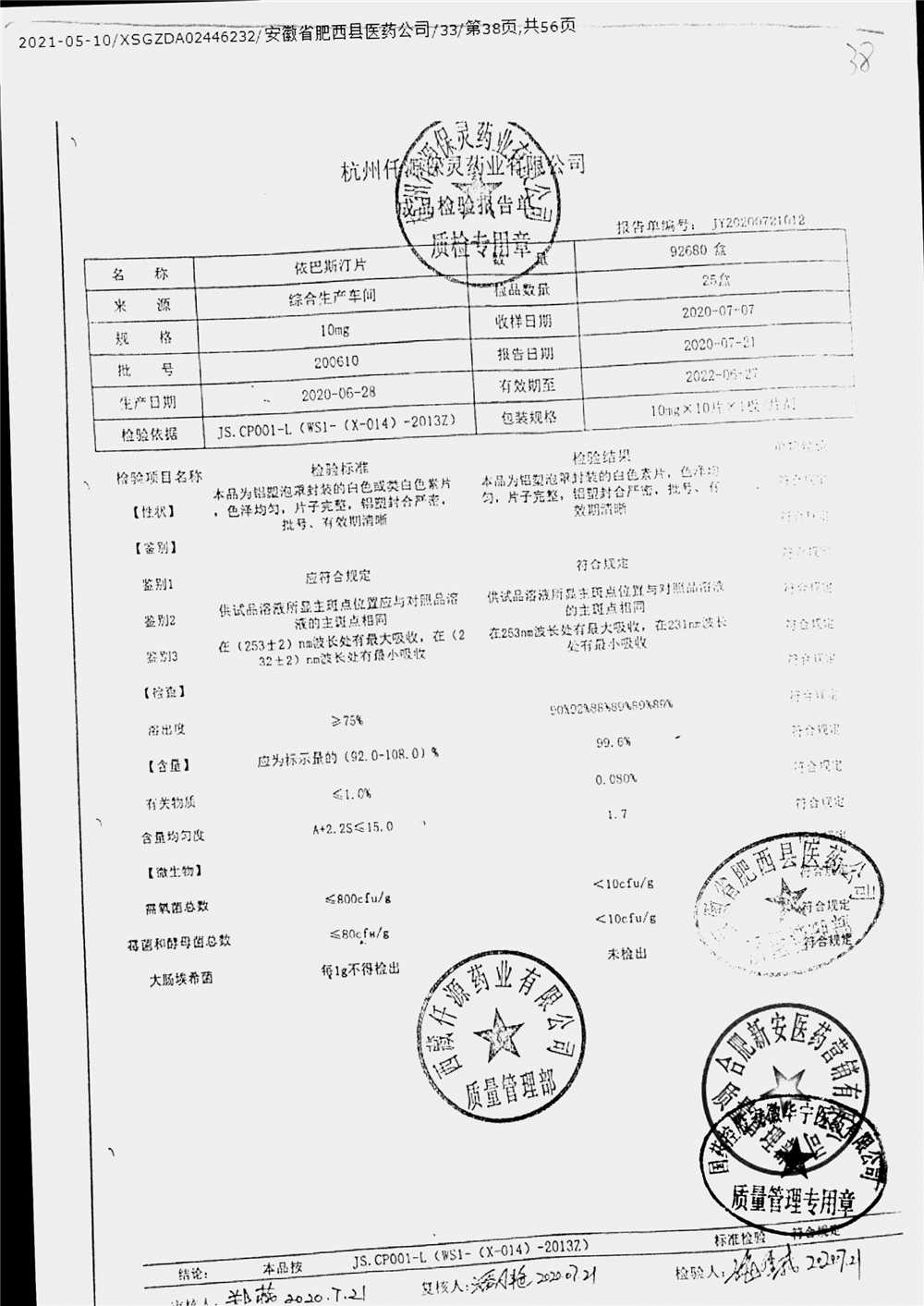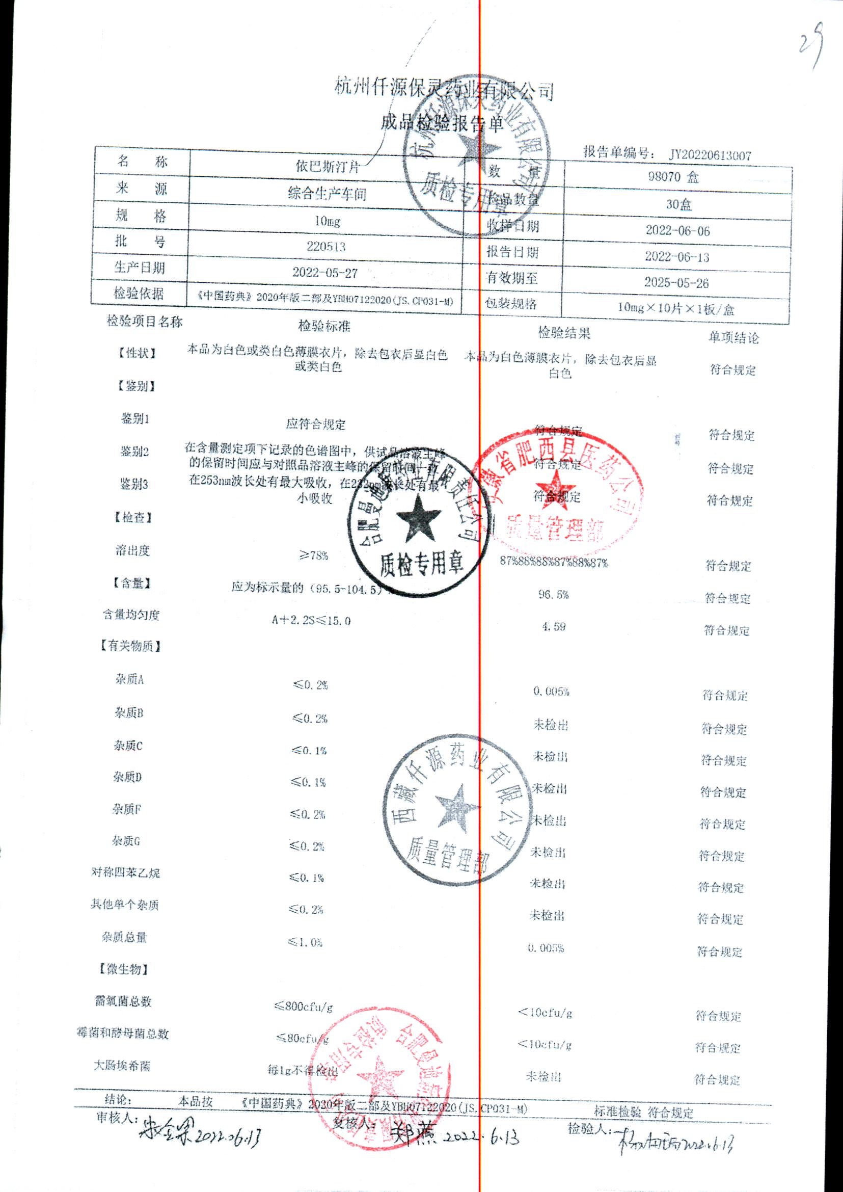 依巴斯汀片 10mg*10s 201205 查看詳情