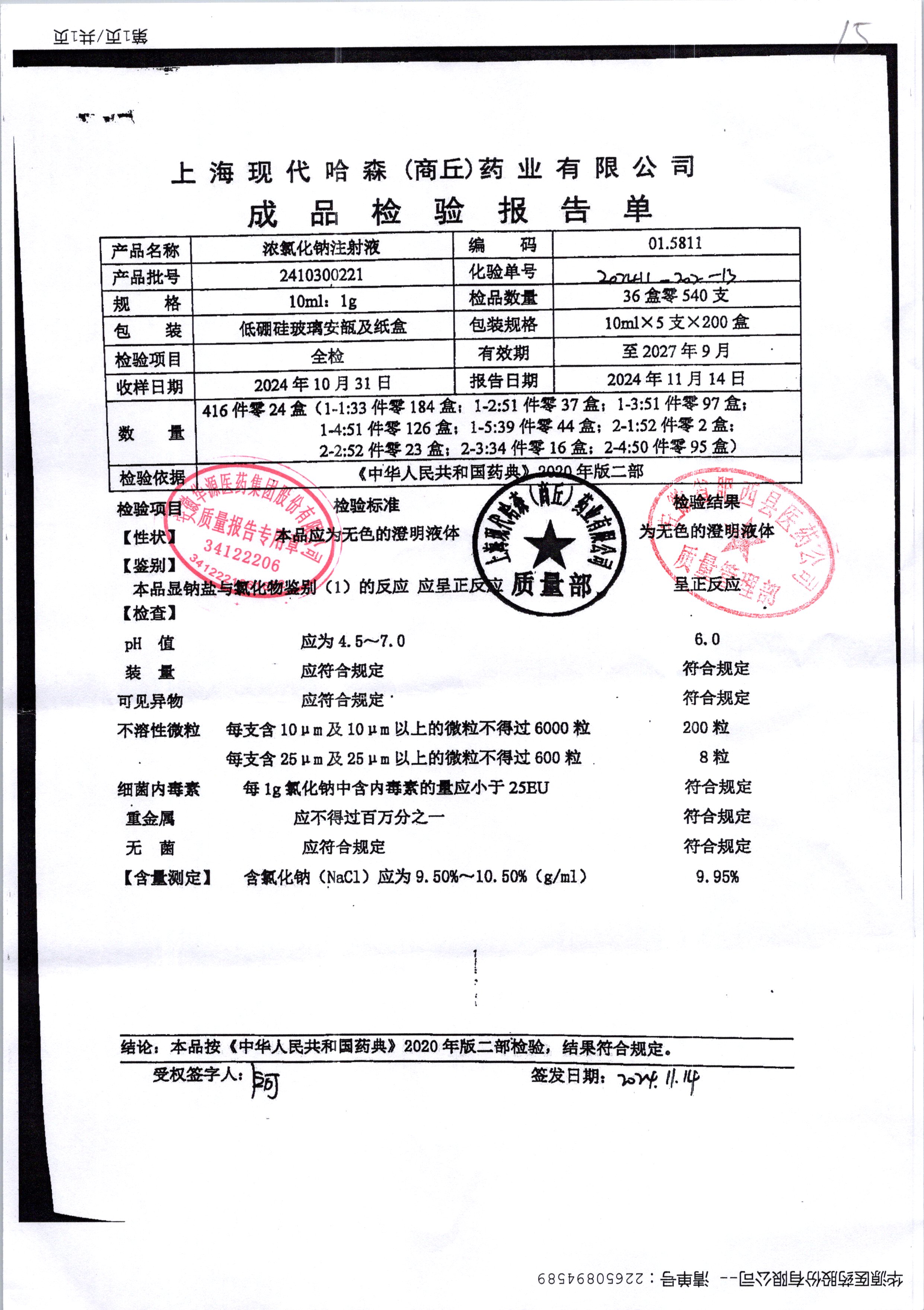 濃氯化鈉注射液 10ml:0.1g 2410300221 查看詳情