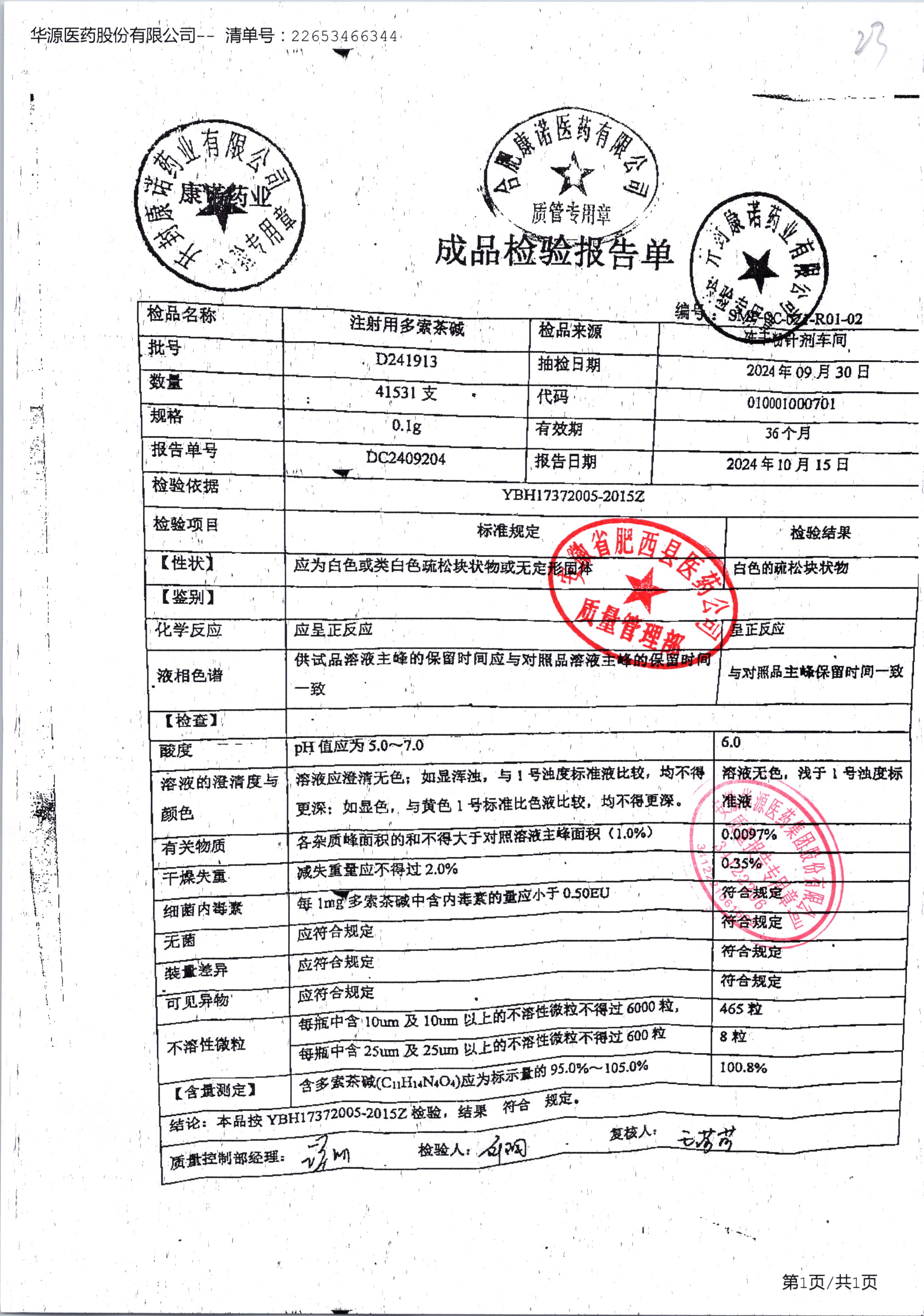 注射用多索茶堿 0.1g D241864/2 查看詳情
