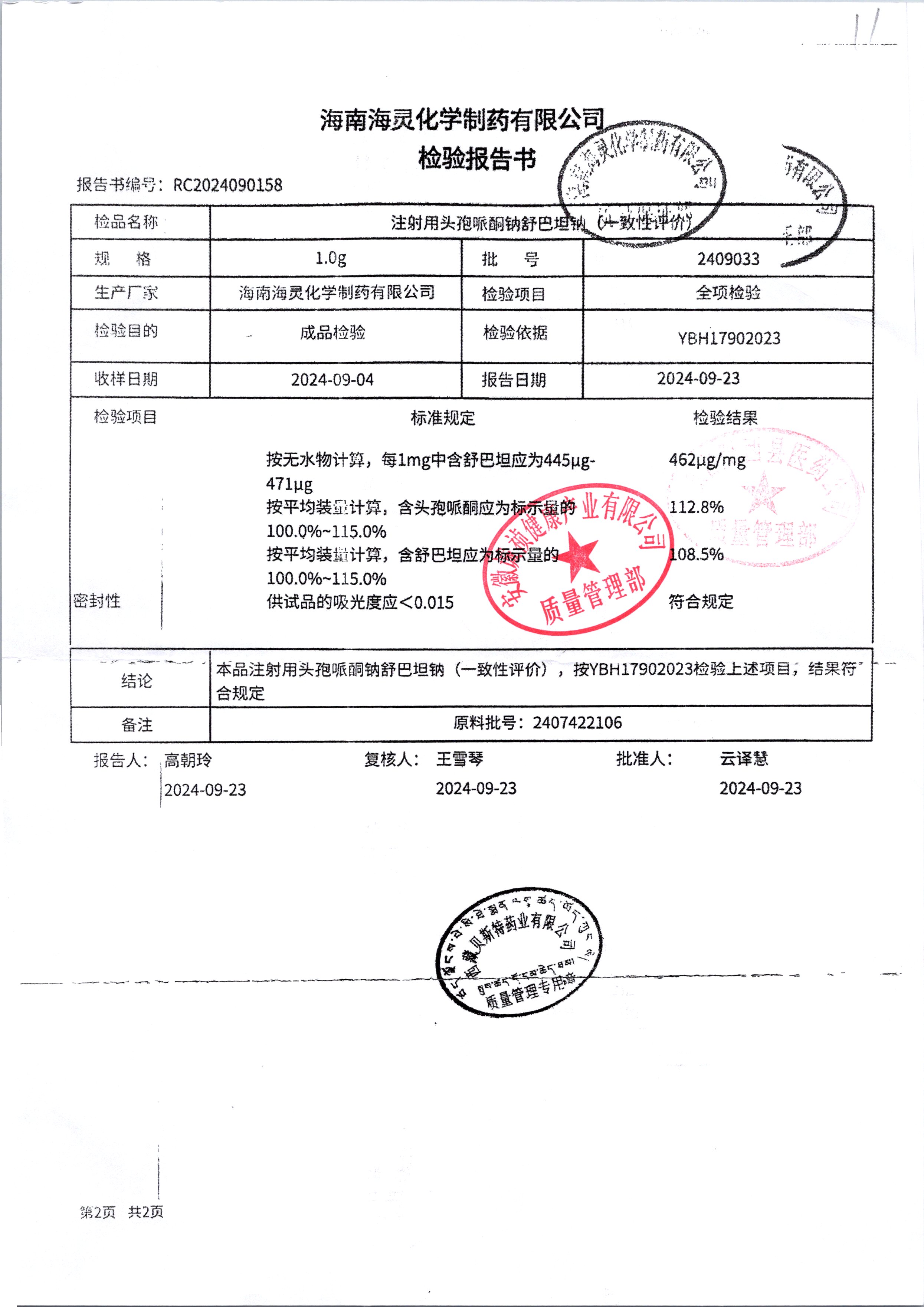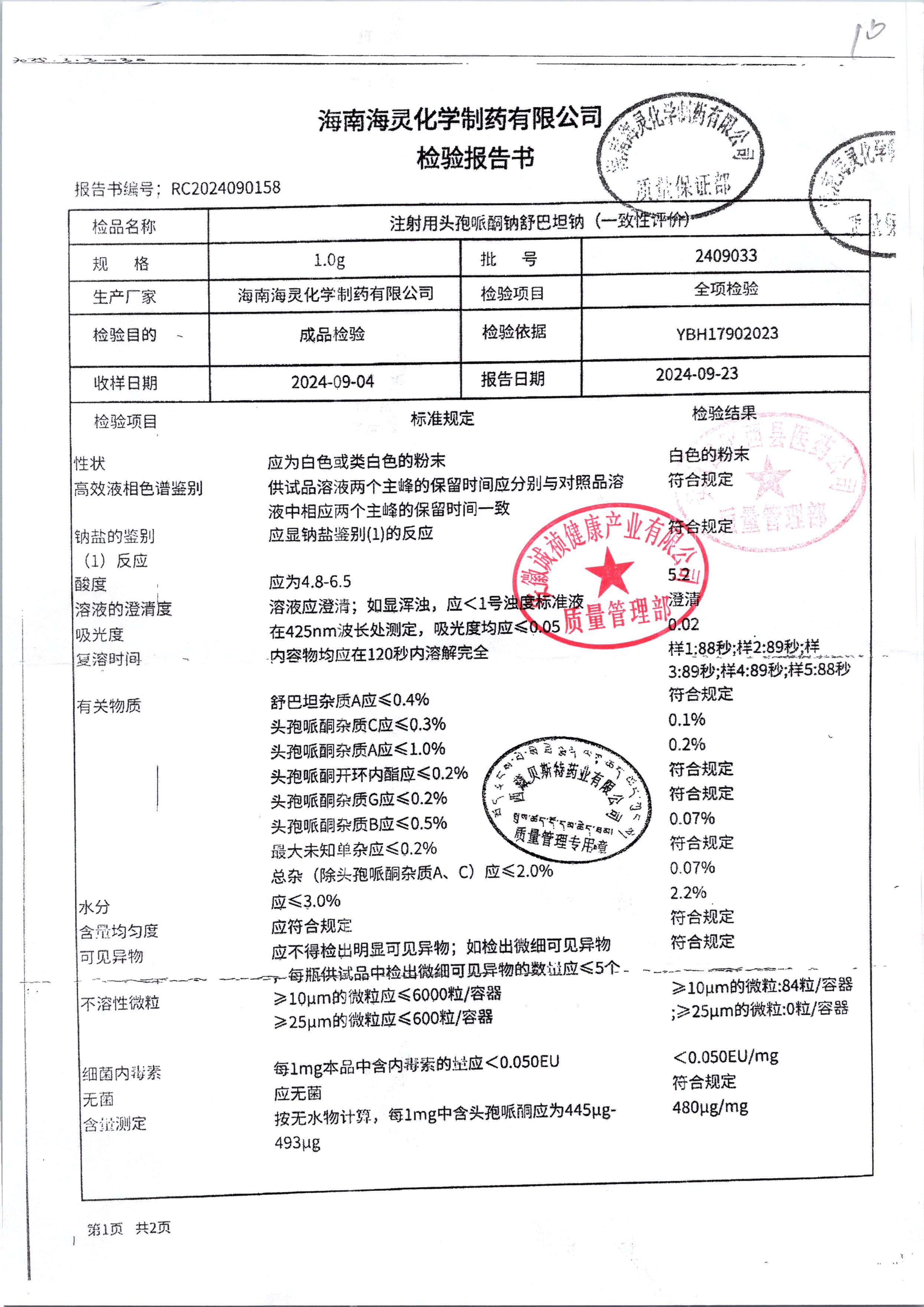 注射用頭孢哌酮鈉舒巴坦納 1.0g 2409033 查看詳情