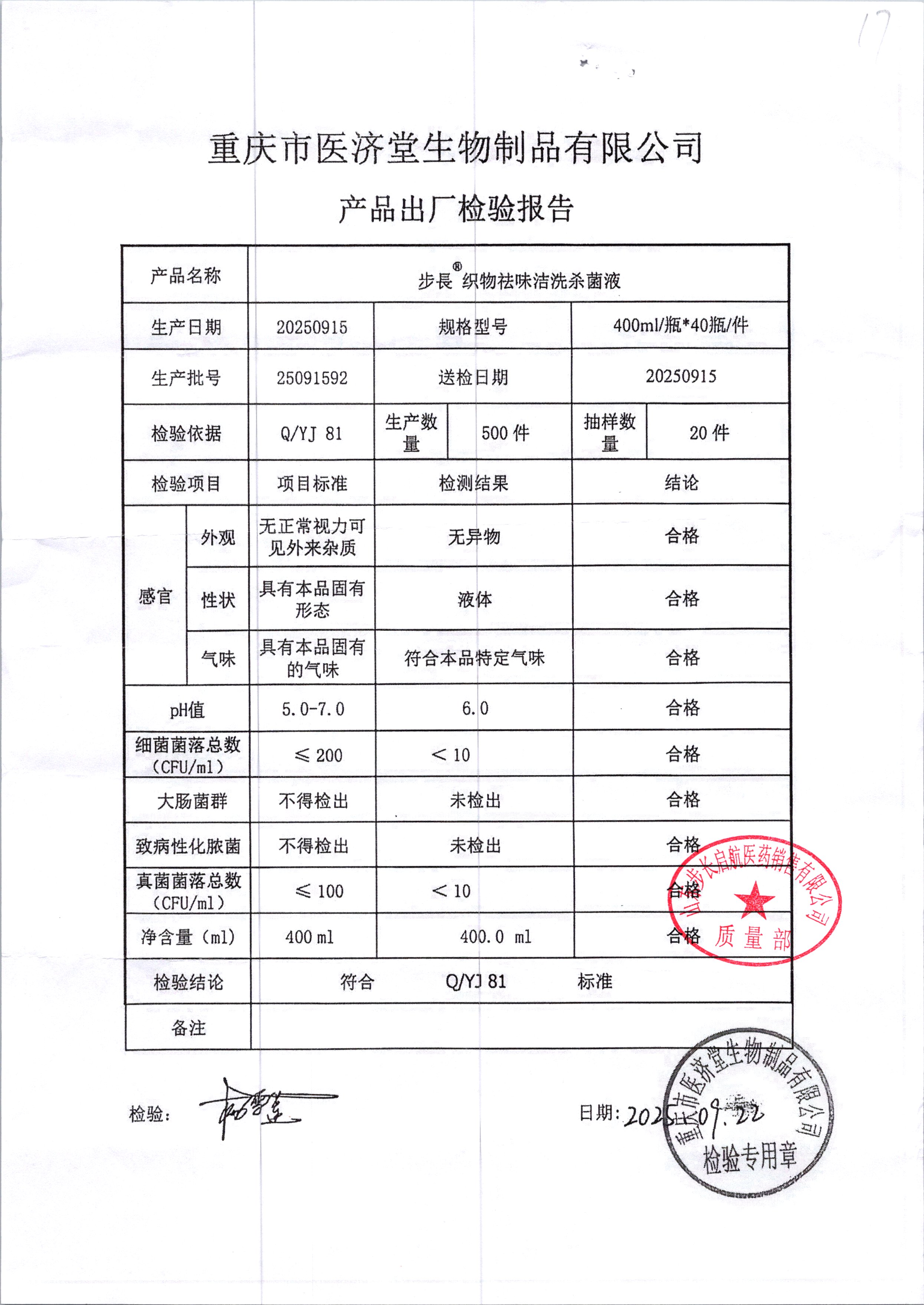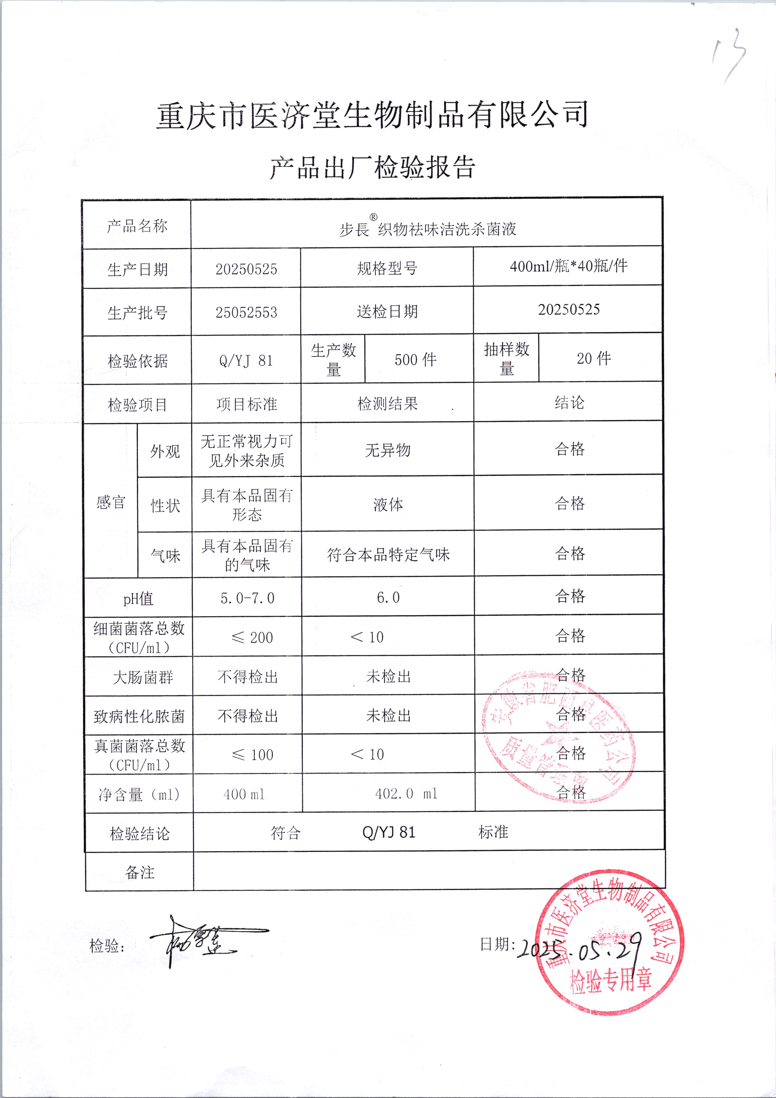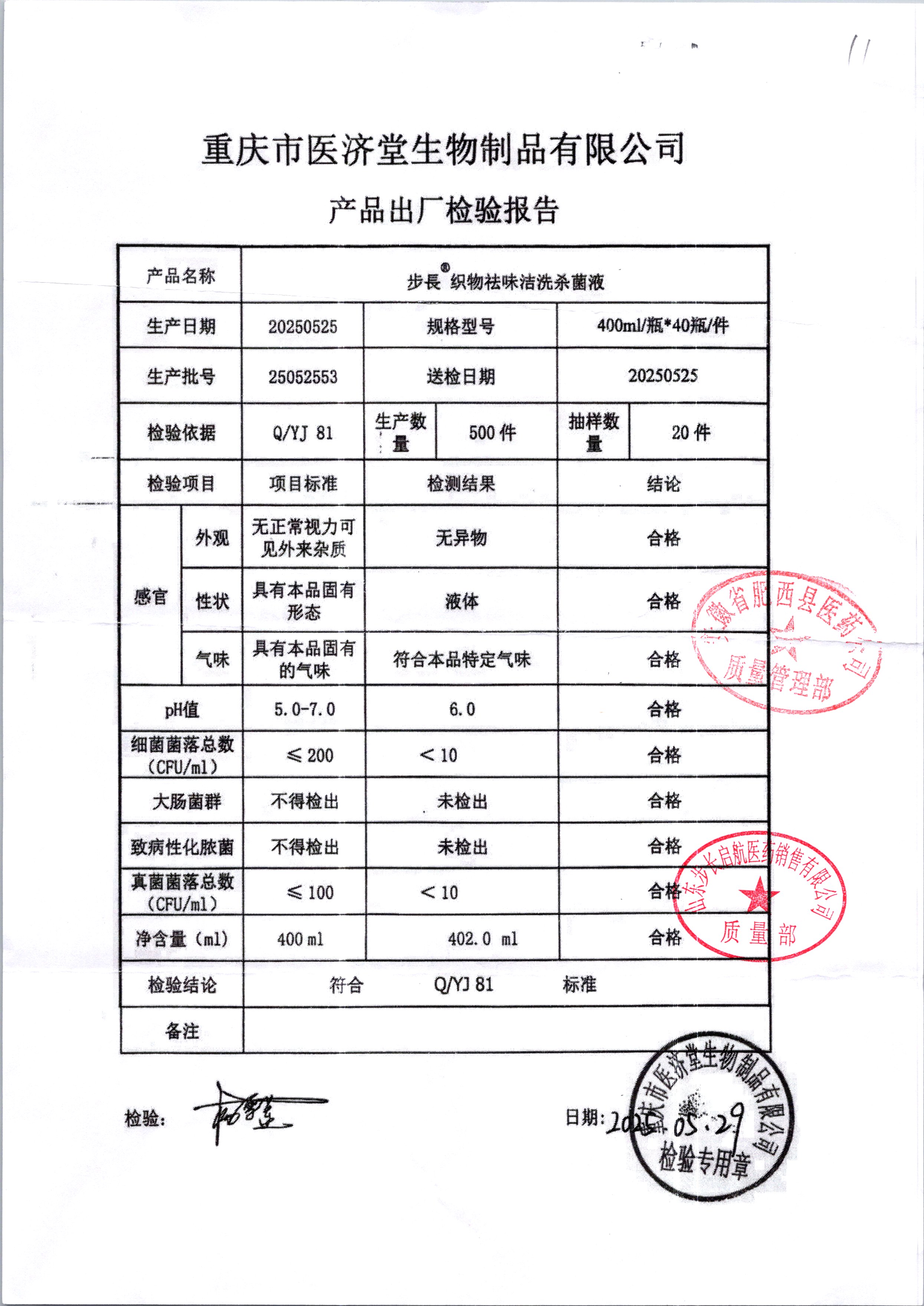 | 步長織物祛味潔洗殺菌液 | 400*40瓶 | 25052553 | 查看詳情 |