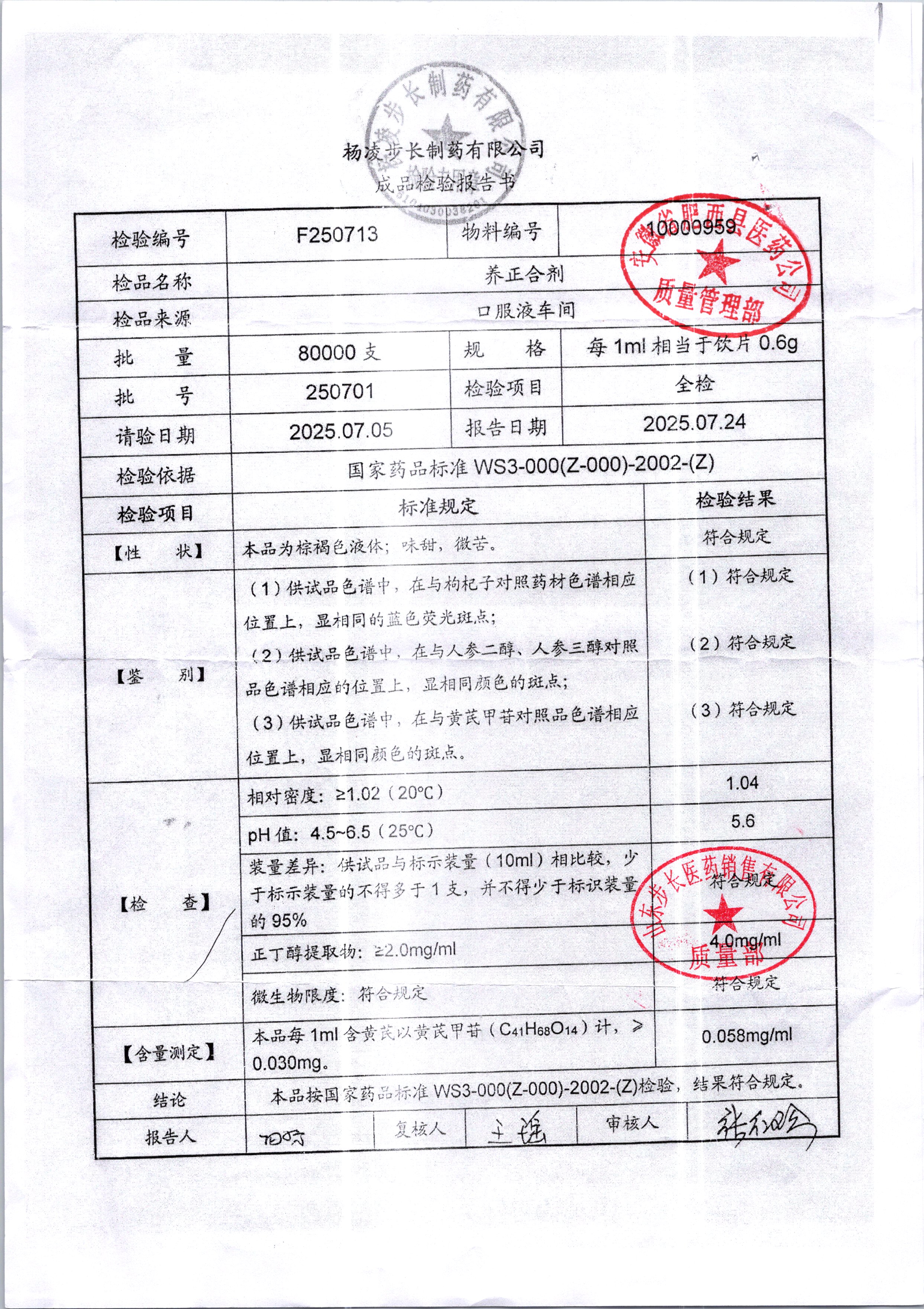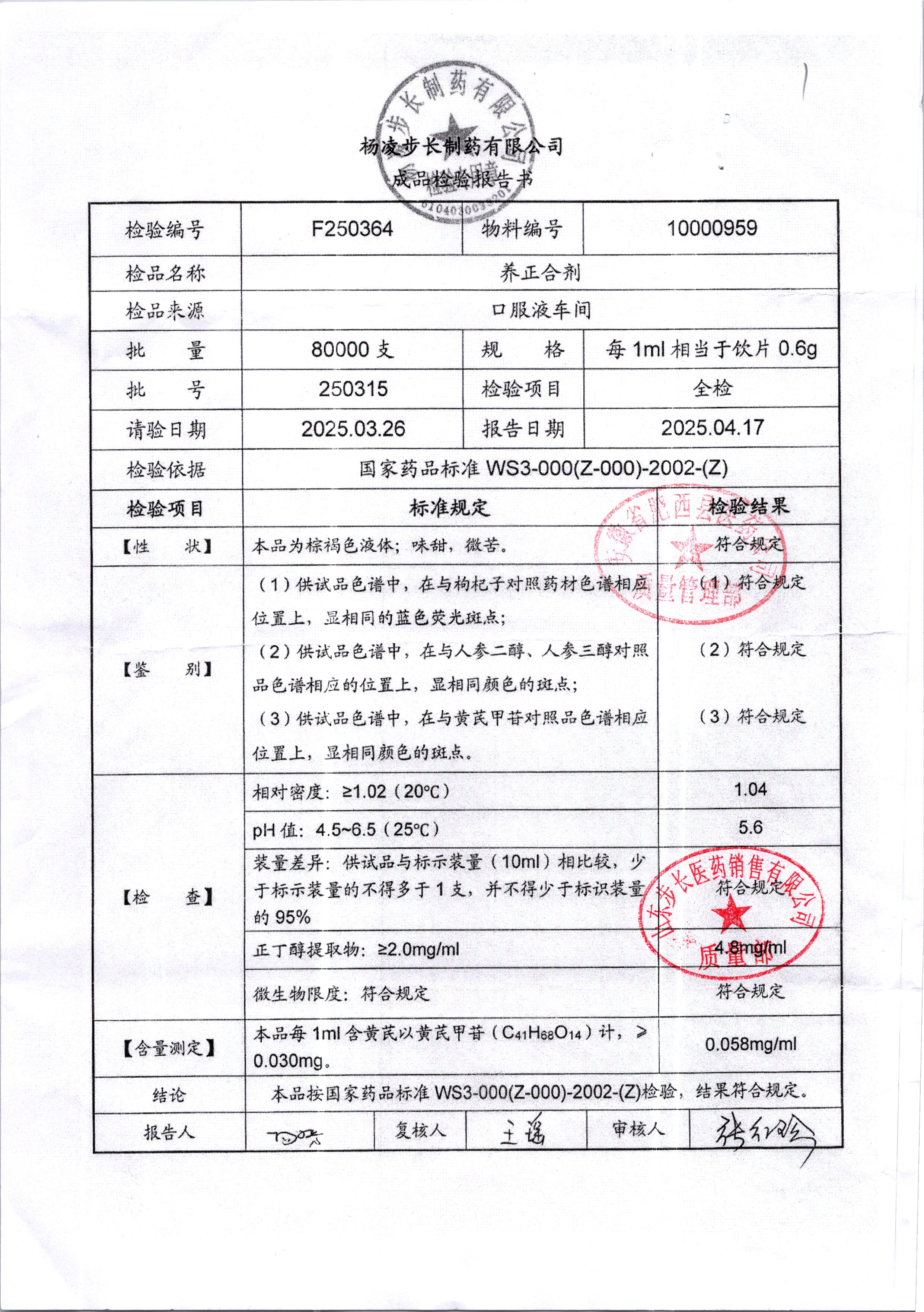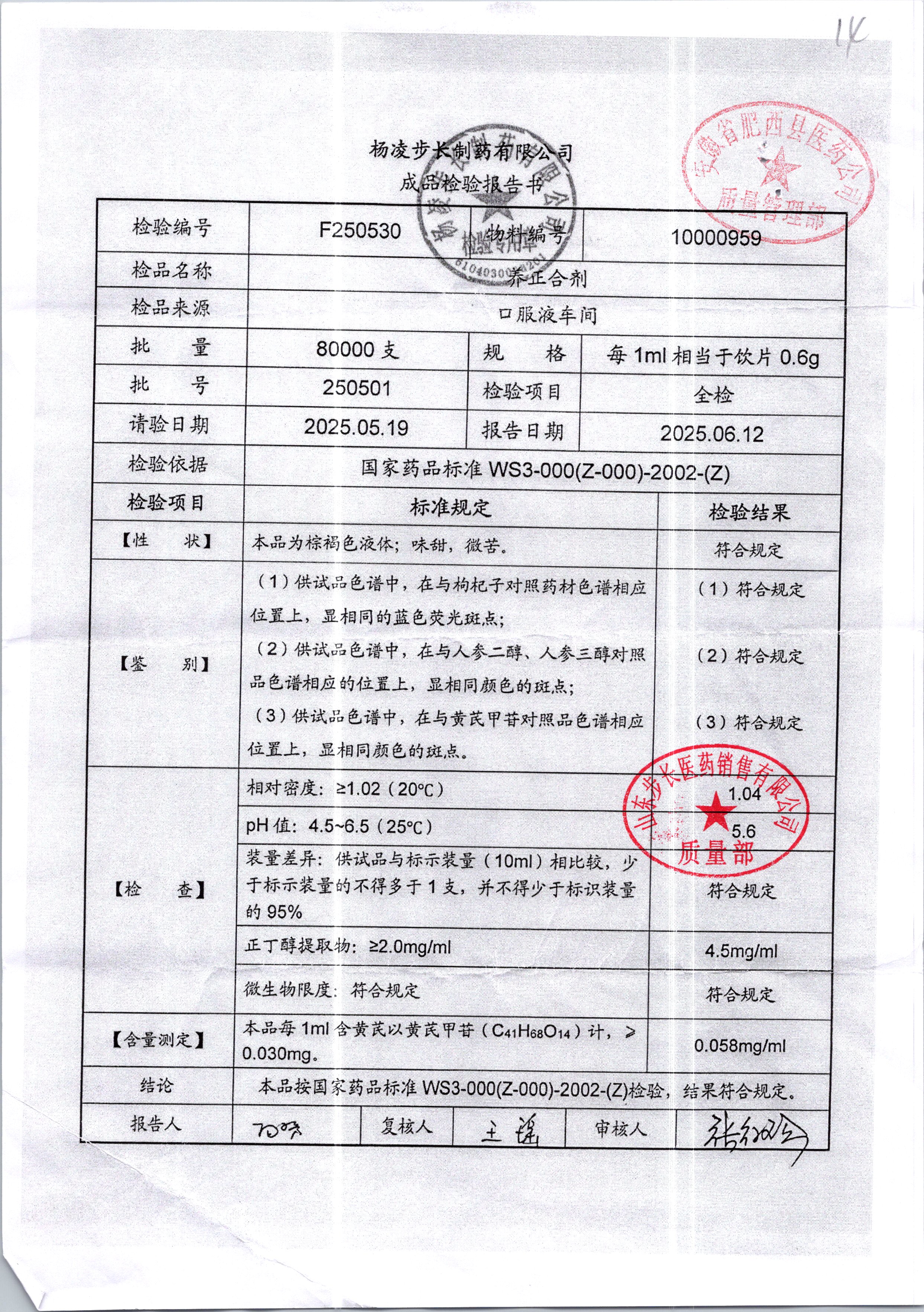 名稱 規格 批號 藥檢報告