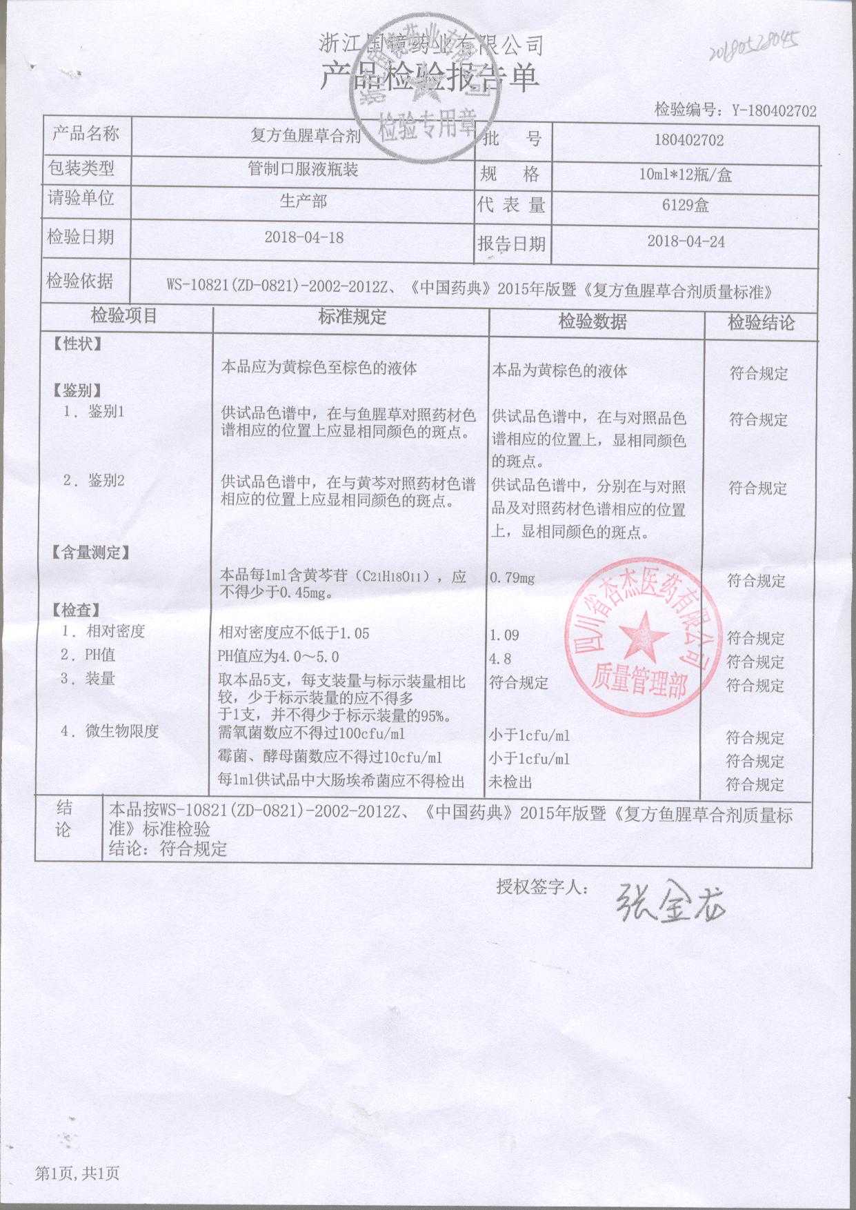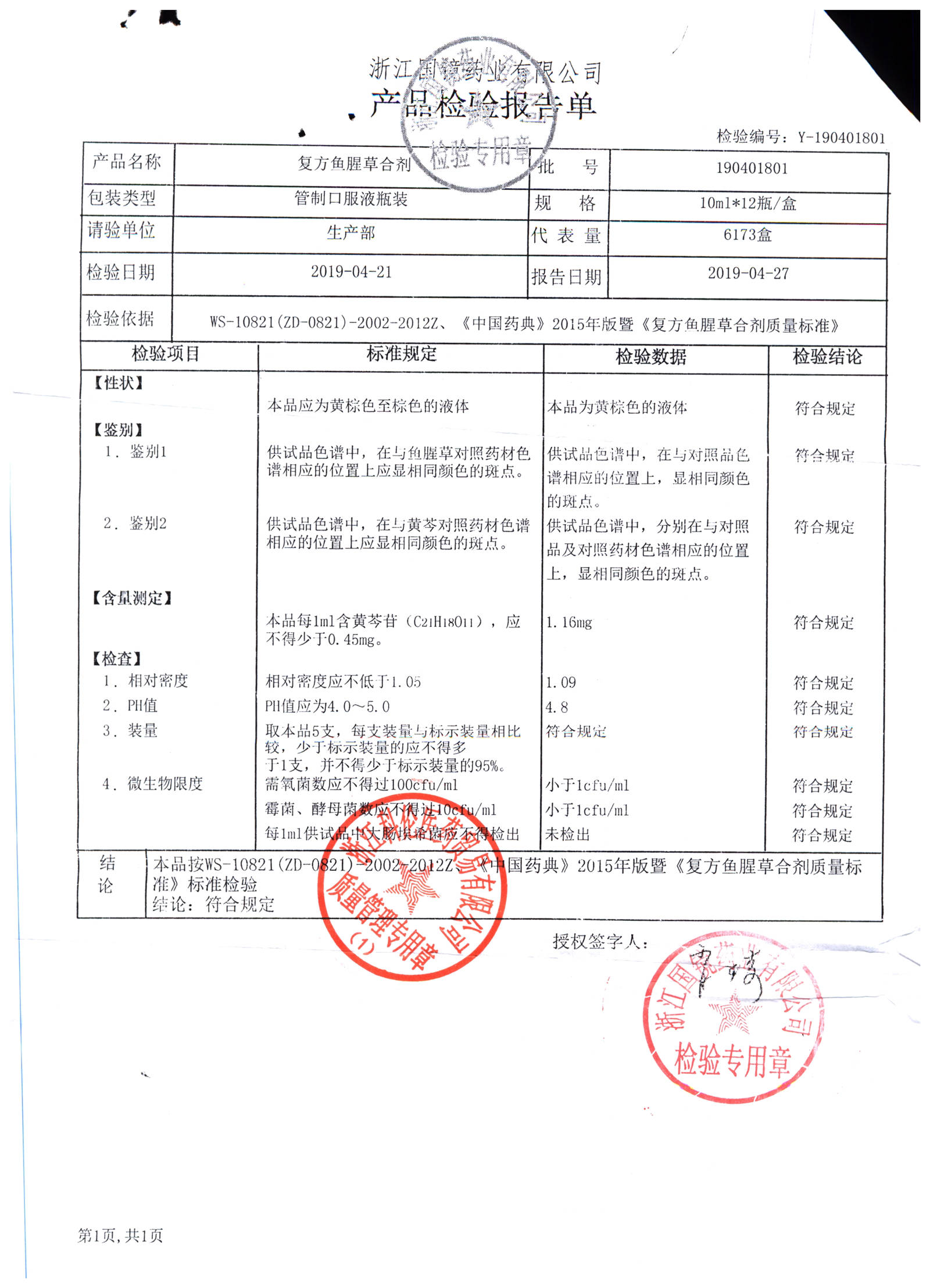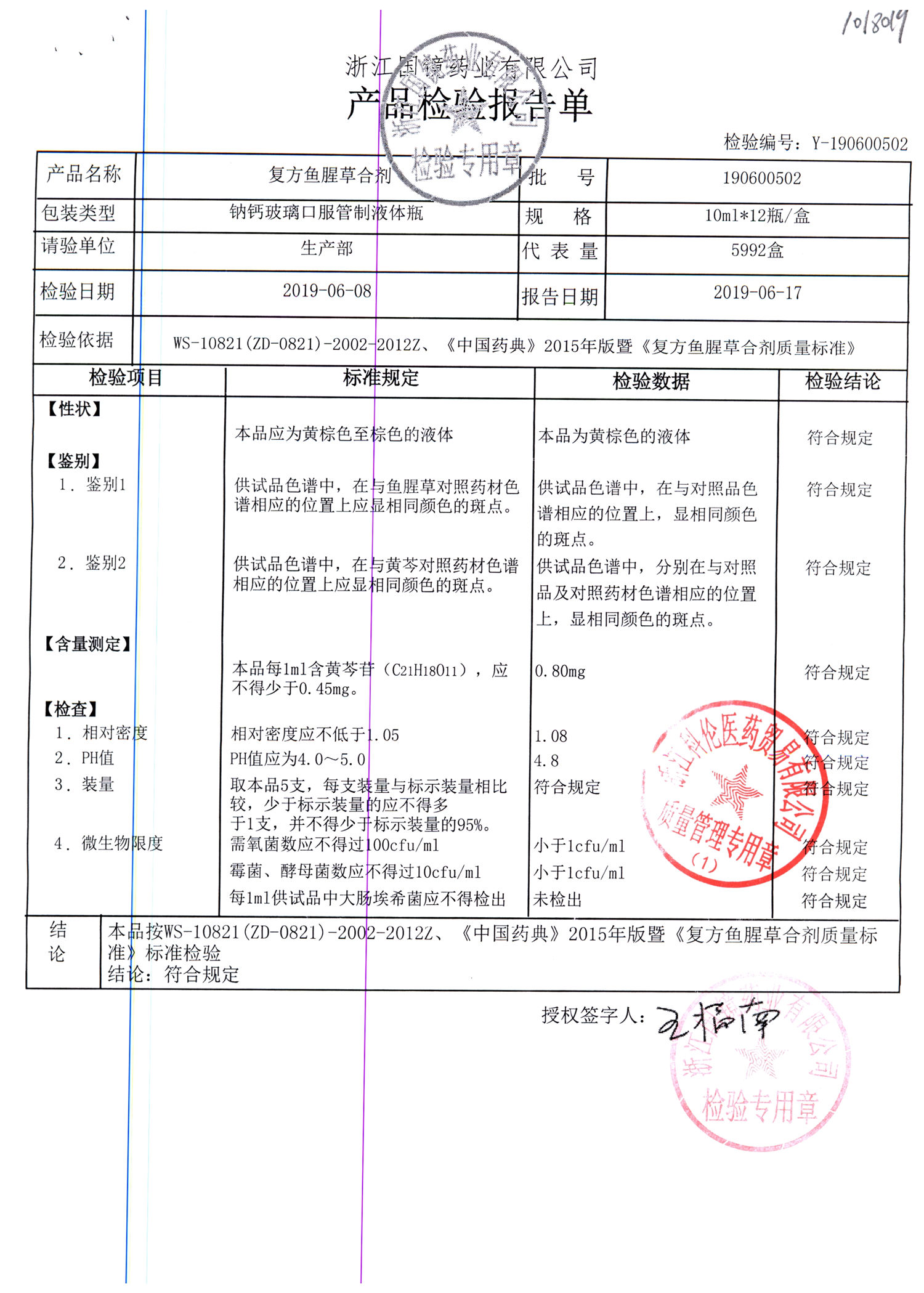 | 復方魚腥草合劑 | 10ml | 190502001 | 查看詳情 |